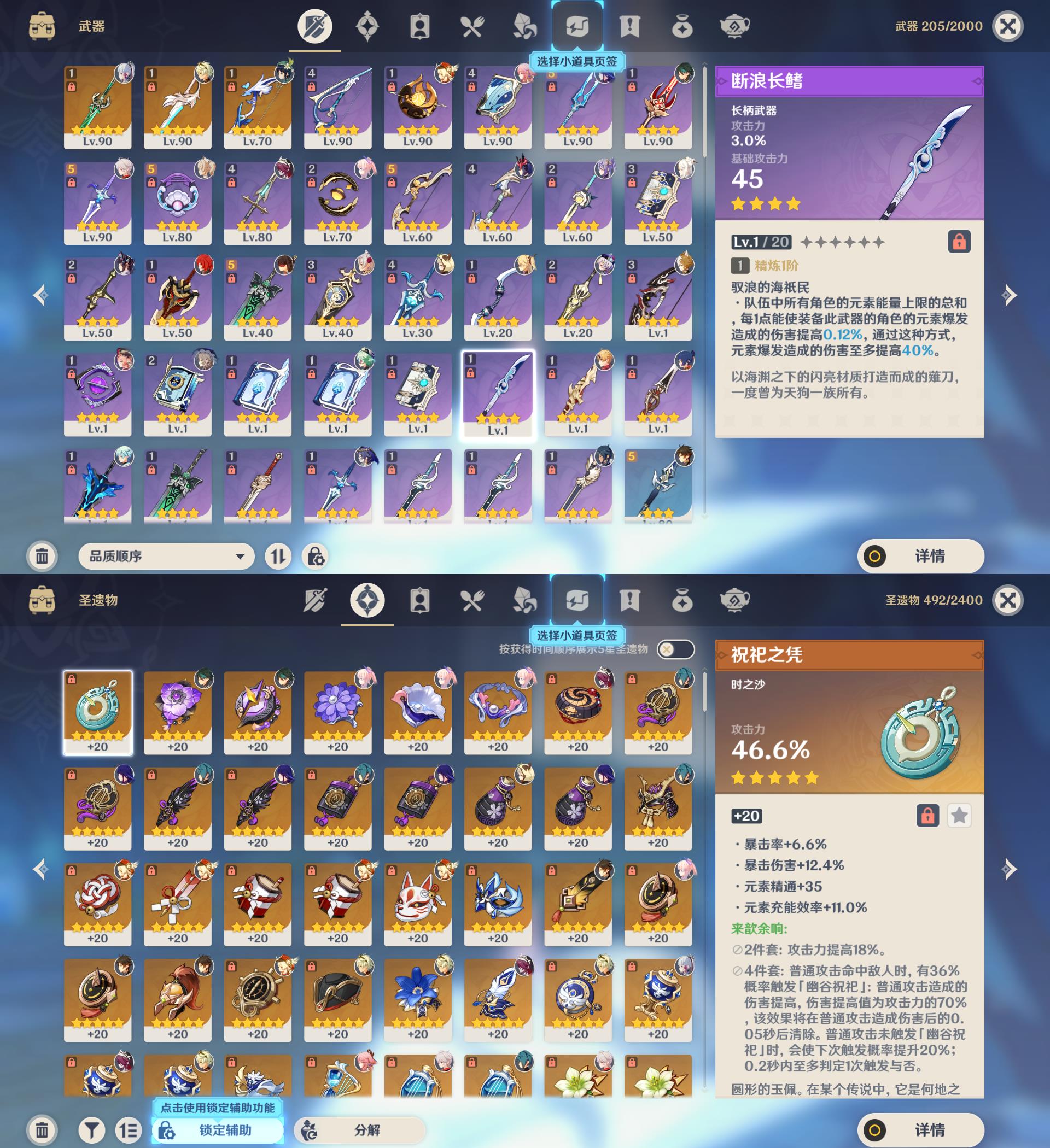 56级/18黄/女主/12个五星角色/3个五星武器/珊瑚宫心海