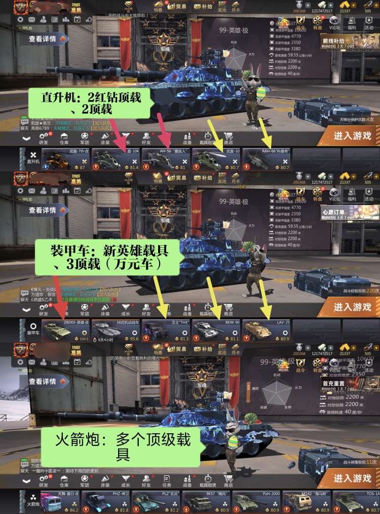 新英雄三件套,99那兔七件套,14五件套!盛世武器套,战神甲套,锻造全红!蓝图十星!图鉴多(详见截)