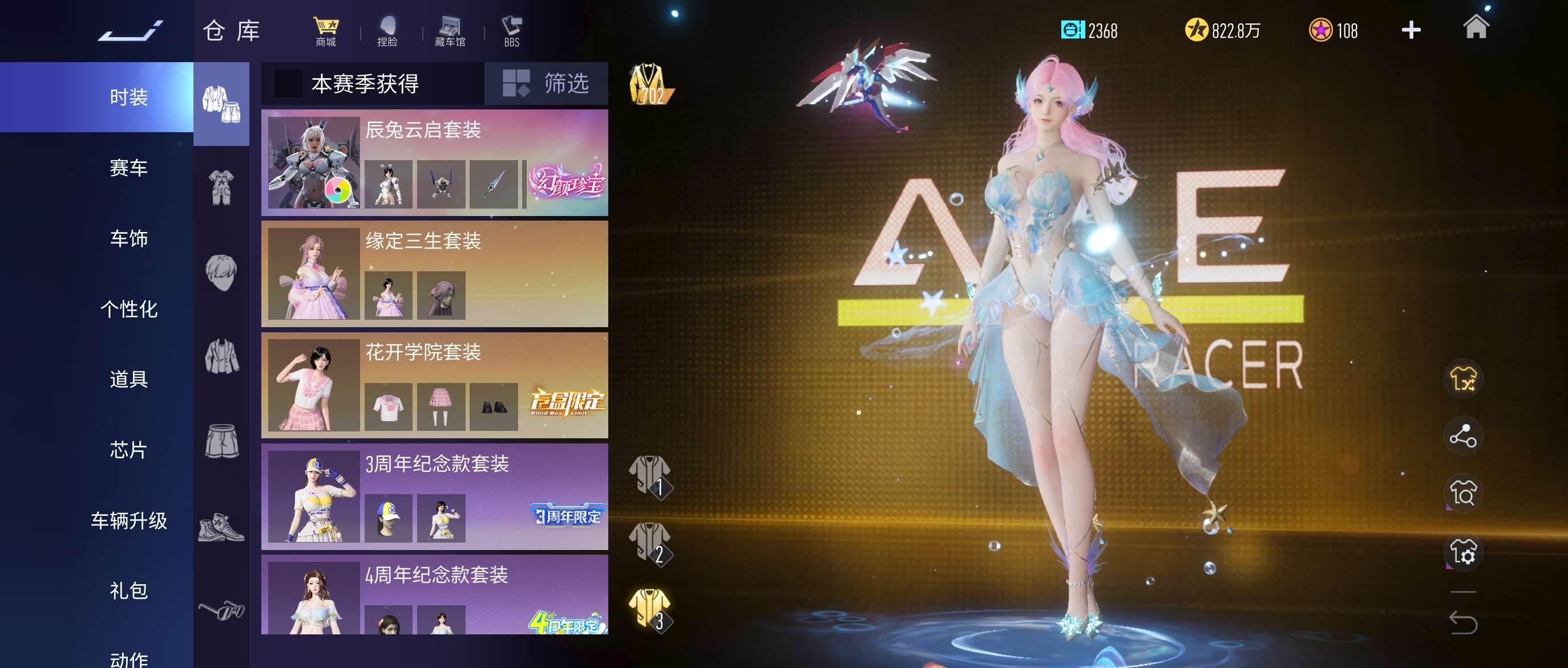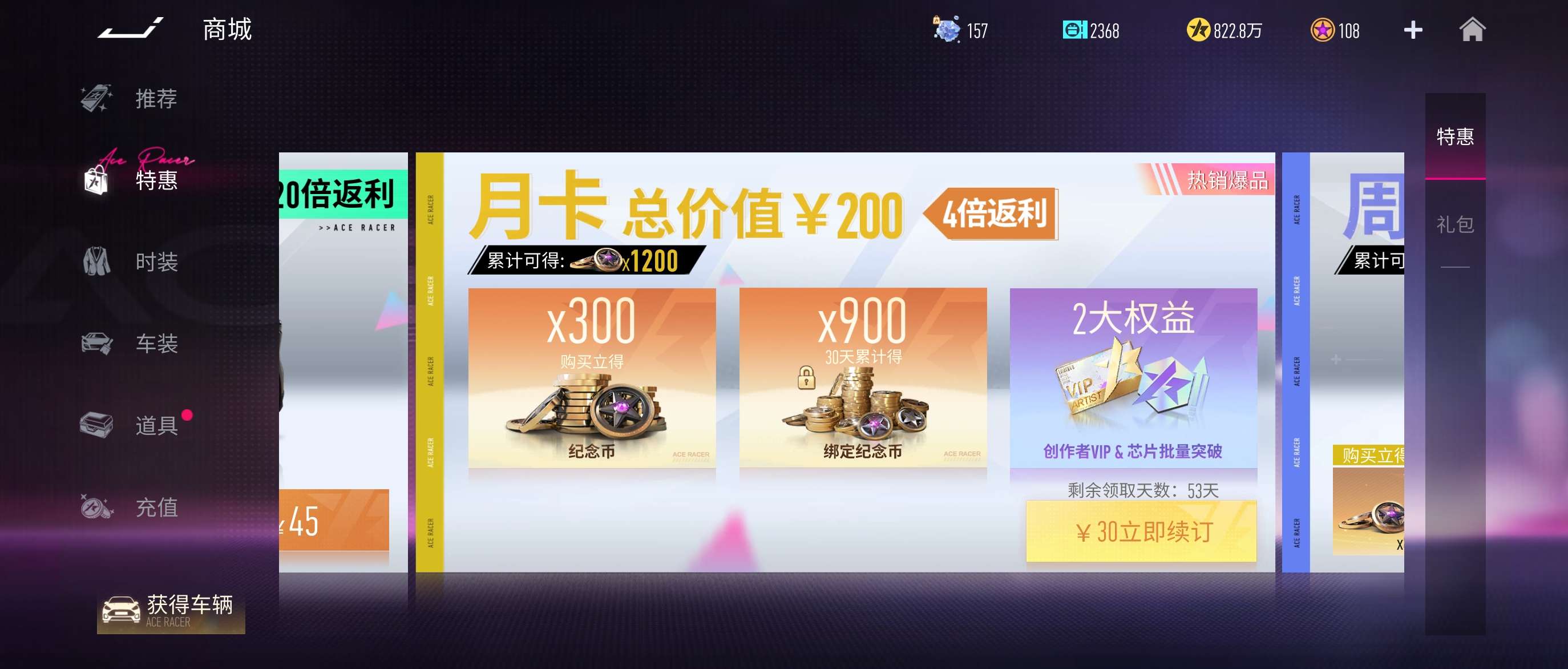 有法拉利812和兰博基尼svj,车姬有神剑号,时装有辰兔云启,月卡还有50来天,还有一张时尚节门票