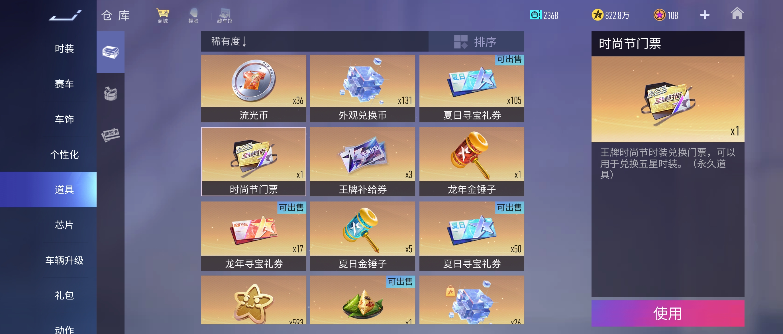 大量传说车,一张时尚节门票,有神剑号车姬猫眠梦车姬差一颗宝石