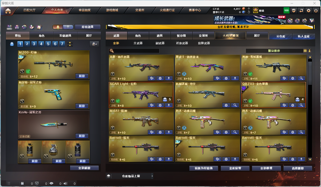 【V武器】M200-幻神,Kar98K-星神,Barrett-毁灭,AWM-裁决,SCAR Light-玄豹,QBZ03-金色