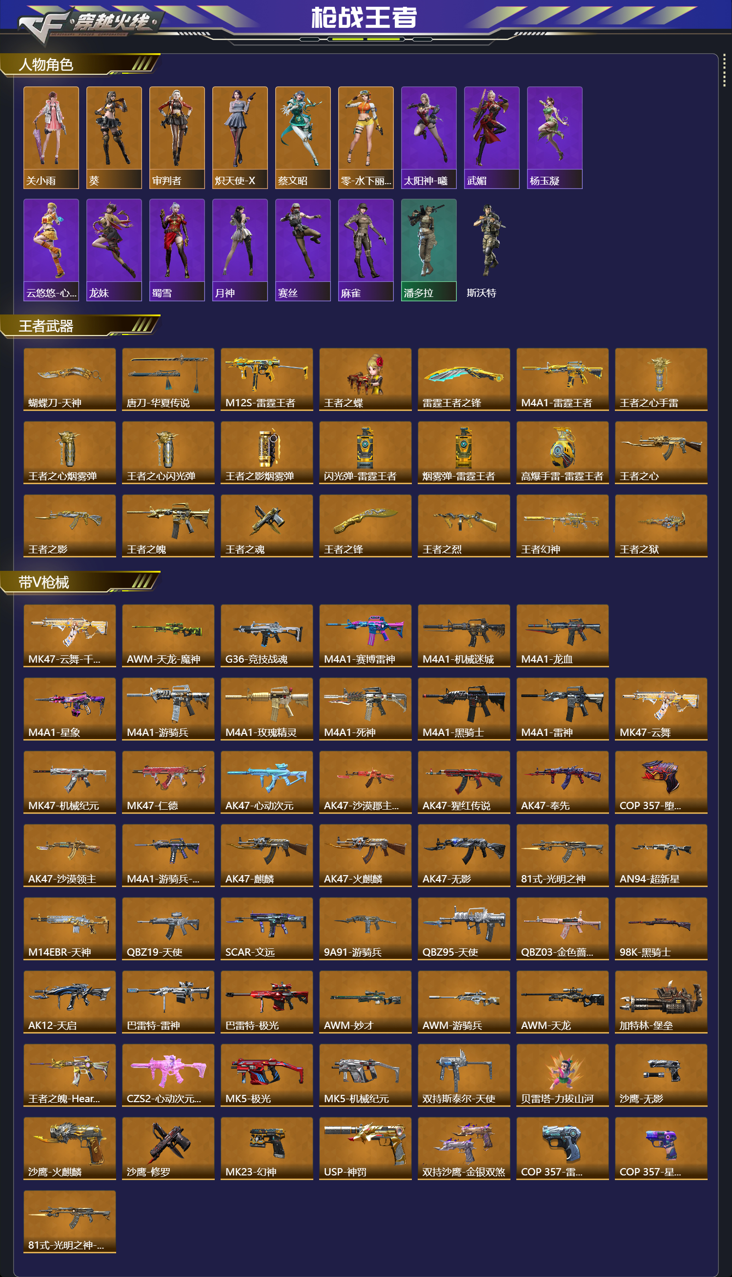 【王者武器】蝴蝶刀-天神,唐刀-华夏传说,M12S-雷霆王者,王者之蝶,雷霆王者之锋,M4A1-雷霆王者,