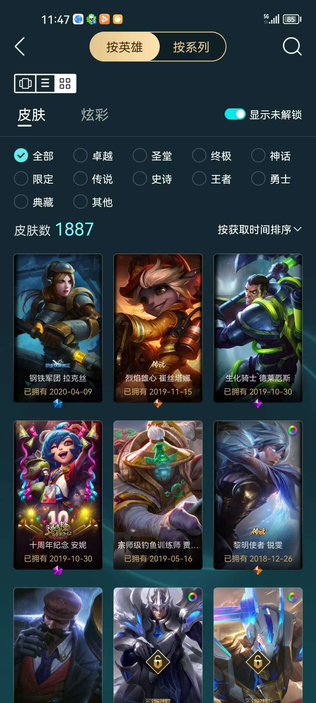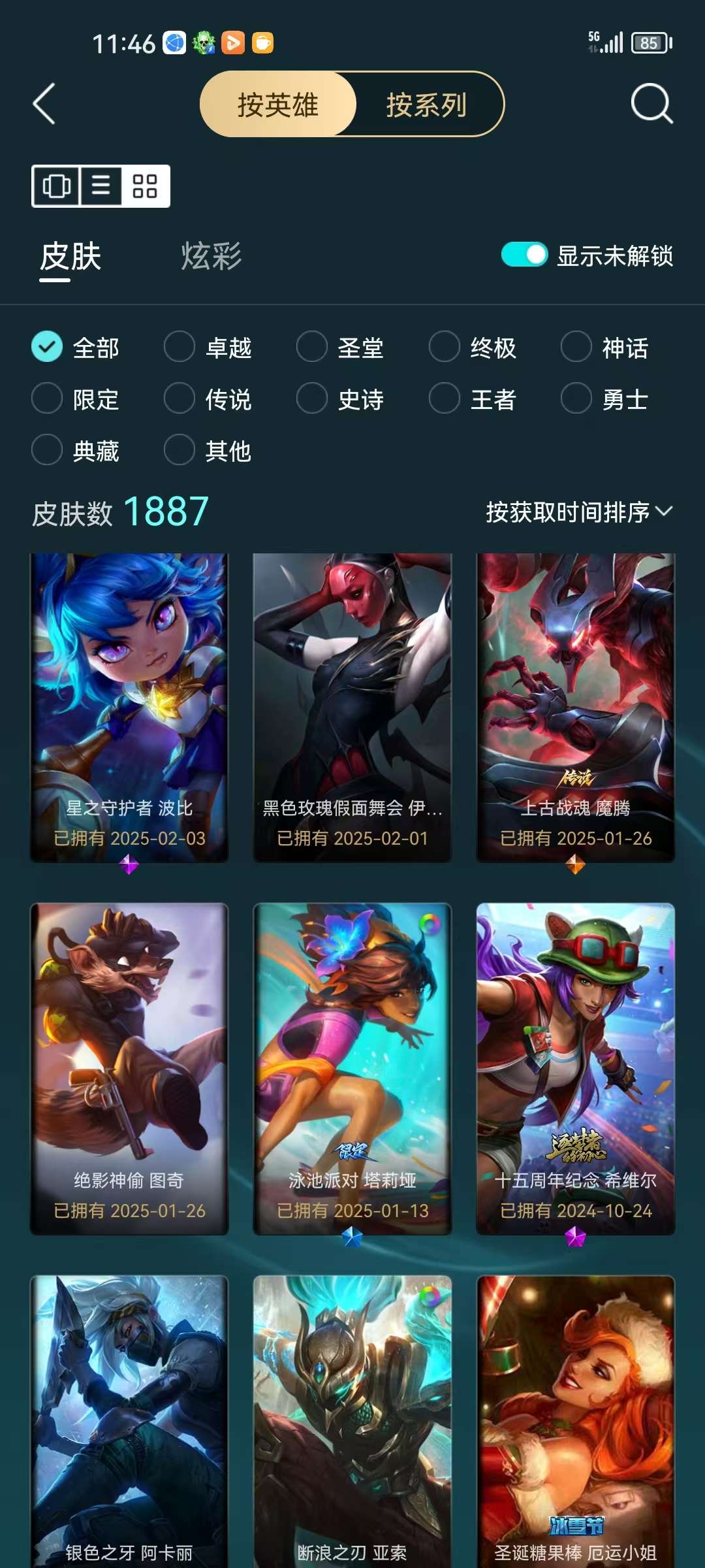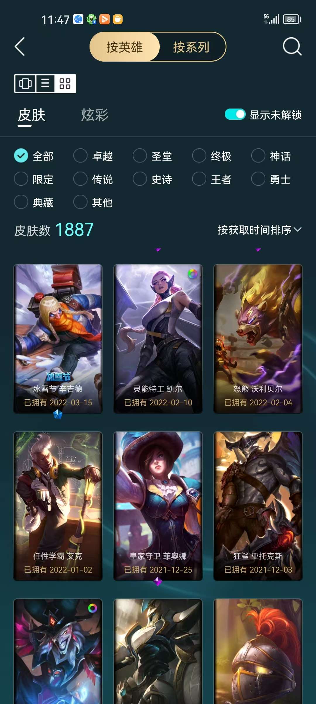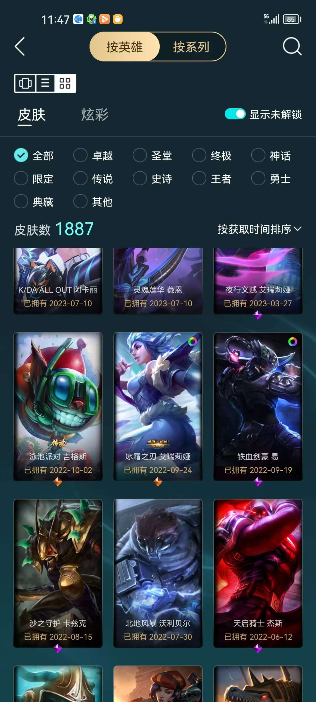 64个优质皮肤 16个炫彩 优质小号 还有42个海克斯宝箱 开出什么全频运气