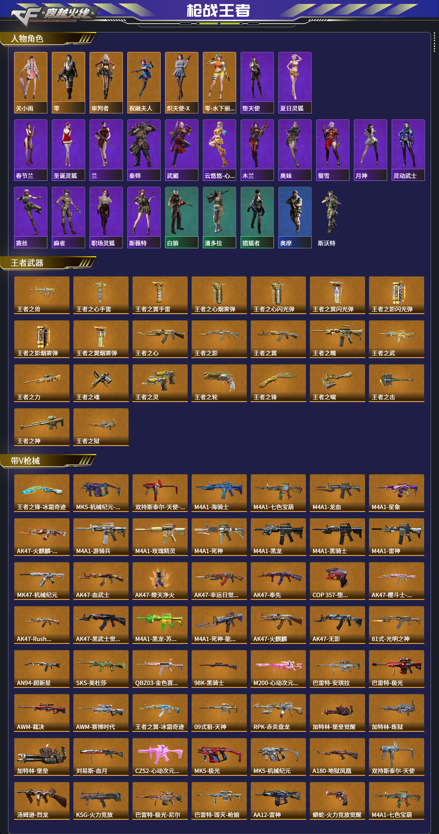 【人物角色】关小雨,英雄兰,堕天使,运动宝贝兰,夏日灵狐,春节兰,零,圣诞灵狐,审判者,白狼,兰,潘多拉,灵狐者,猎狐者,奥摩,斯沃特,秦师,祝融夫人,炽天使-X,武媚,云悠悠-心动起点,木兰,奥妹,蜀雪,月神,灵动武士,零-水下丽影,香香-X,赛丝,麻雀,职场灵狐,斯薇特,