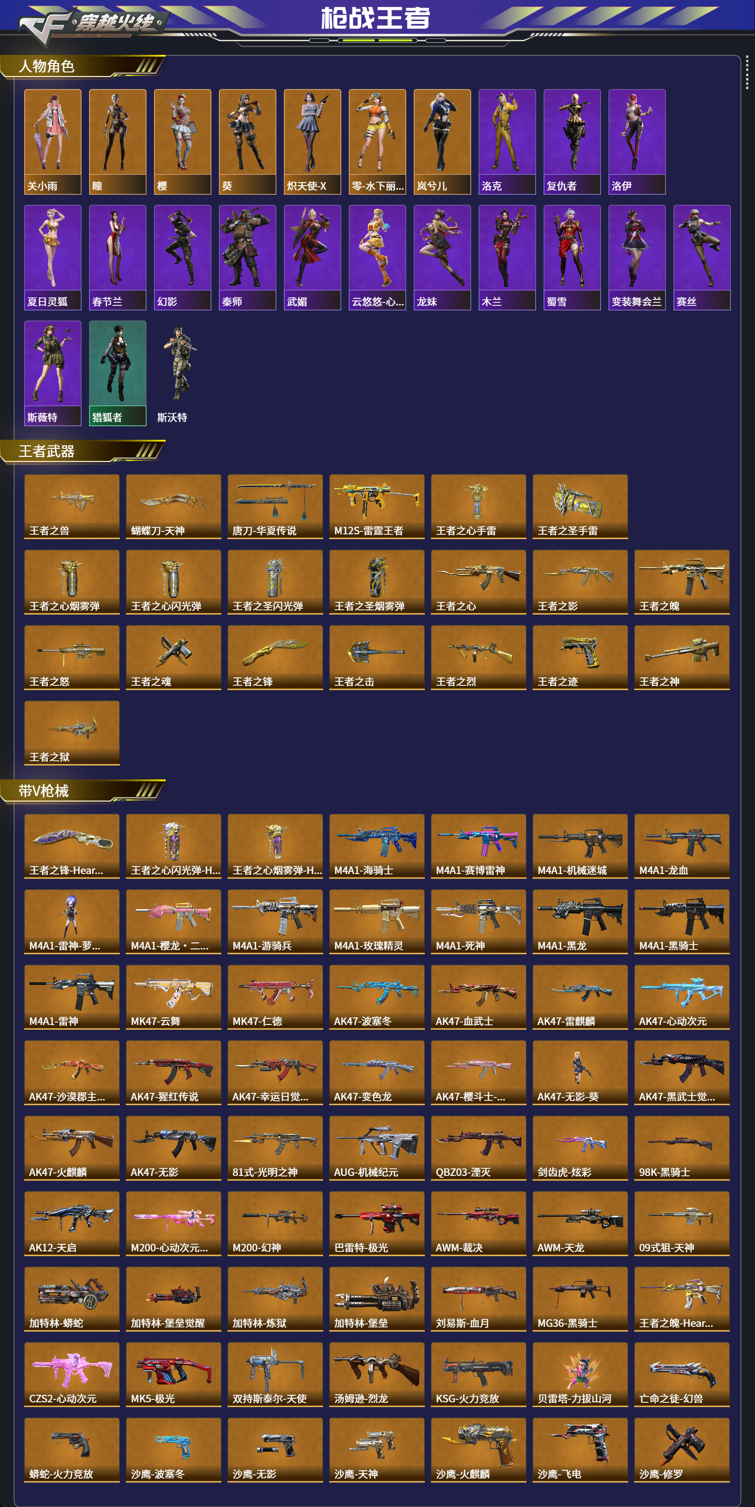 【人物角色】洛克,关小雨,瞳,樱,幽灵刀锋,复仇者,葵,洛伊,夏日灵狐,春节兰,幻影,猎狐者,斯沃特,秦师,炽天使-X,武媚,云悠悠-心动起点,龙妹,木兰,蜀雪,变装舞会兰,零-水下丽影,赛丝,岚兮儿,斯薇特,