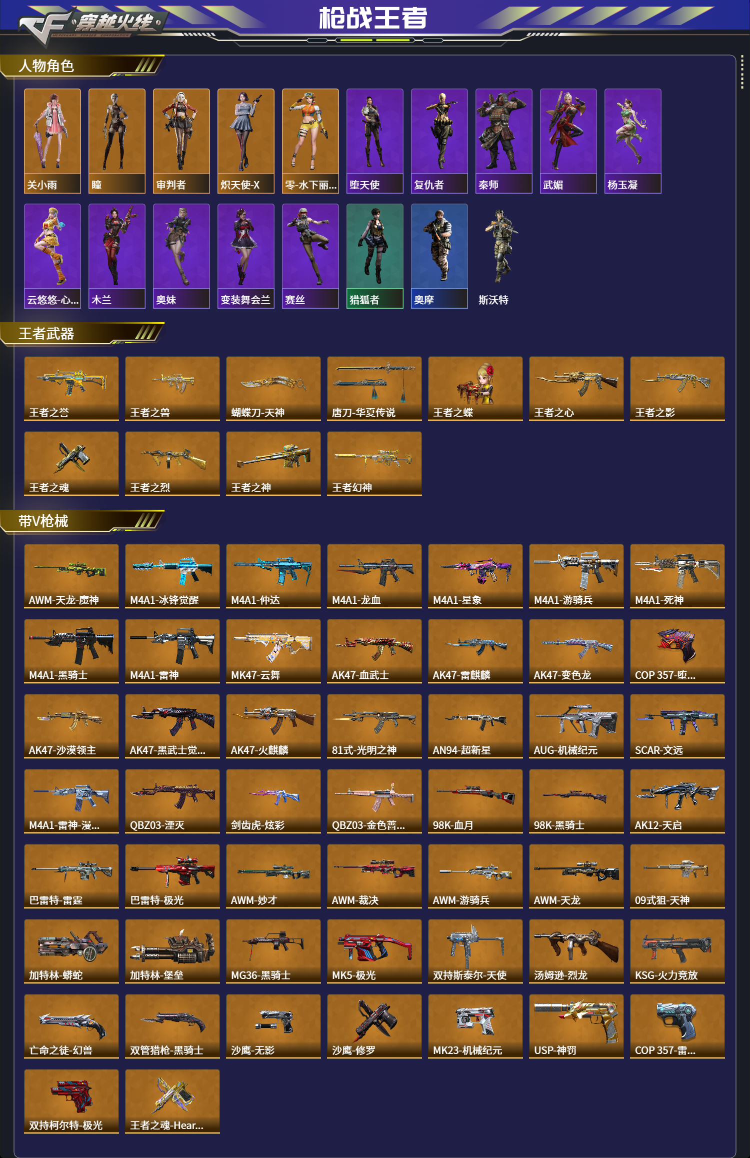 【人物角色】关小雨,瞳,堕天使,复仇者,审判者,灵狐者,猎狐者,奥摩,斯沃特,秦师,炽天使-X,武媚,凌霄,杨玉凝,云悠悠-心动起点,木兰,奥妹,变装舞会兰,零-水下丽影,赛丝,