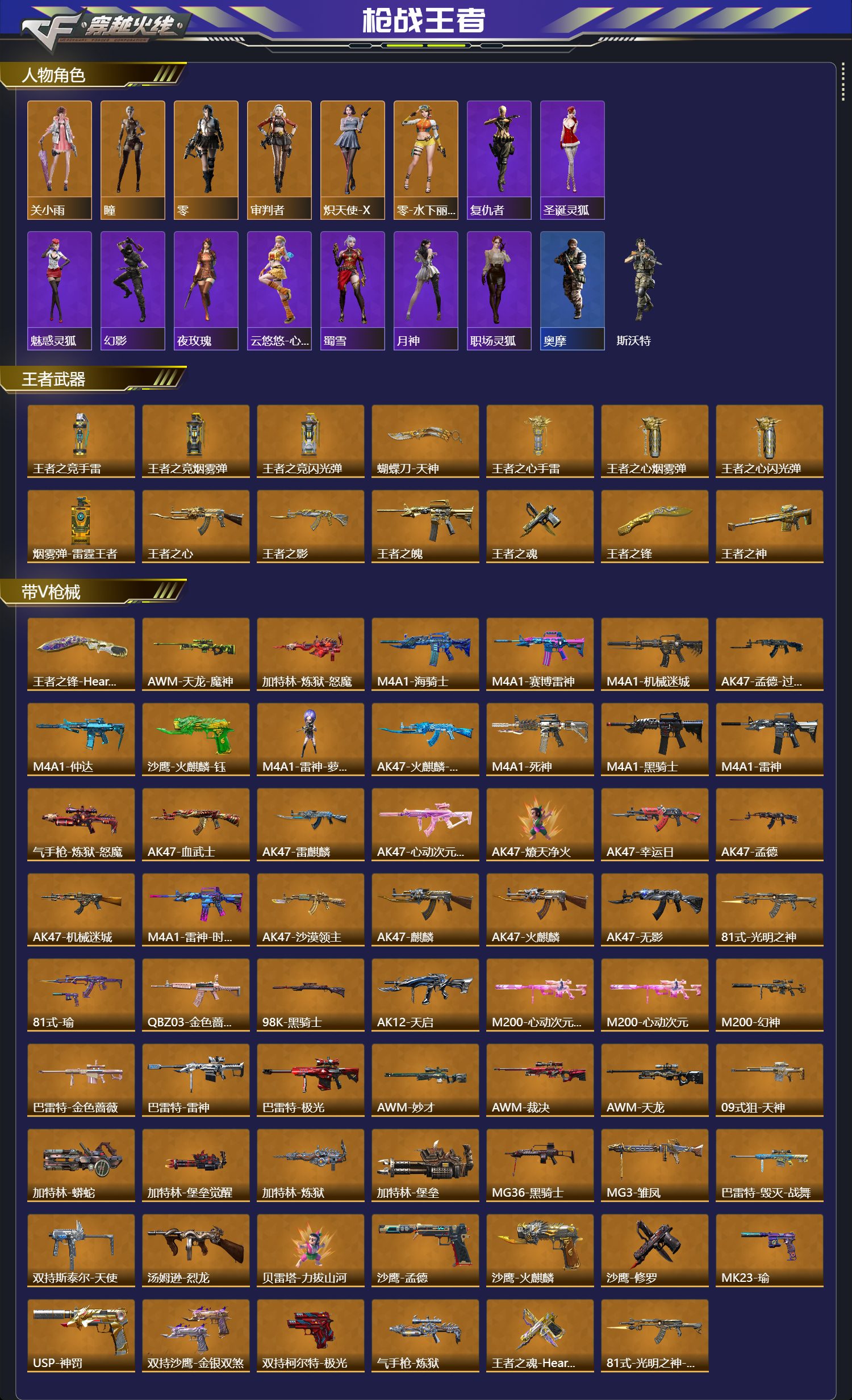 【人物角色】关小雨,瞳,幽灵刀锋,大老师,复仇者,零,圣诞灵狐,魅惑灵狐,审判者,幻影,夜玫瑰,奥摩,斯沃特,炽天使-X,武媚-X,云悠悠-心动起点,蜀雪,月神,零-水下丽影,职场灵狐,