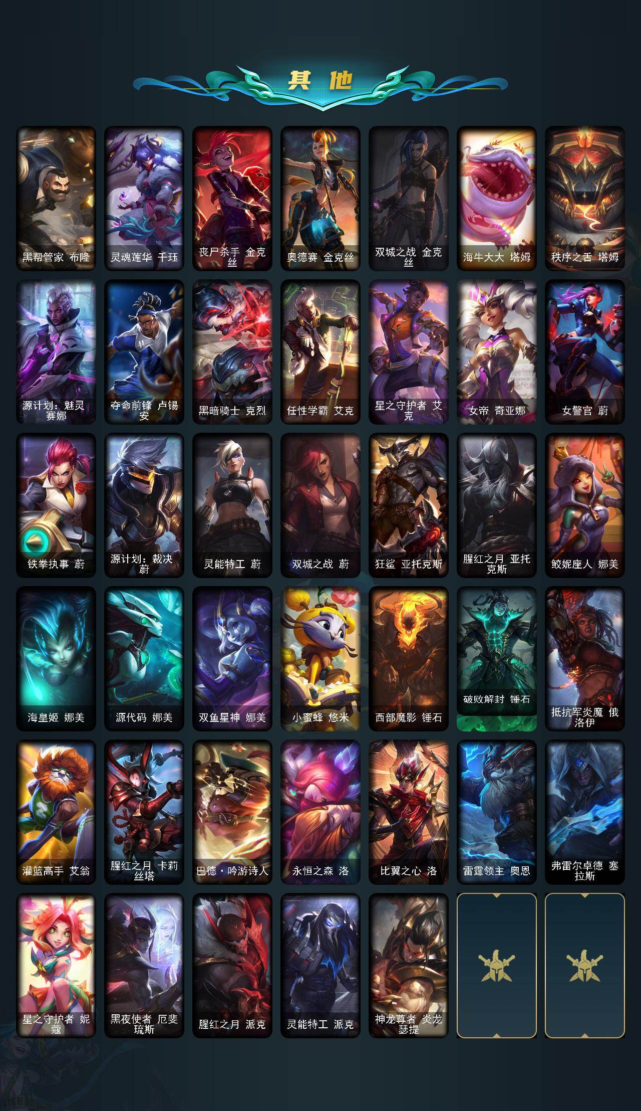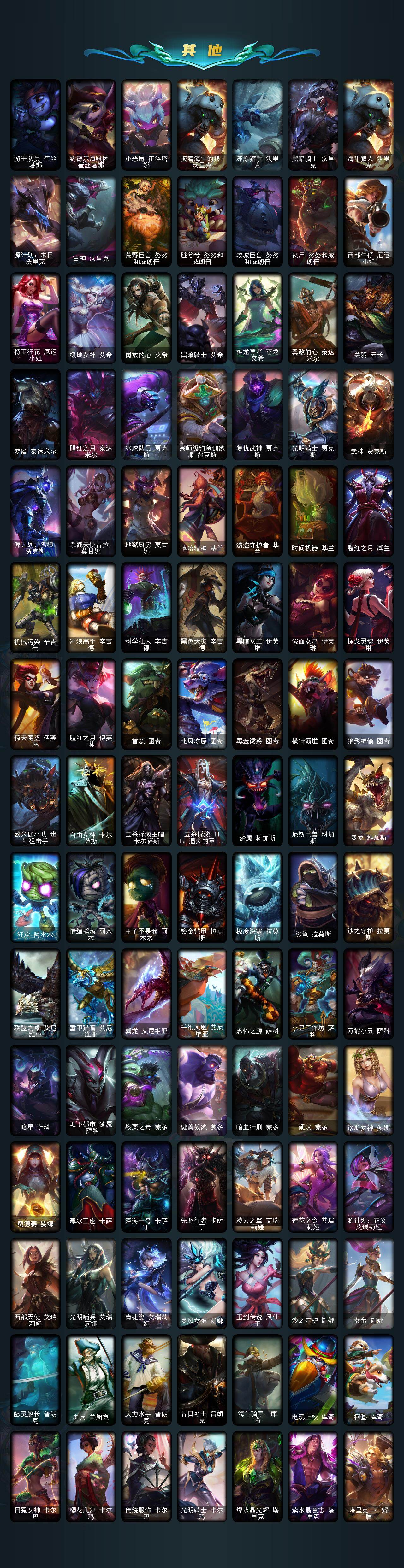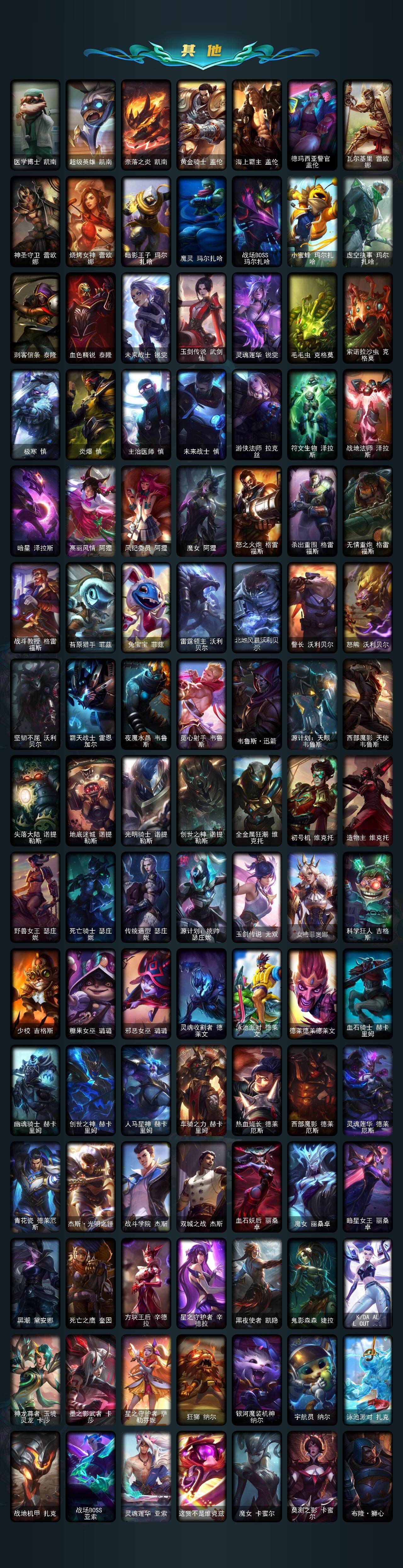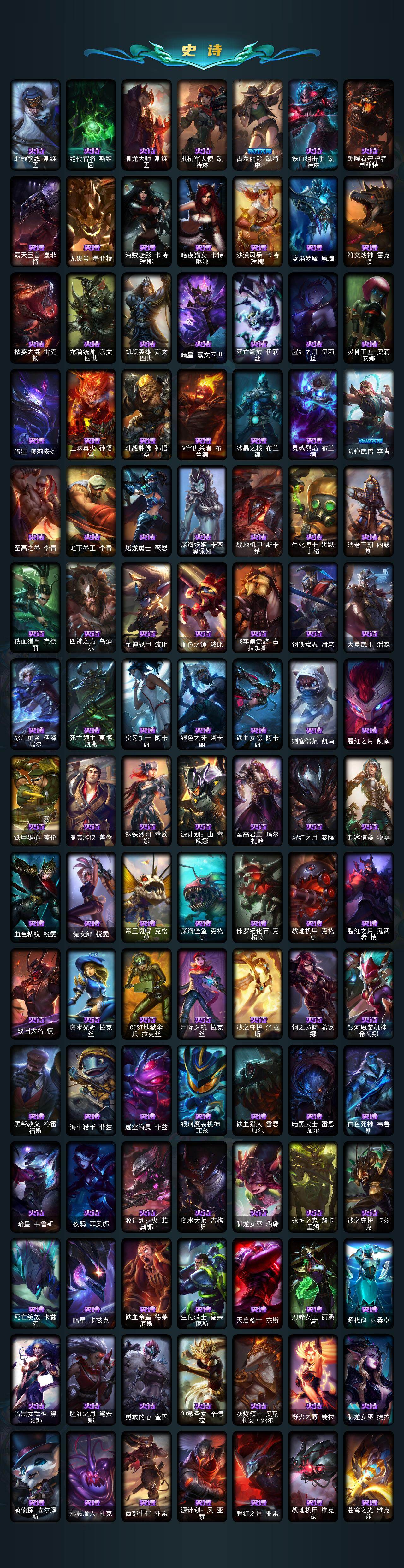 172英雄/881皮肤/2终极/54神话/127限定/23臻彩/308炫彩/82传说/188史诗