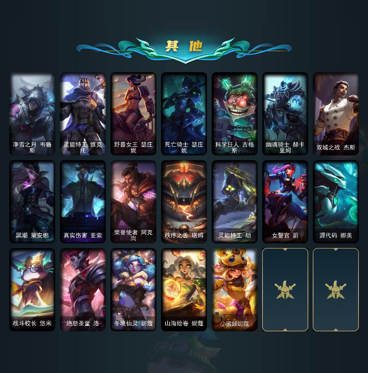 【LOLF2669】172英雄/181皮肤/1终极/4神话/18限定/4臻彩/78炫彩/10传说/39史诗/未定级/十周年纪念安妮/源代码乐芙兰/至臻永恒星灵佐伊/至臻北极星神梅尔/冠军之志瑞兹凯旋圣装/冠军之刃锐雯2016凯旋圣装/玉剑传说无劫胭脂/魔女阿卡丽虚荣/龙腾虎跃瑟提/圣诞精灵崔丝塔娜/平安夜女神娑娜/大元素使拉克丝/Fnatic古拉加斯/胜利之剑亚托克斯/胜利枪神卢锡安/胜利女神瑟庄妮/胜利凤凰艾尼维亚/胜利之王泰达米尔/胜利巨口克格莫/胜利女神娑娜/胜利剑圣易/都铎王朝图奇/战场