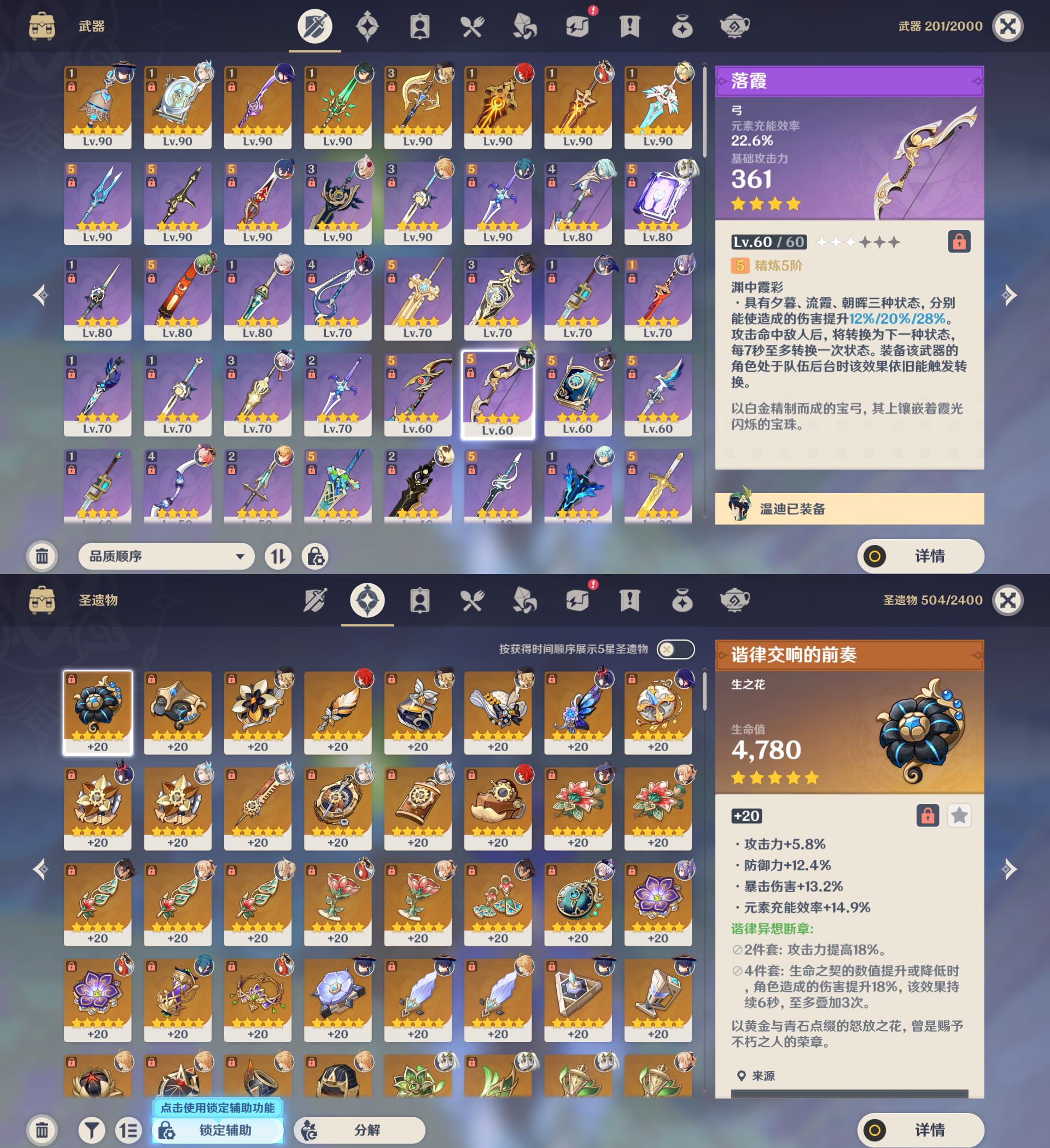 59级/35黄/女主/15个五星角色/8个五星武器/枫原万叶/魈/2命雷电将军/温迪/娜维娅