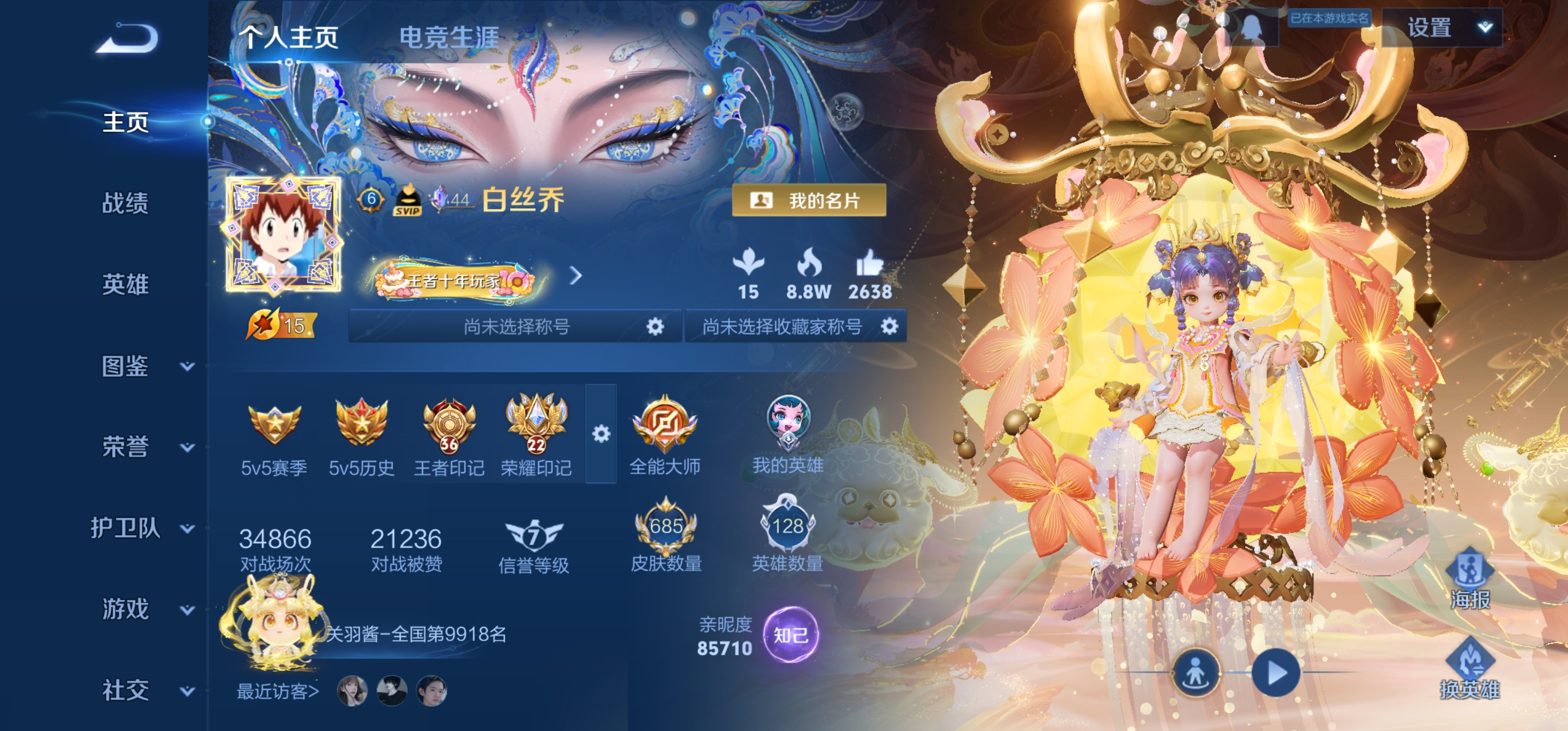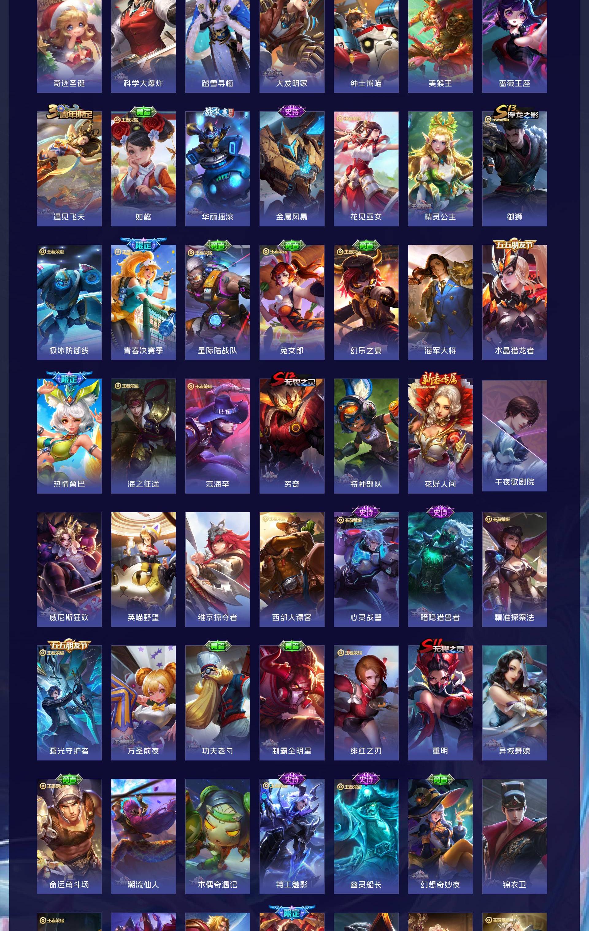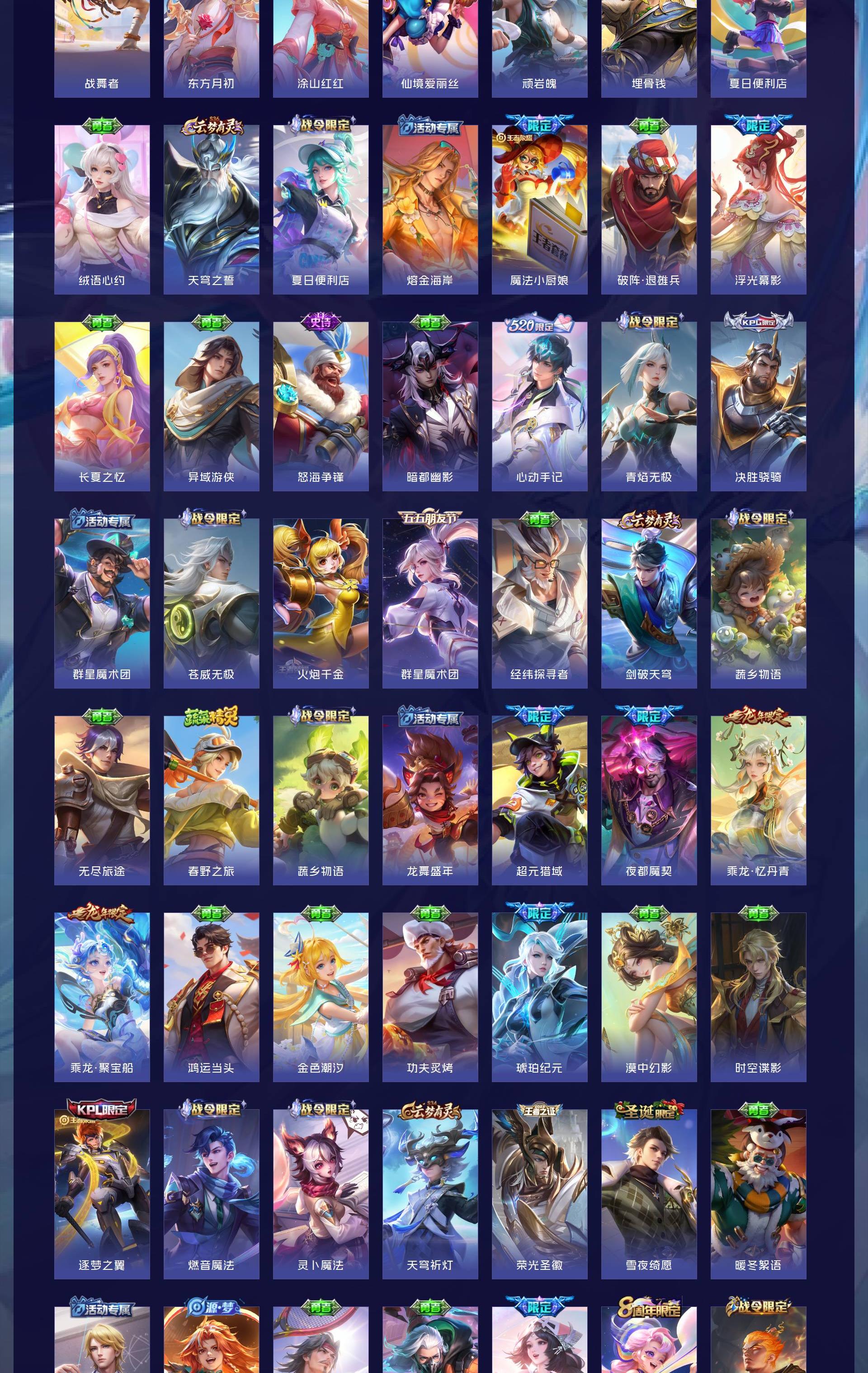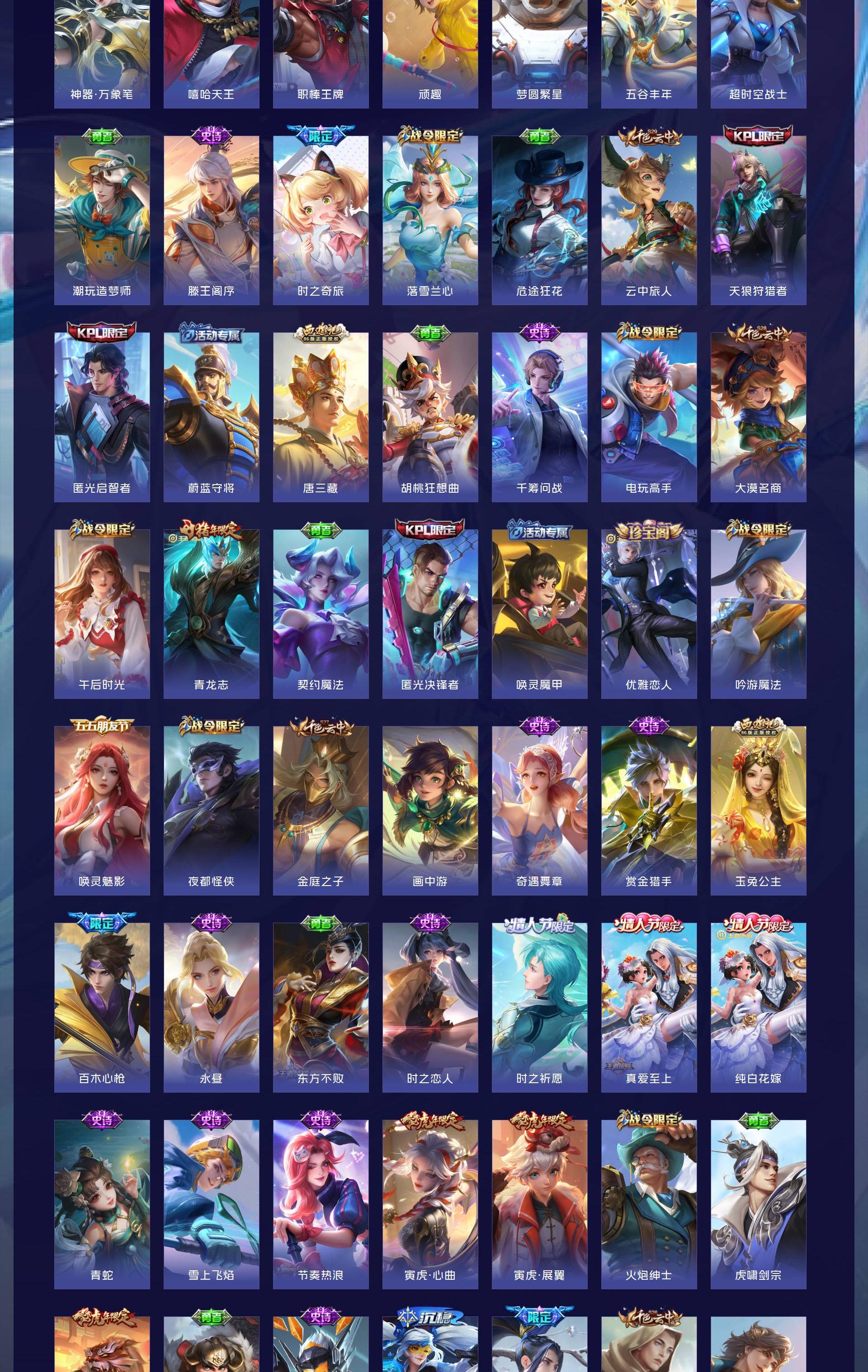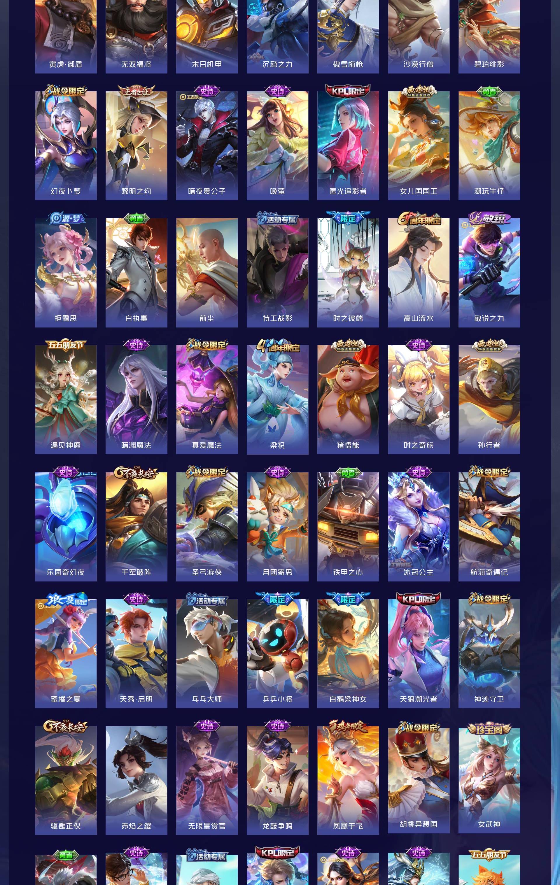 无双贵族 皮肤685 最强王者 荣耀典藏14 无双皮肤10 珍品传说5 星传说17 传说116 其他皮肤541