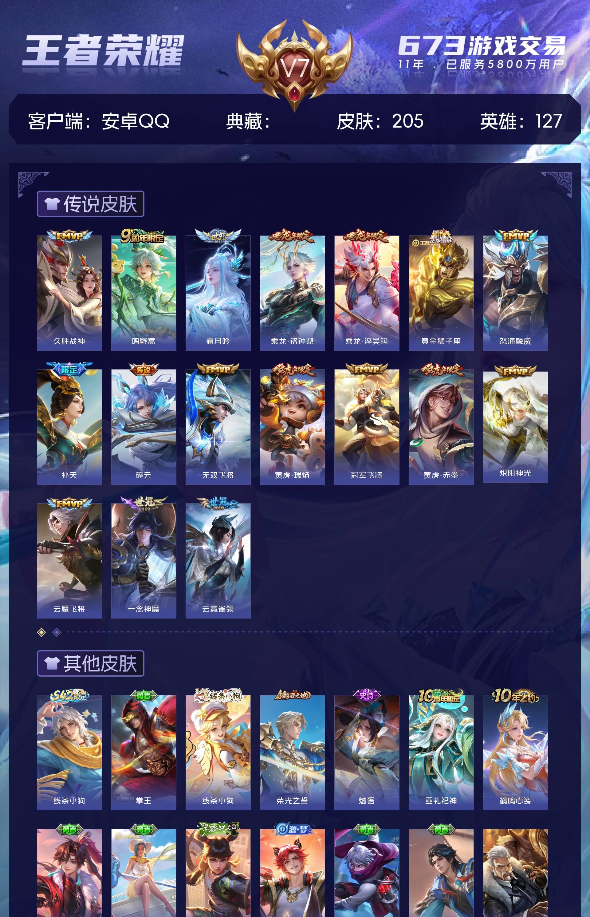 V7 皮肤205 英雄127 永恒钻石 传说17 其他皮肤193