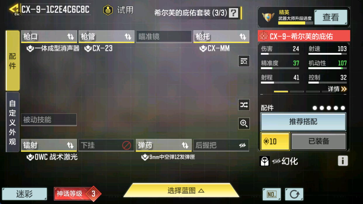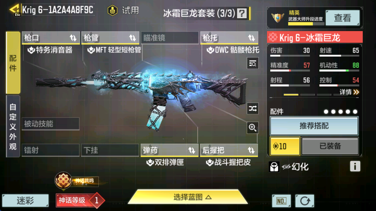 【神话武器】SMG5-潮海汐月,Krig6-冰霜巨龙,Switchblade X9-瞬影斩决,Kilo141-暗夜奏鸣曲,M13-黑耀星辰,AMR-亚特兰蒂斯,FFAR 1-无境空刃,Grau5.56-源核天灾,CX-9-希尔芙的庇佑,MG42-永别,