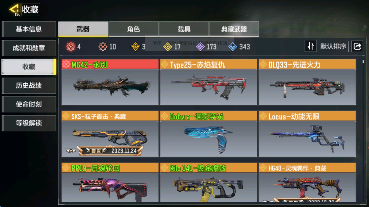 【典藏武器】AK117-火龙咆哮·典藏,HG40-灵魂羁绊·典藏,SKS-粒子震击·典藏,