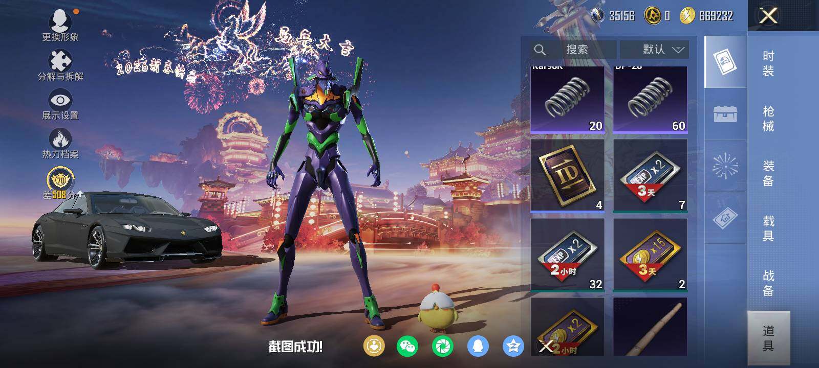 安卓 手Q-13粉装-7特效枪-1载具-2粉色飞行器-82838热力值-10王