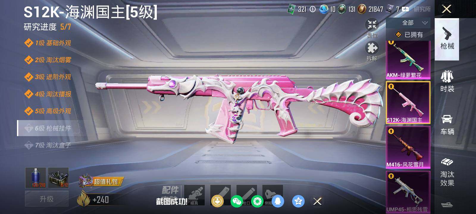 安卓 手Q-13粉装-7特效枪-1载具-2粉色飞行器-82838热力值-10王牌印记-191套装-221枪皮