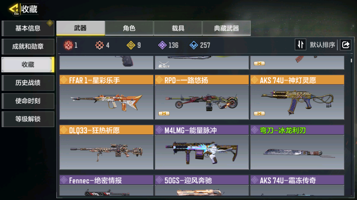【传说武器】AK47-火箭炮,飞翼浮游炮-V高达,AKS 74U-神灯灵愿,FFAR 1-星彩乐手,RPD-一路悠扬,M4-皇家黑魂,50GS-路阻且长,