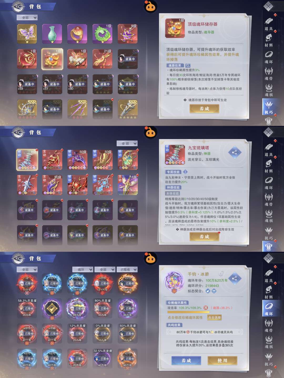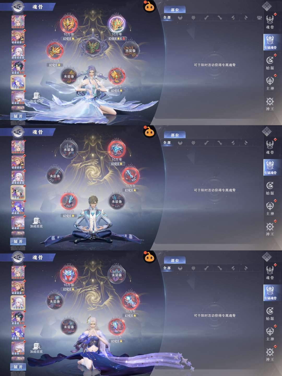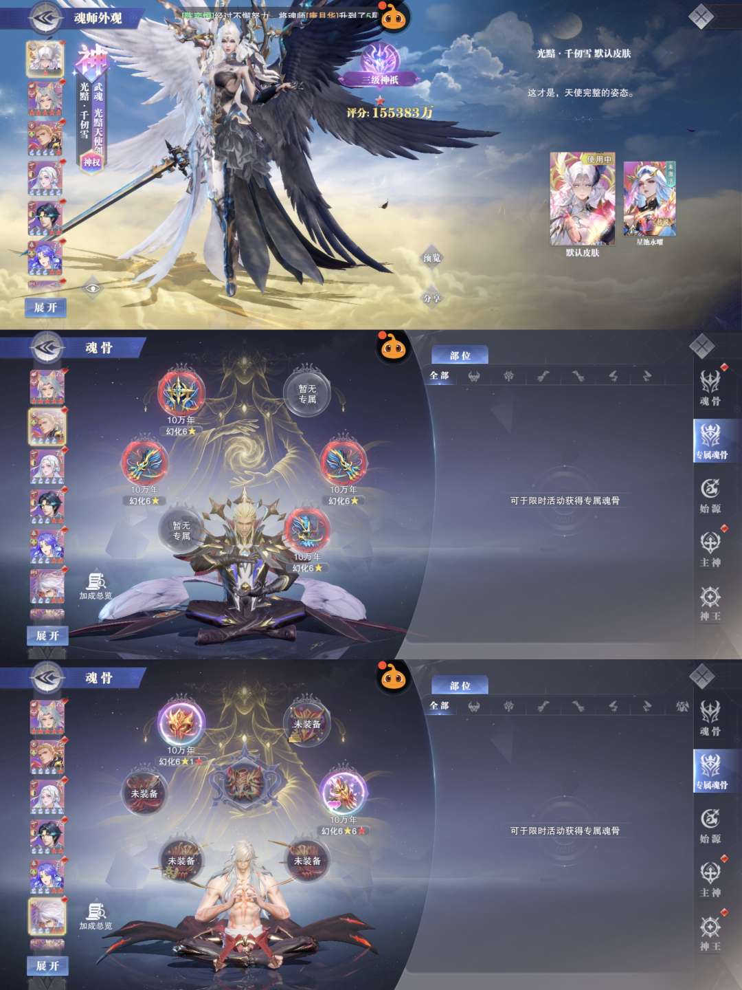 120亿战力,73级魂圣。红1神女大雪18sp。1魂铠核心。2专大猫,4专千道流,3专阿银 霍雨浩