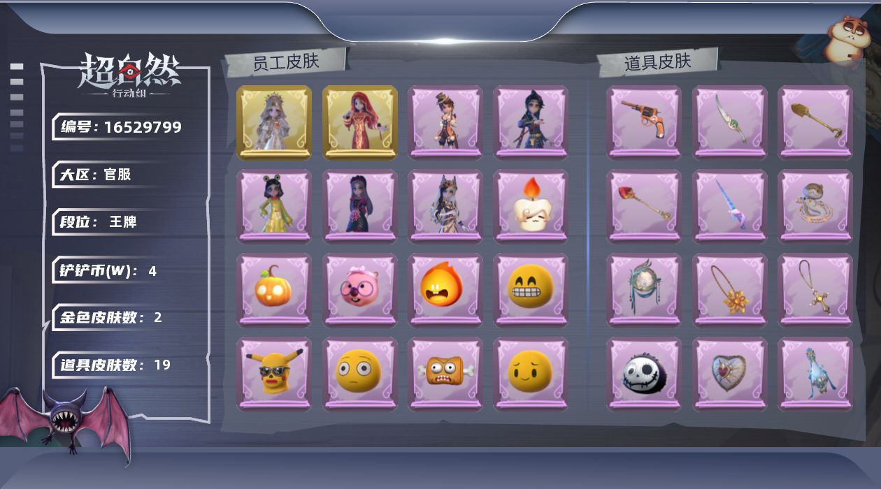 金色皮肤数量2紫色皮肤数量5道具皮肤数量A684