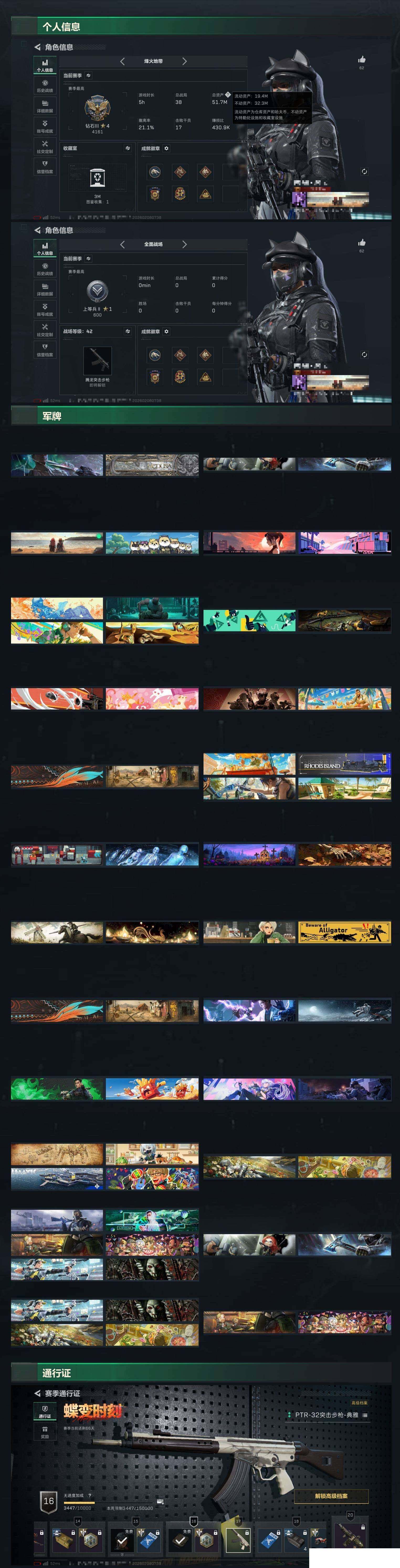 二次账号 烽火地带段位: 钻石 全面战场段位: 上等兵 总资产: 51000000 哈夫币: 645000