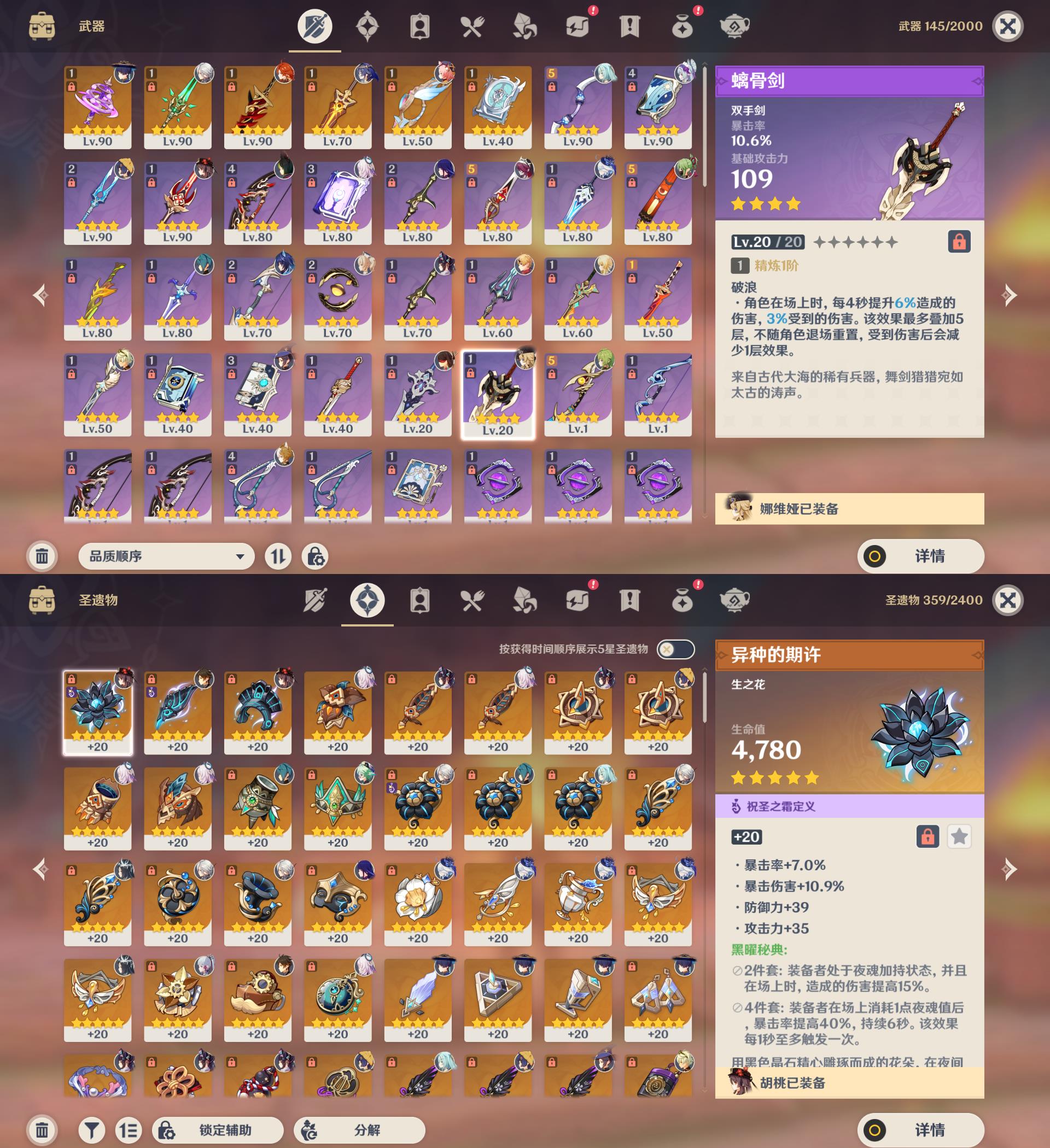 58级/27黄/女主/16个五星角色/6个五星武器/1命玛薇卡/