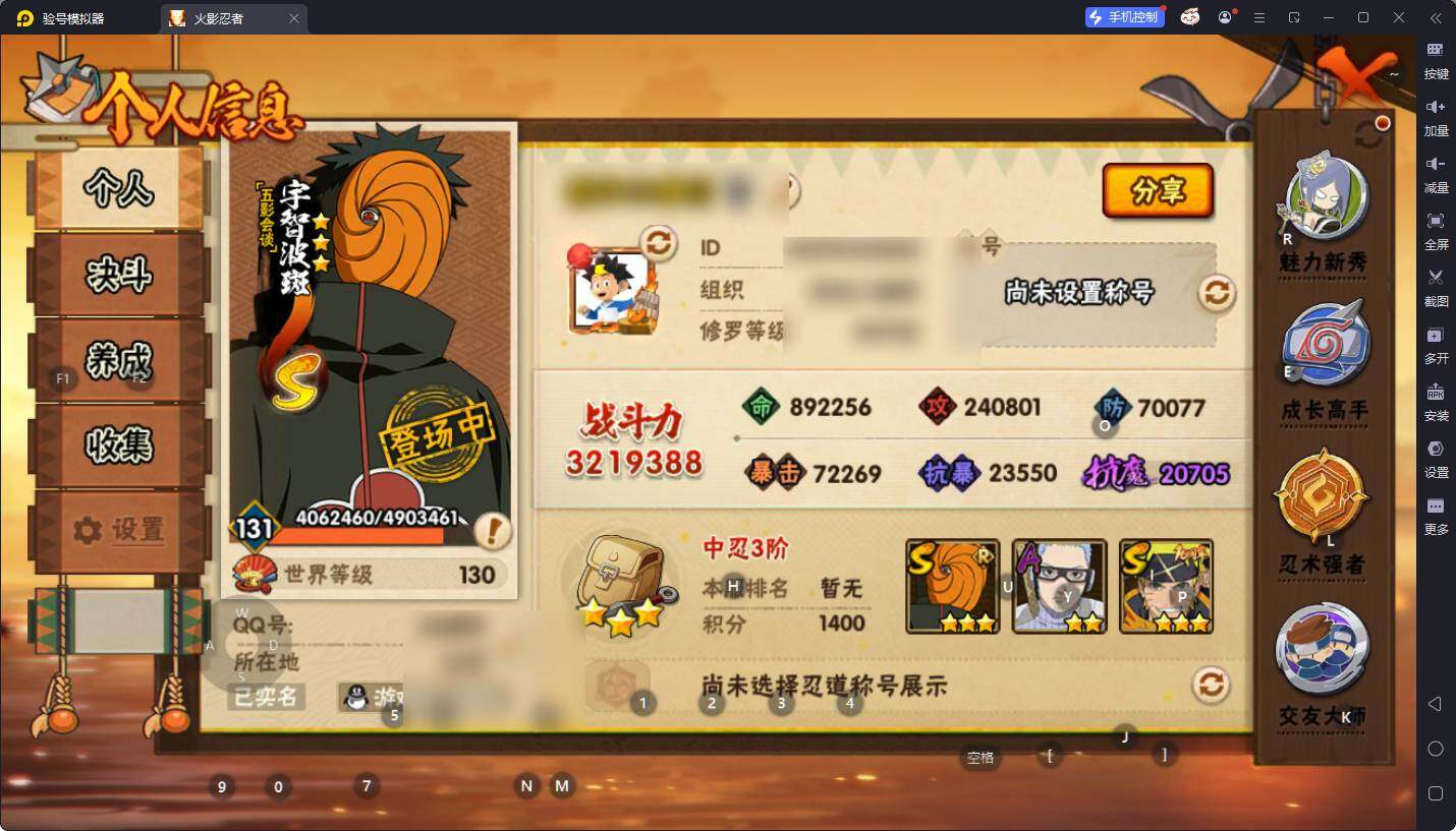 V7/战力321W/S忍4/A忍20/舞之豪杰-自来也/2星桃地再不斩「秽土转生」/