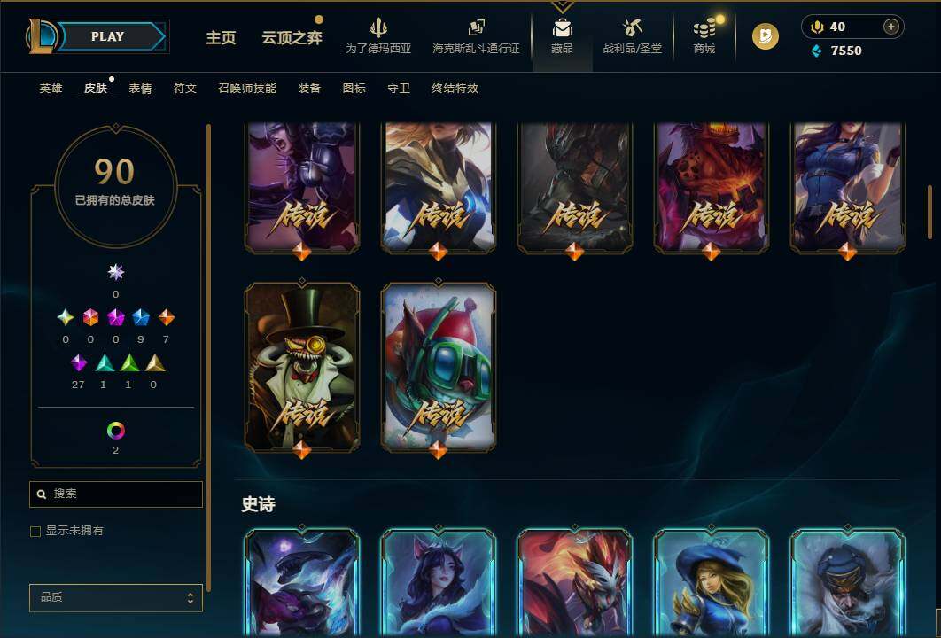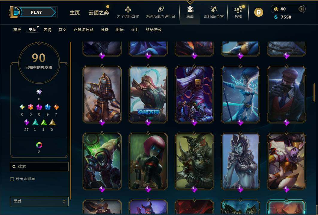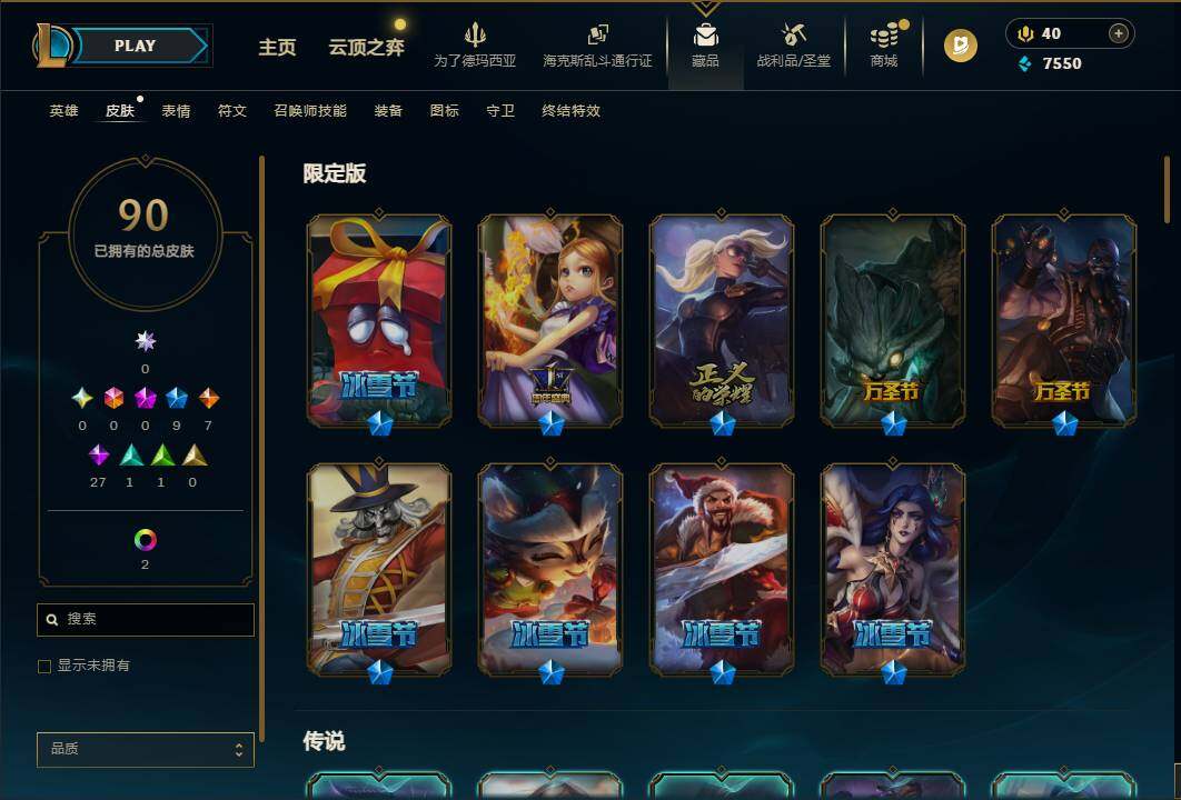 83英雄/90皮肤/9限定/4炫彩/7传说/27史诗/未定级账号等级:58/幸福女神乐芙兰/