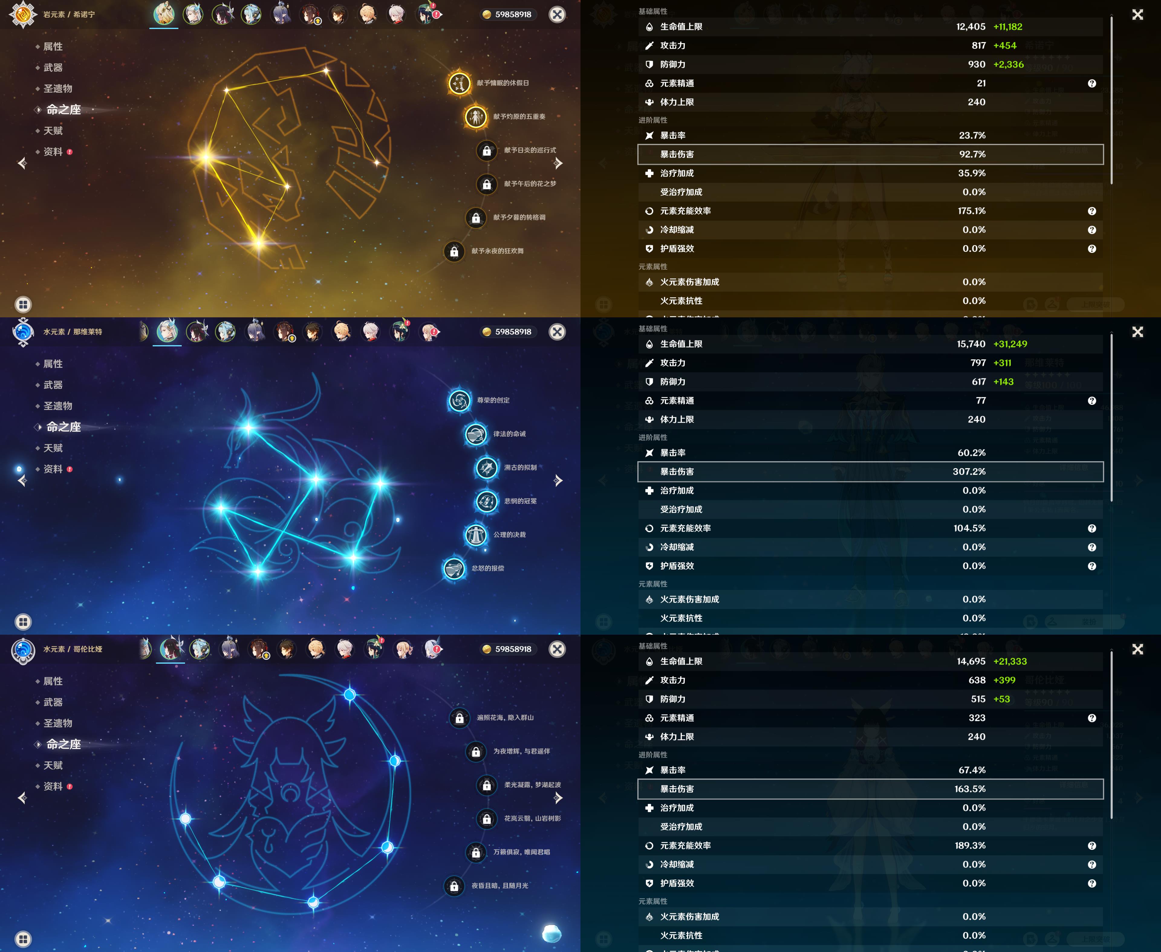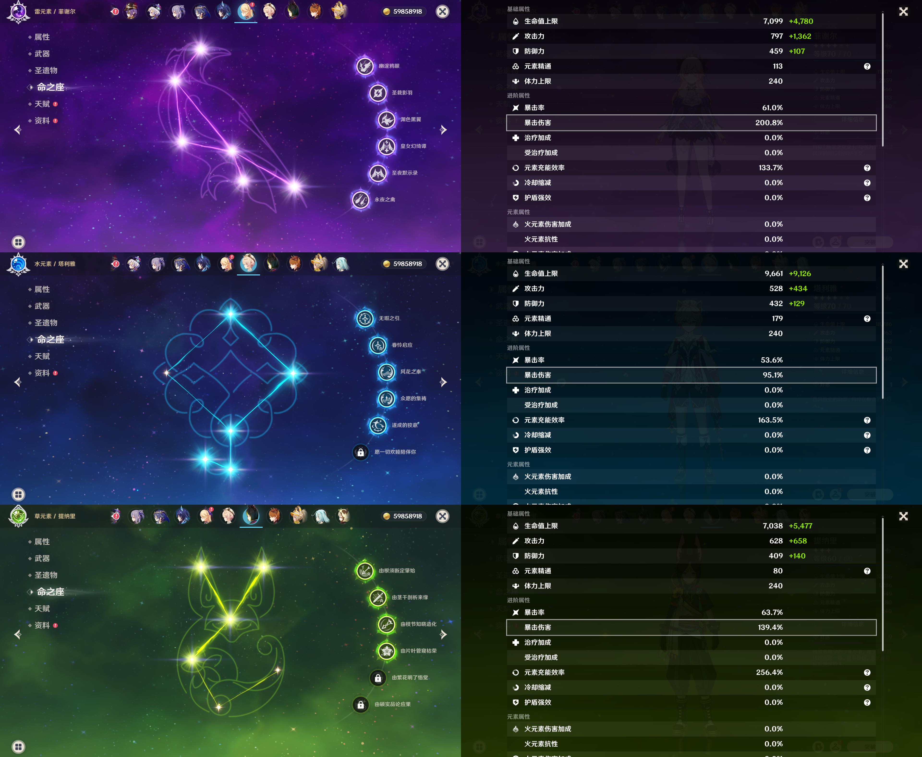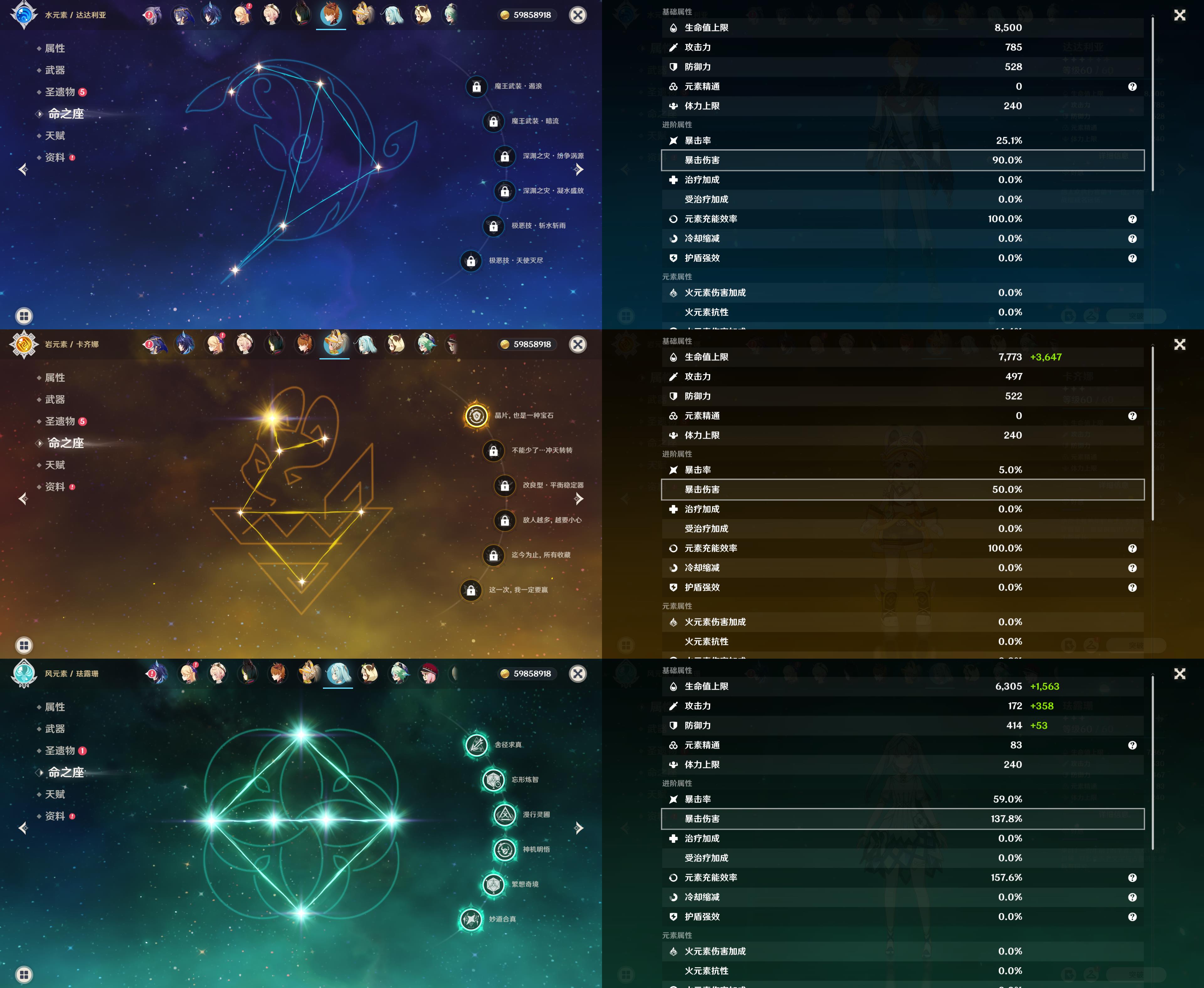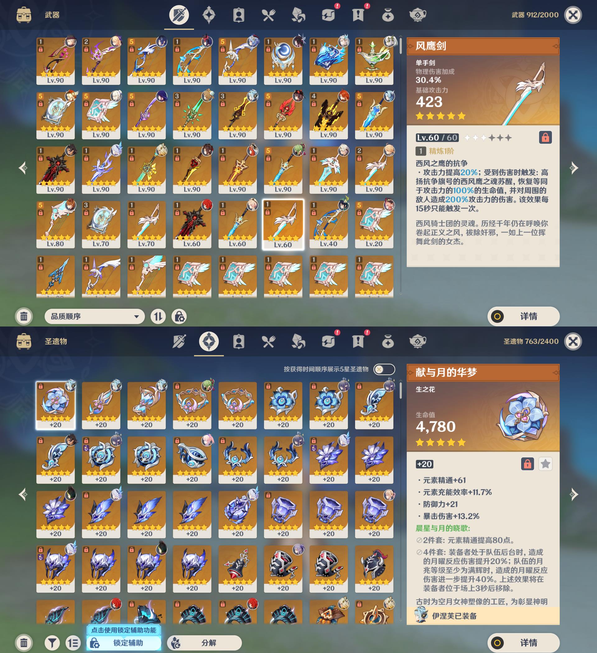 60级/311黄/女主/31个五星角色/55个五星武器/2命希诺宁/满命那维莱特/