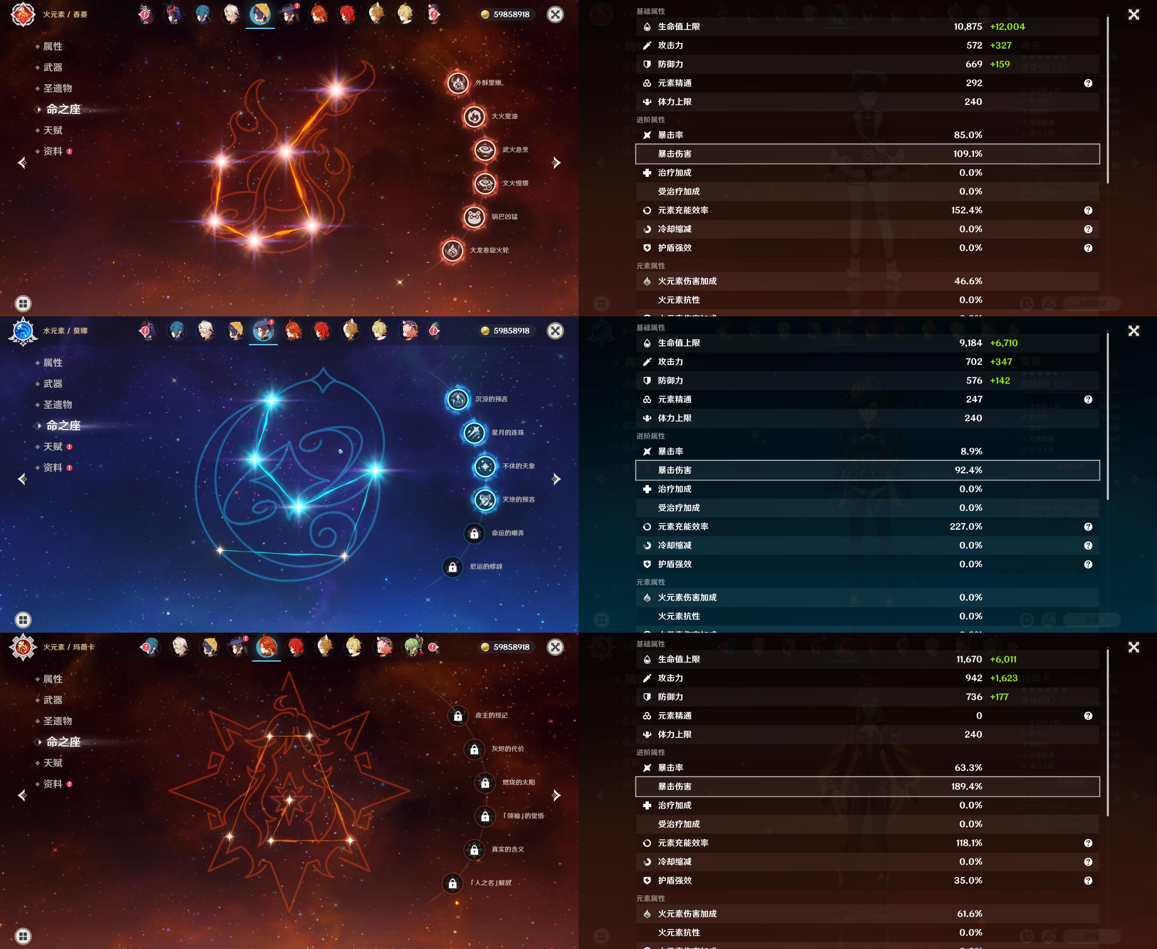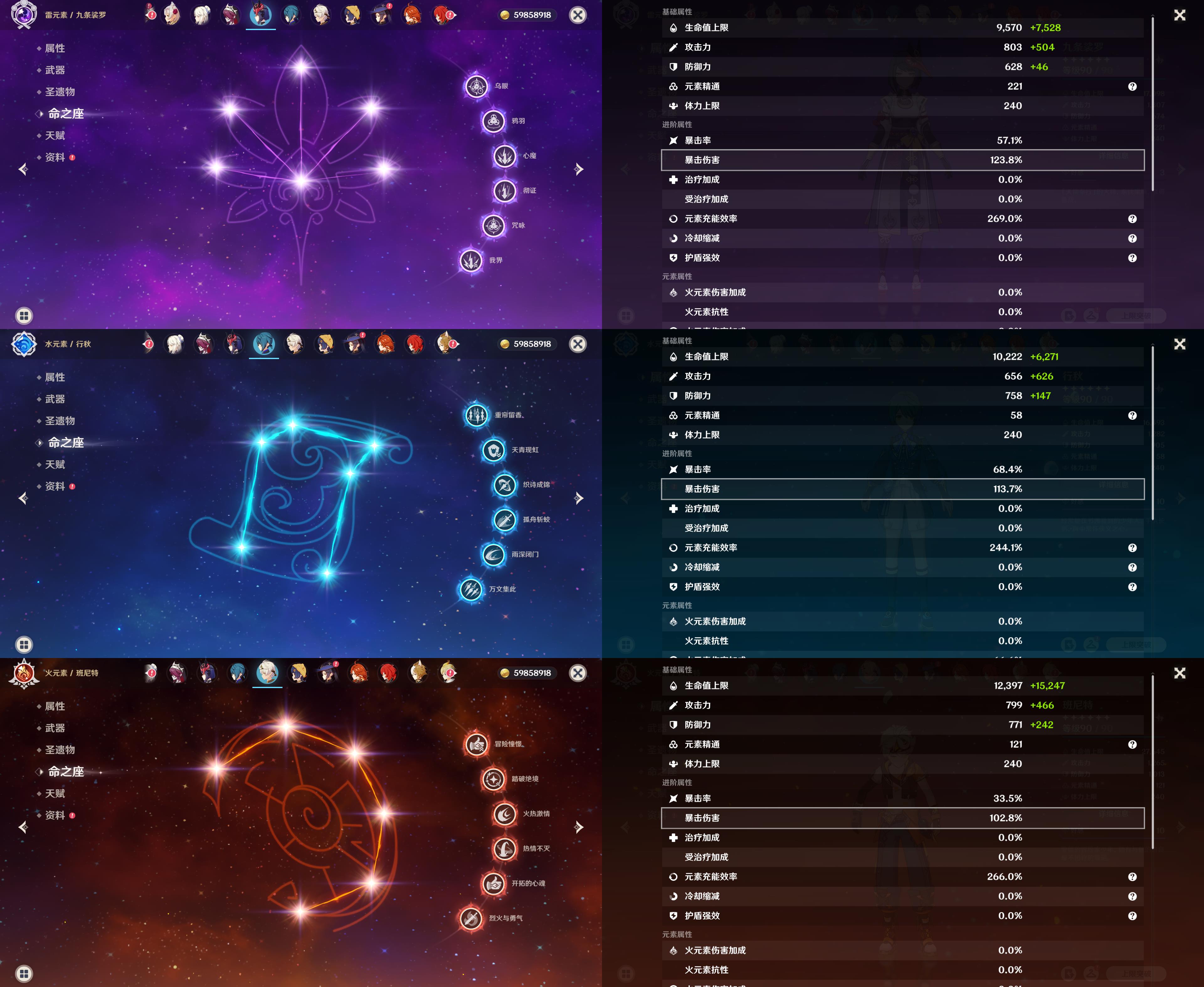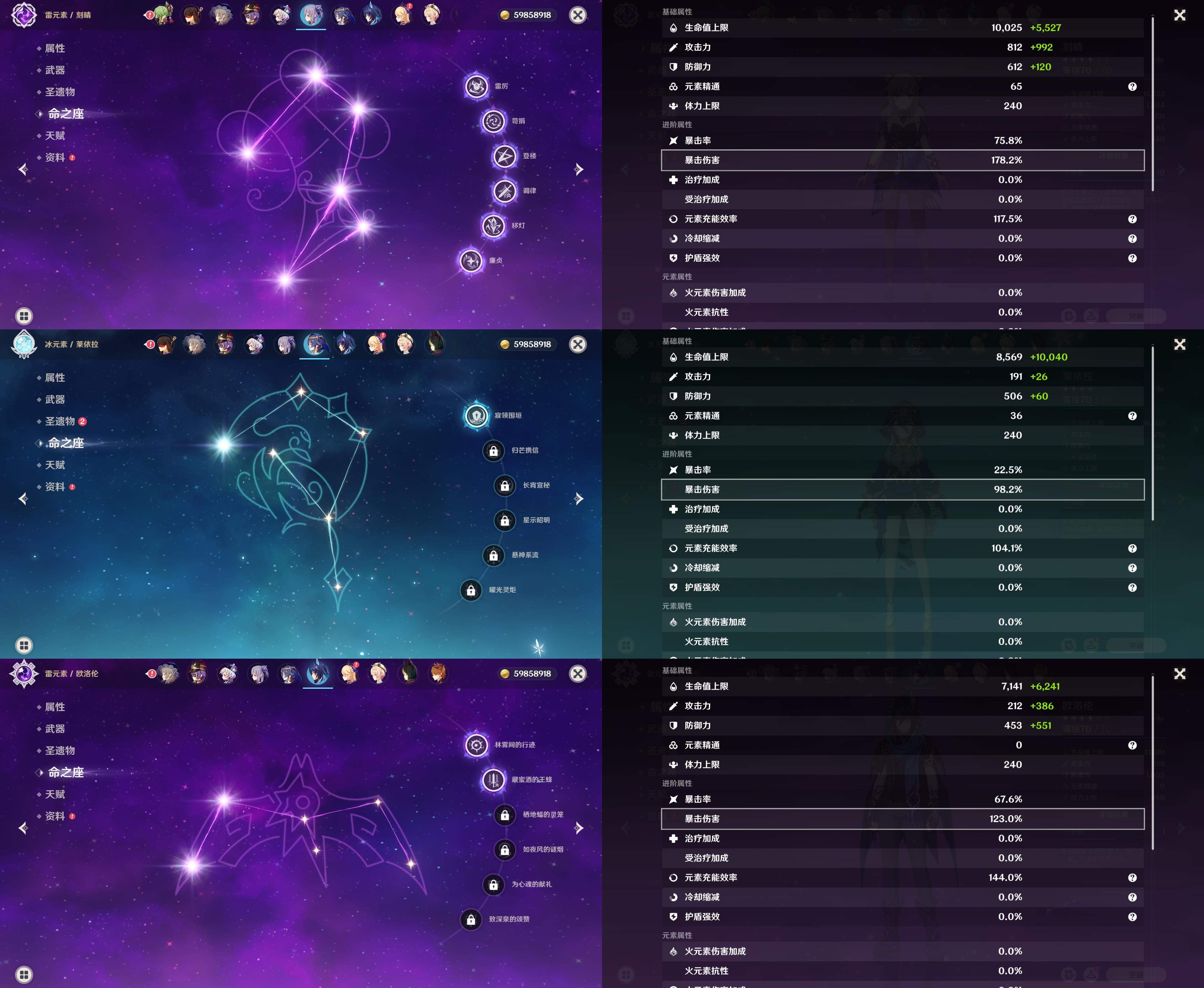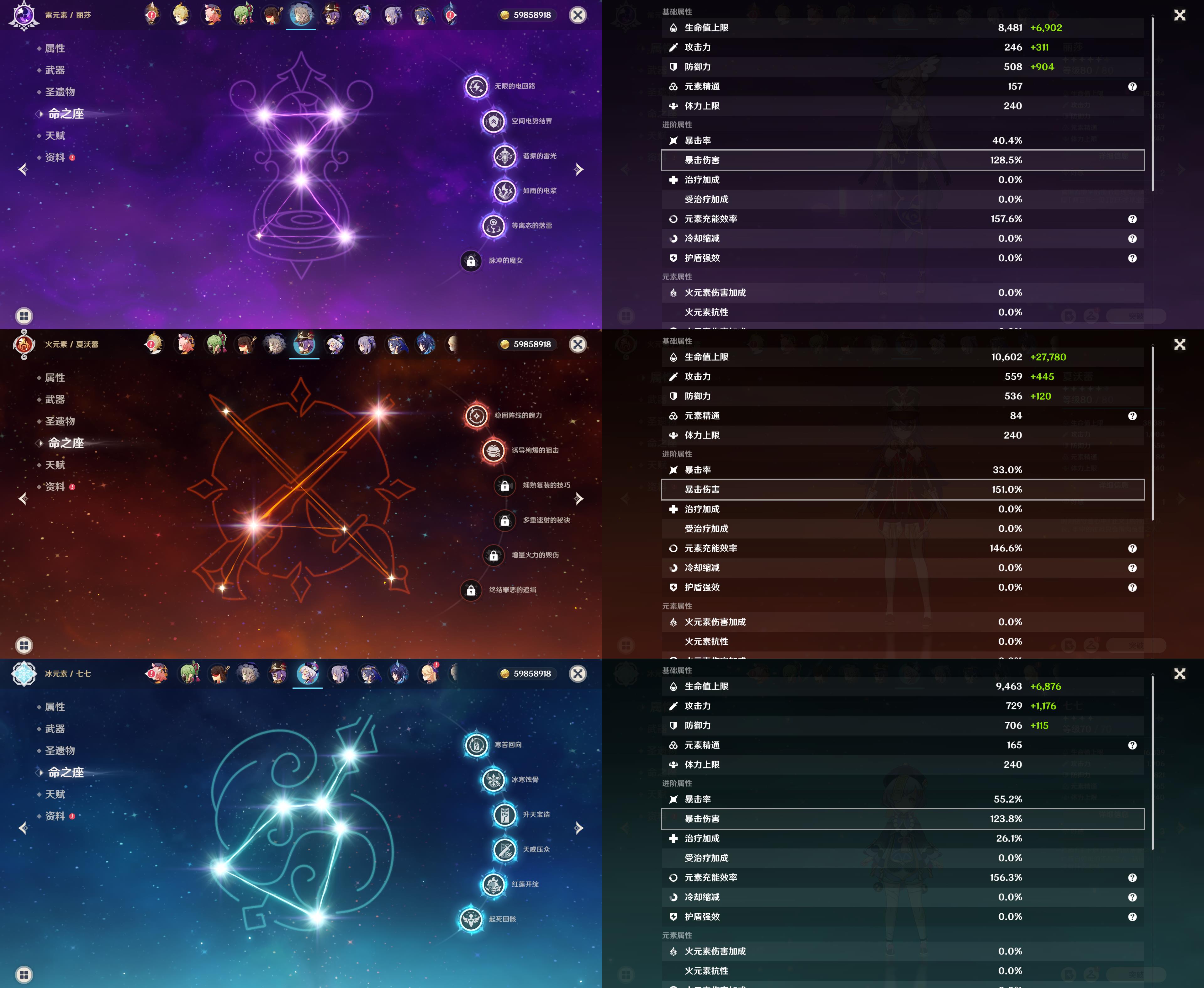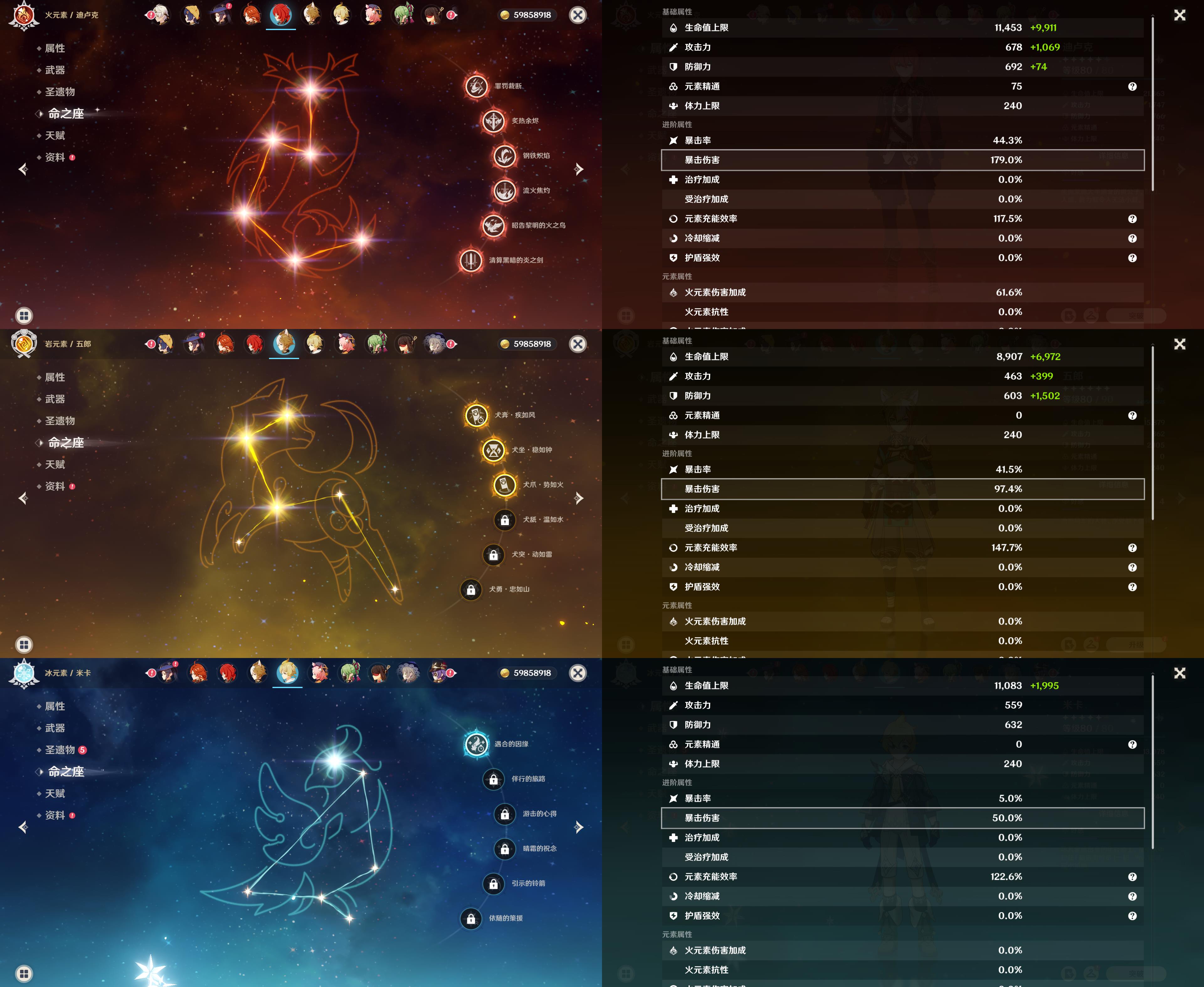 60级/311黄/女主/31个五星角色/55个五星武器/2命希诺宁/满命那维莱特/