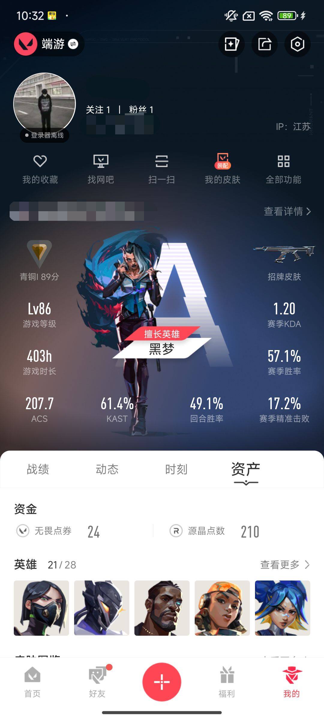 终极*7/卓越*2/皮肤*48/等级*86/段位:青铜/炼狱/维斯/暮蝶/壹决/铁臂/捷风/雷兹/