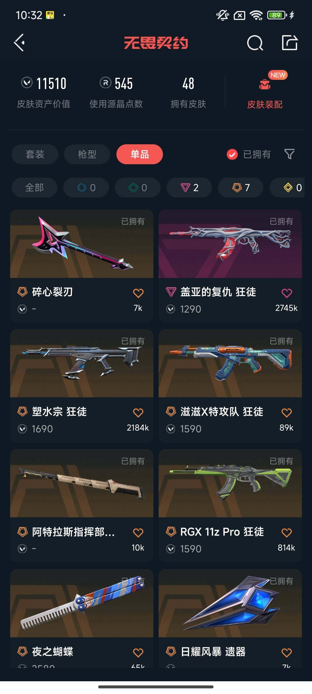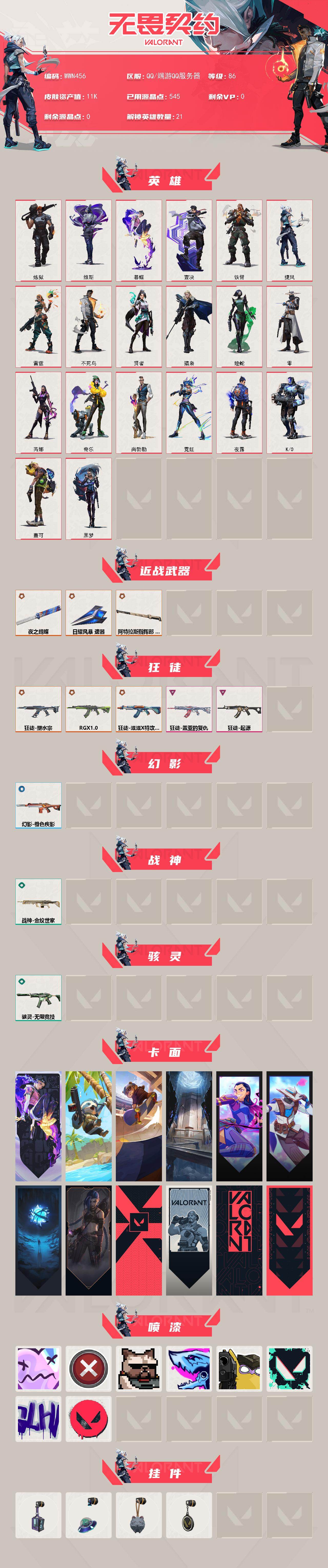 【WWN456】终极*7/卓越*2/皮肤*48/等级*86/段位:青铜/炼狱/维斯/暮蝶/壹决/铁臂/捷风/雷兹/不死鸟/贤者/猎枭/蝰蛇/零/芮娜/奇乐/尚勃勒/霓虹/夜露/K/O/盖可/黑梦/近战武器-夜之蝴蝶/近战武器-日耀风暴 遗器/近战武器-阿特拉斯指挥部 甩棍/狂徒-塑水宗/狂徒-RGX 11z Pro/狂徒-滋滋X特攻队/狂徒-盖亚的复仇/狂徒-起源/幻影-橙色疾影/战神-金纹世家/骇灵-无限竞技/无畏契约:暮蝶 卡面/树懒大作战 卡面/Clutch 卡面/表象之下 卡面/无畏契约