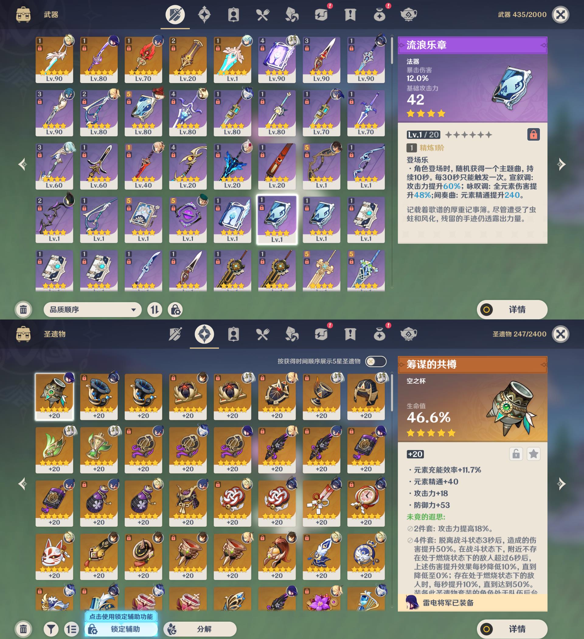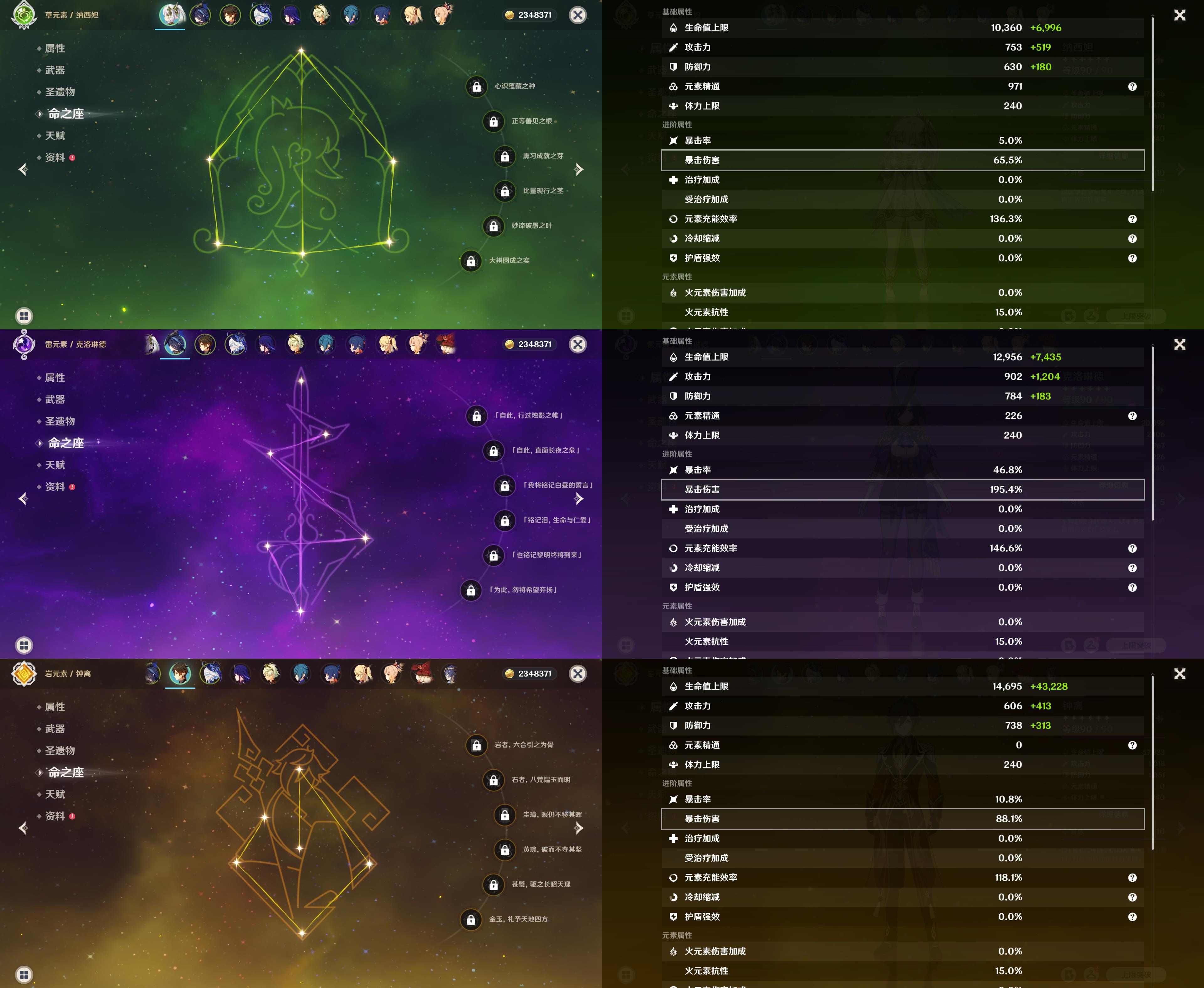 【YSN2356】56级/18黄/女主/11个五星角色/5个五星武器/纳西妲/克洛琳德/钟离/芙宁娜/雷电将军/宵宫/可莉/1命提纳里/琴/莫娜/刻晴/风鹰剑/薙草之稻光/护摩之杖/精2赤沙之杖/天空之傲