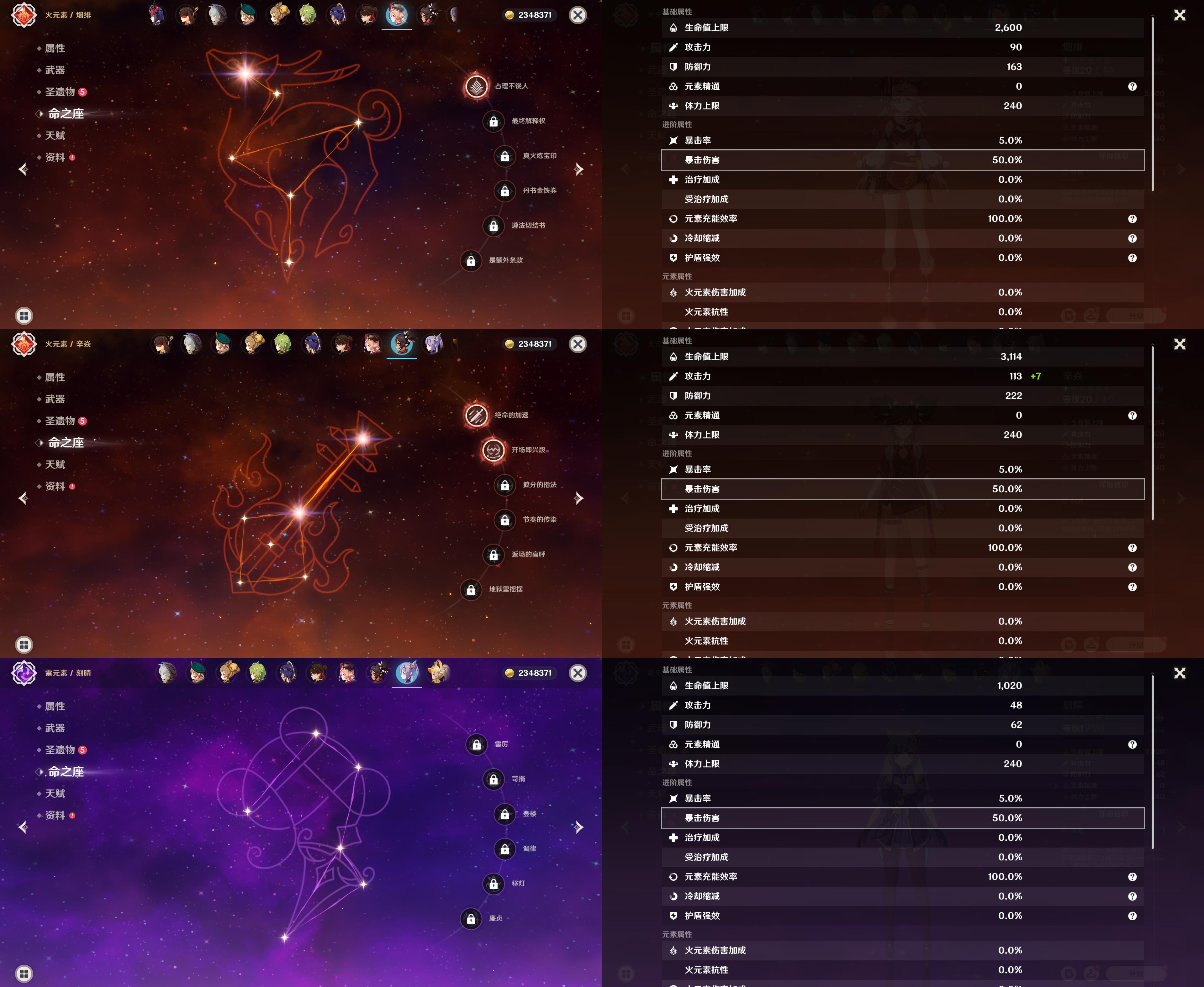 五星角色: