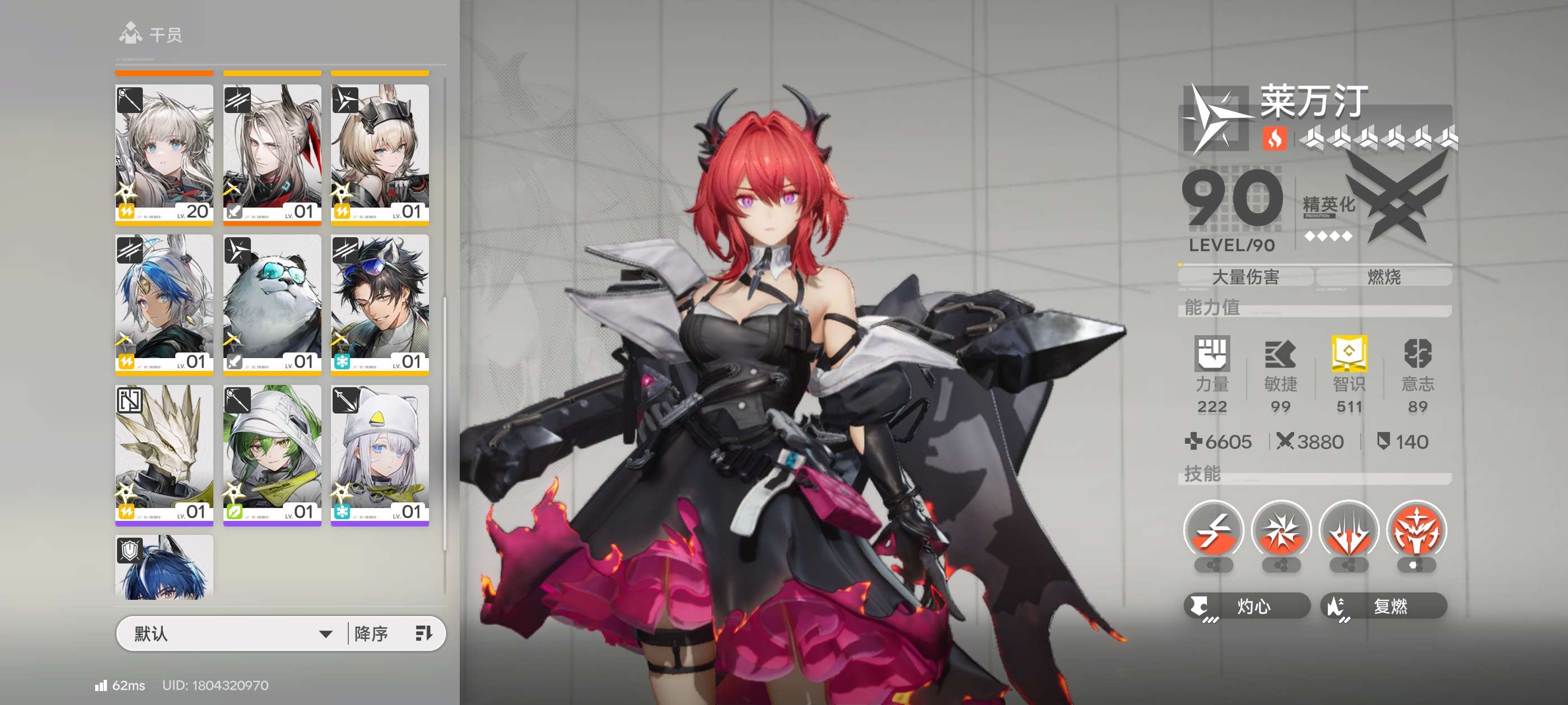 0+1莱万汀1+2小羊1+0老爷子0别礼,莱万汀几乎满练,主线过完基建矿物几乎拉满有三个自选六星武器