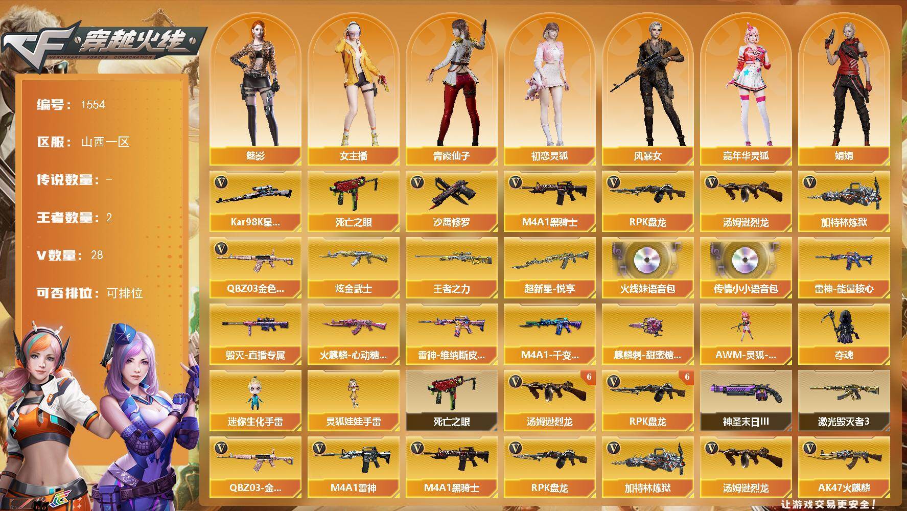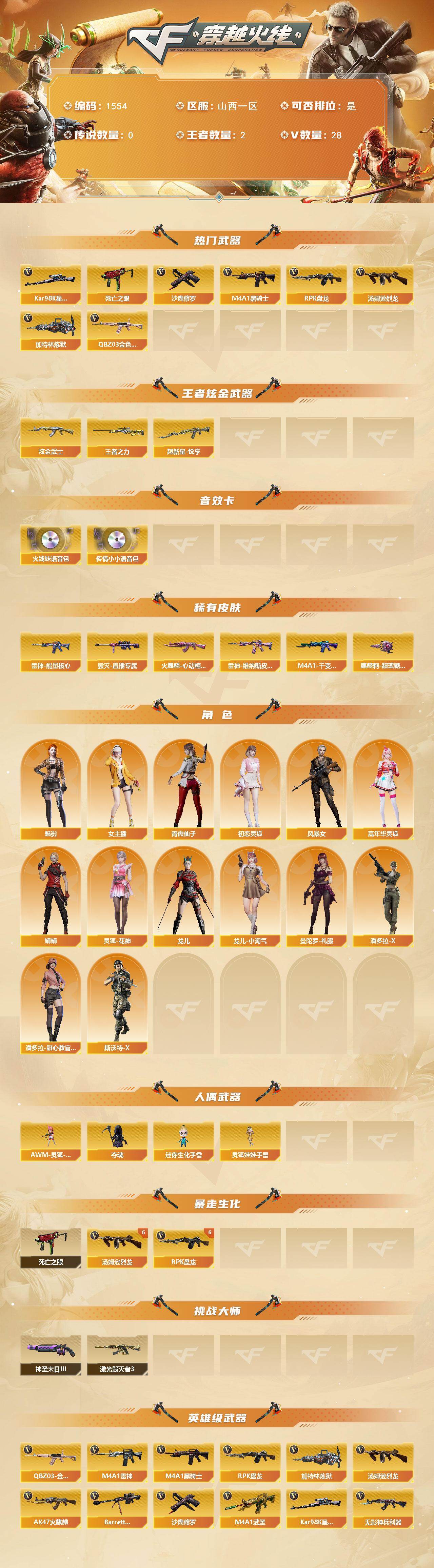 山西一区-28V-2王者武器数-1炫金武器数