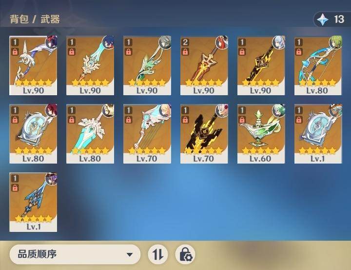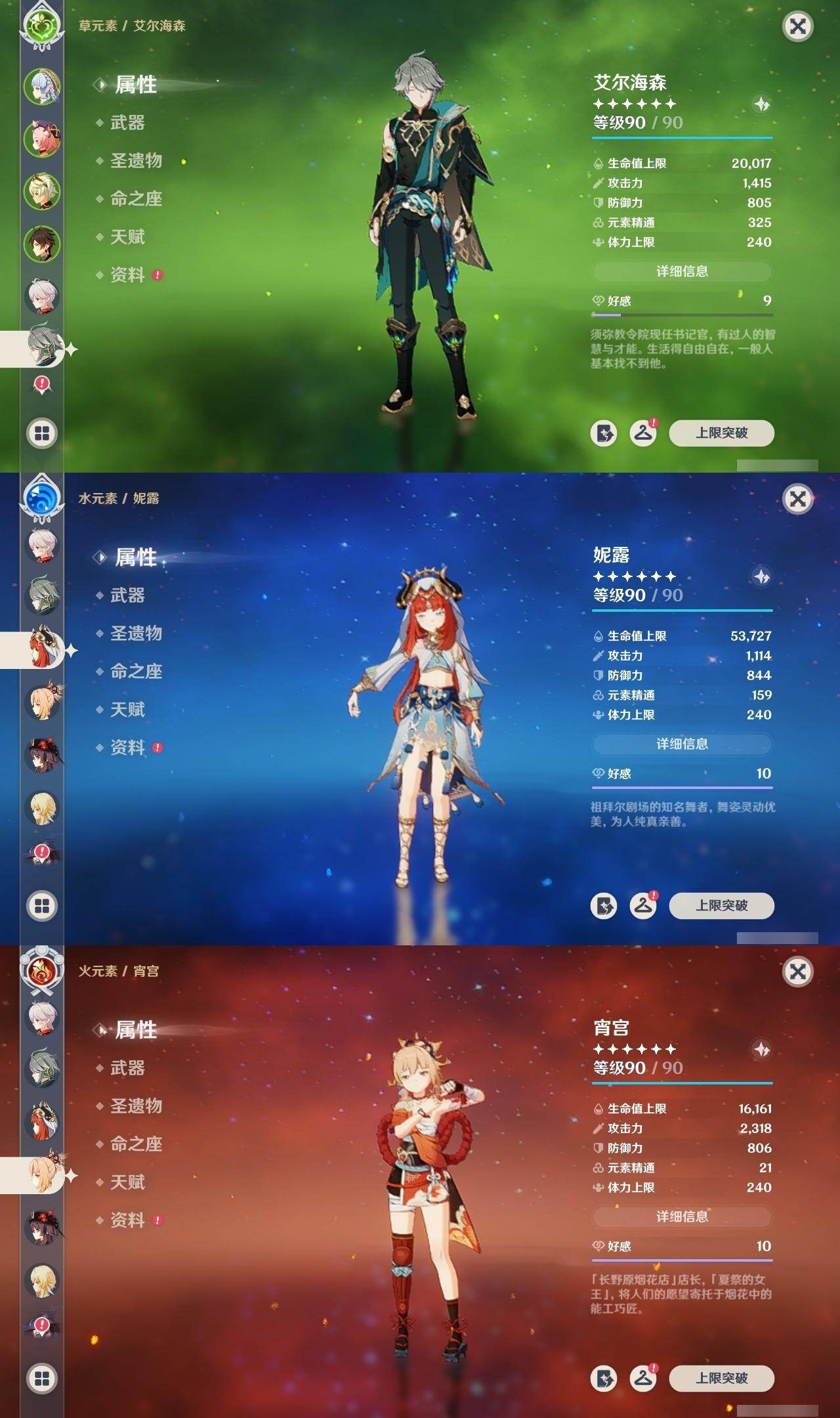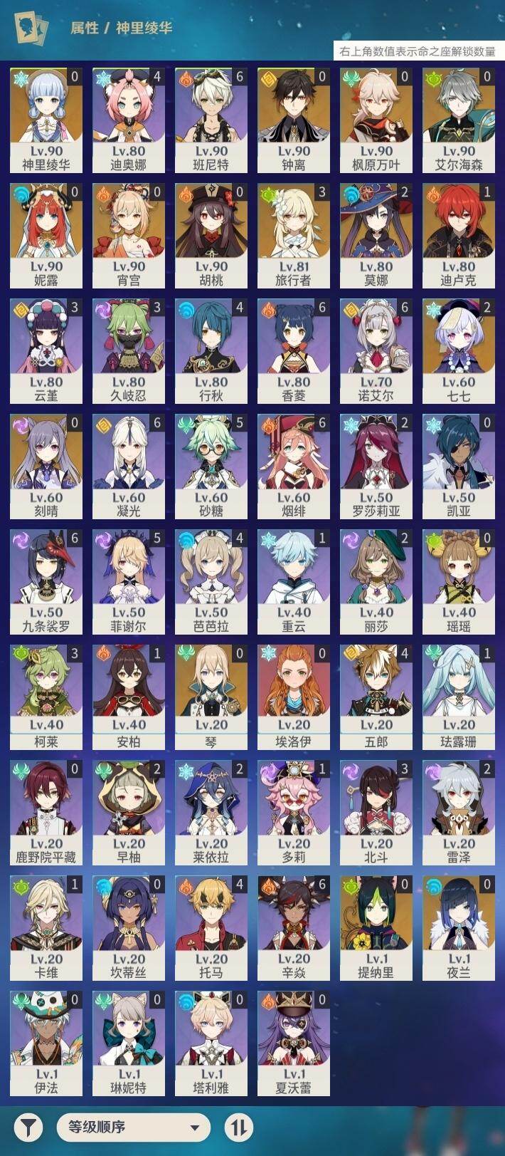 59级/33黄/女主/14个五星角色/13个五星武器0命艾尔海森,0命妮露,