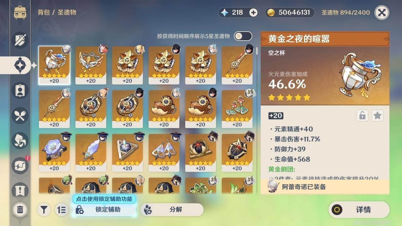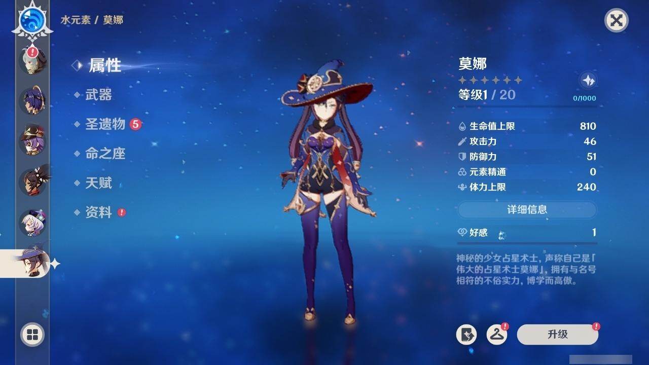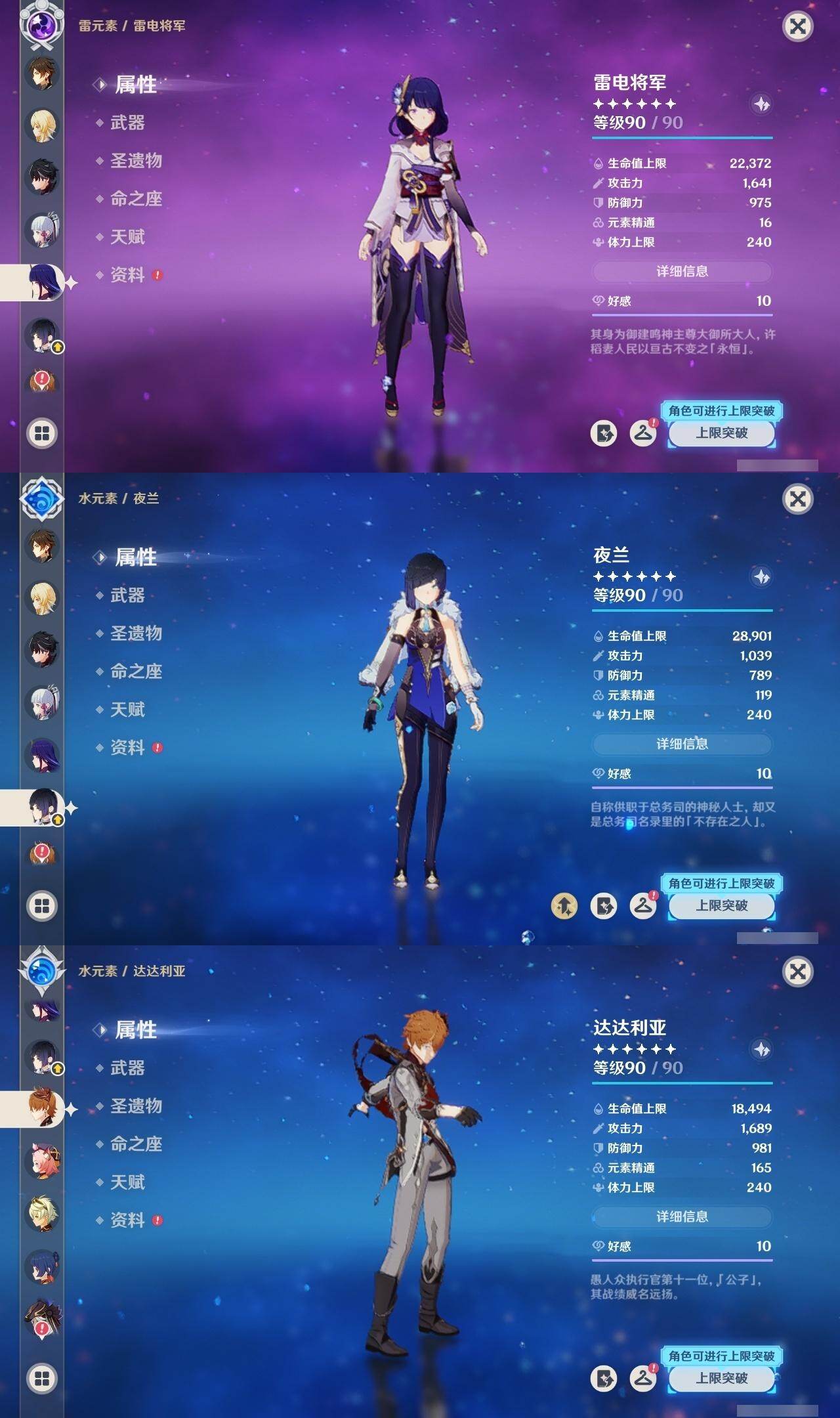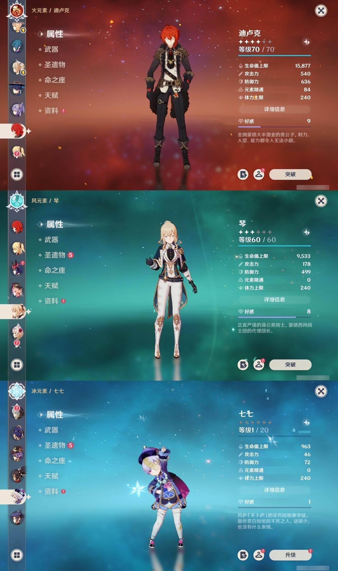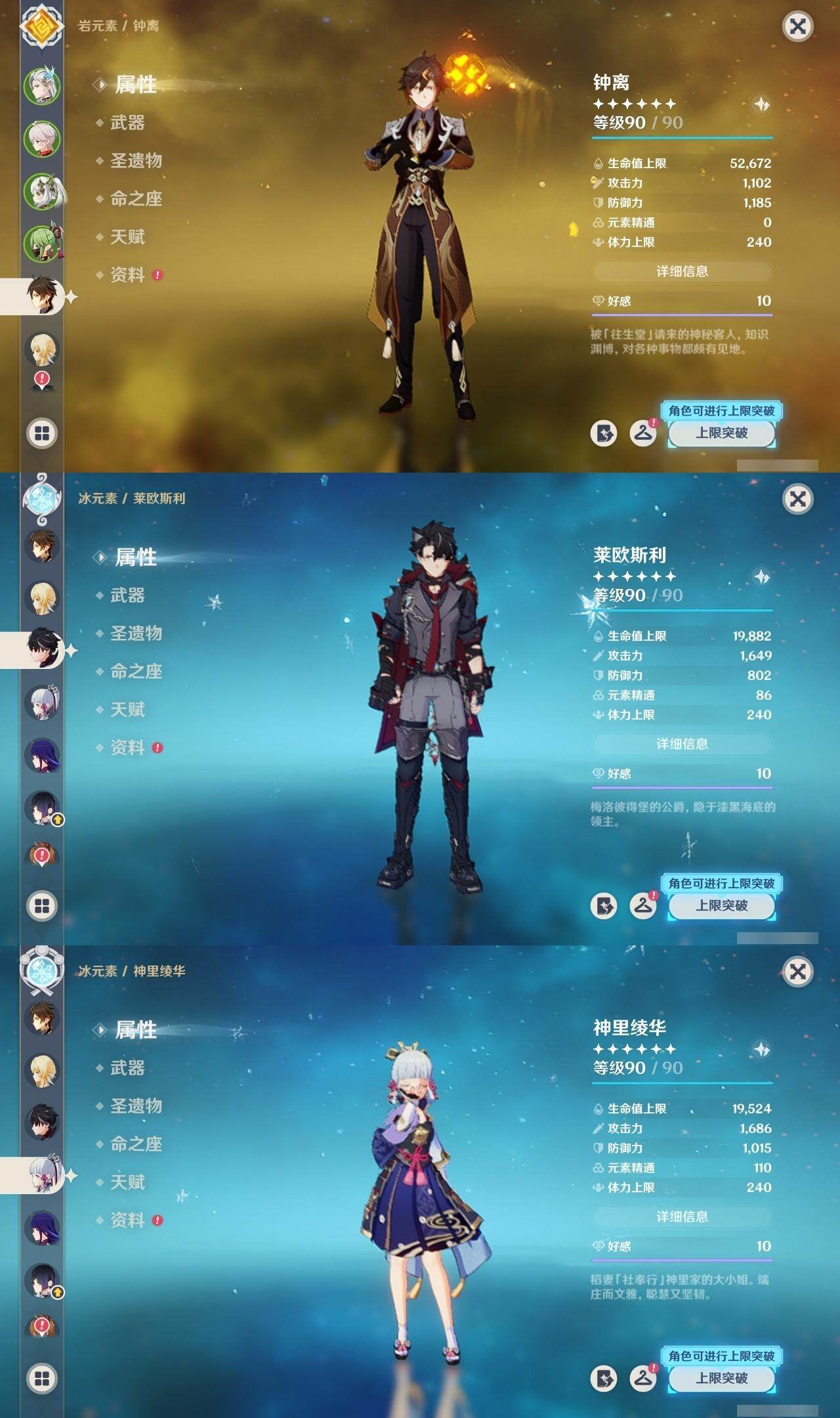59级/29黄/女主/19个五星角色/3个五星武器0命阿蕾奇诺,0命莱欧斯利
