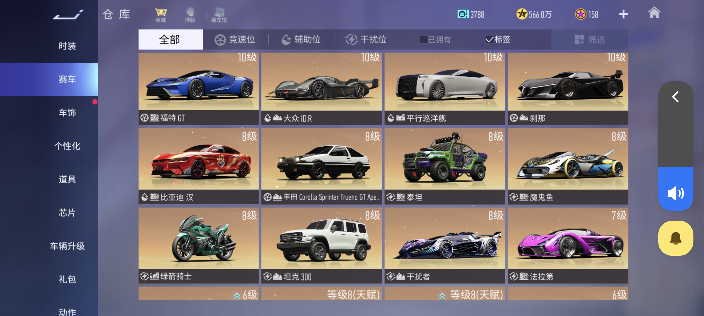 稀有赛车数量: