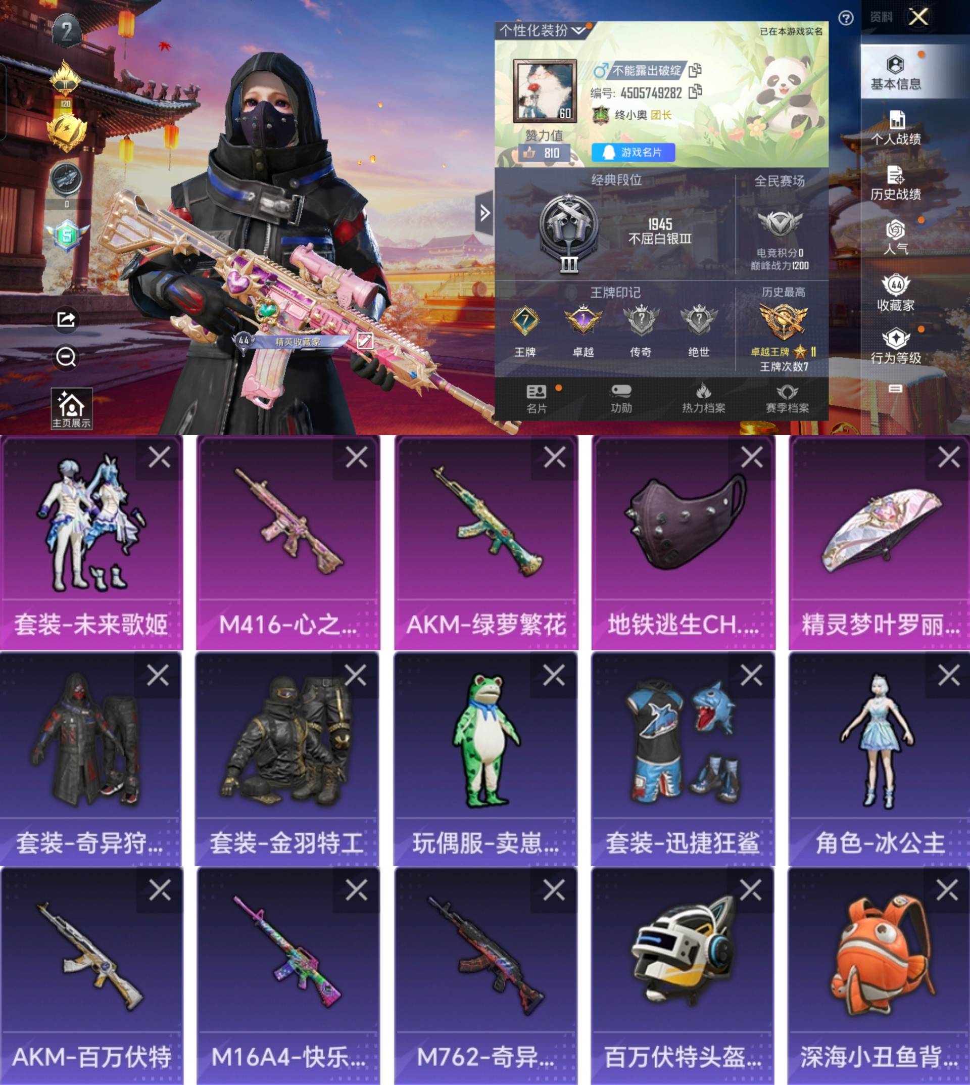 LGH382【2特1粉未来歌姬奇异狩猎者金羽特工迅捷狂鲨素材号】(不可二次) 安卓Q-36967热力值 7王牌印记 历史卓越王牌11星 85套装 126枪皮 【2稀有】 奇异狩猎者 AKM-百万伏特 【1粉装】 未来歌姬 【2特效枪】 M416-心之恋语 (7级) AKM-绿萝繁花 (5级) 【6热门】 迅捷狂鲨 金羽特工 粉红小猪 M762-奇异狩猎者 M24-奇异狩猎者 S686-奇异狩猎者