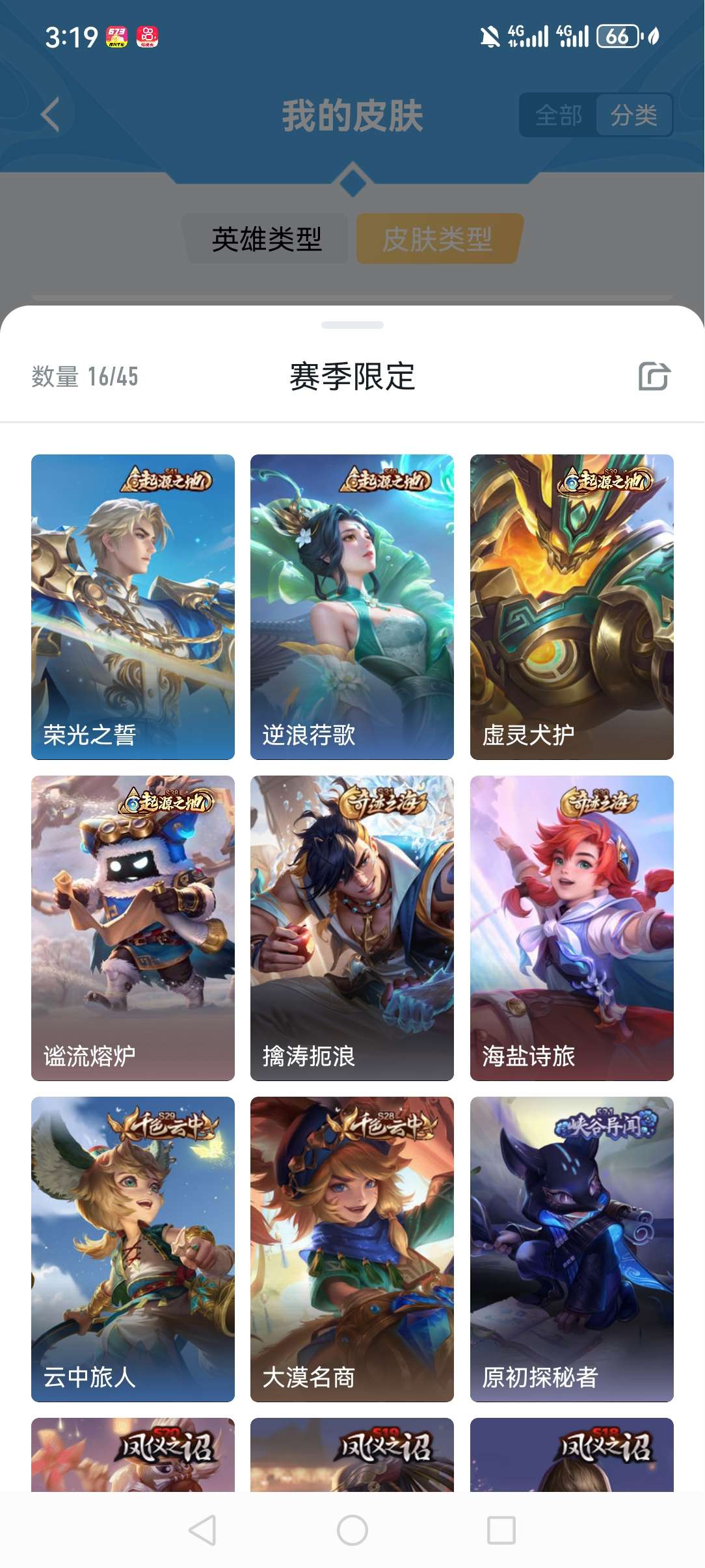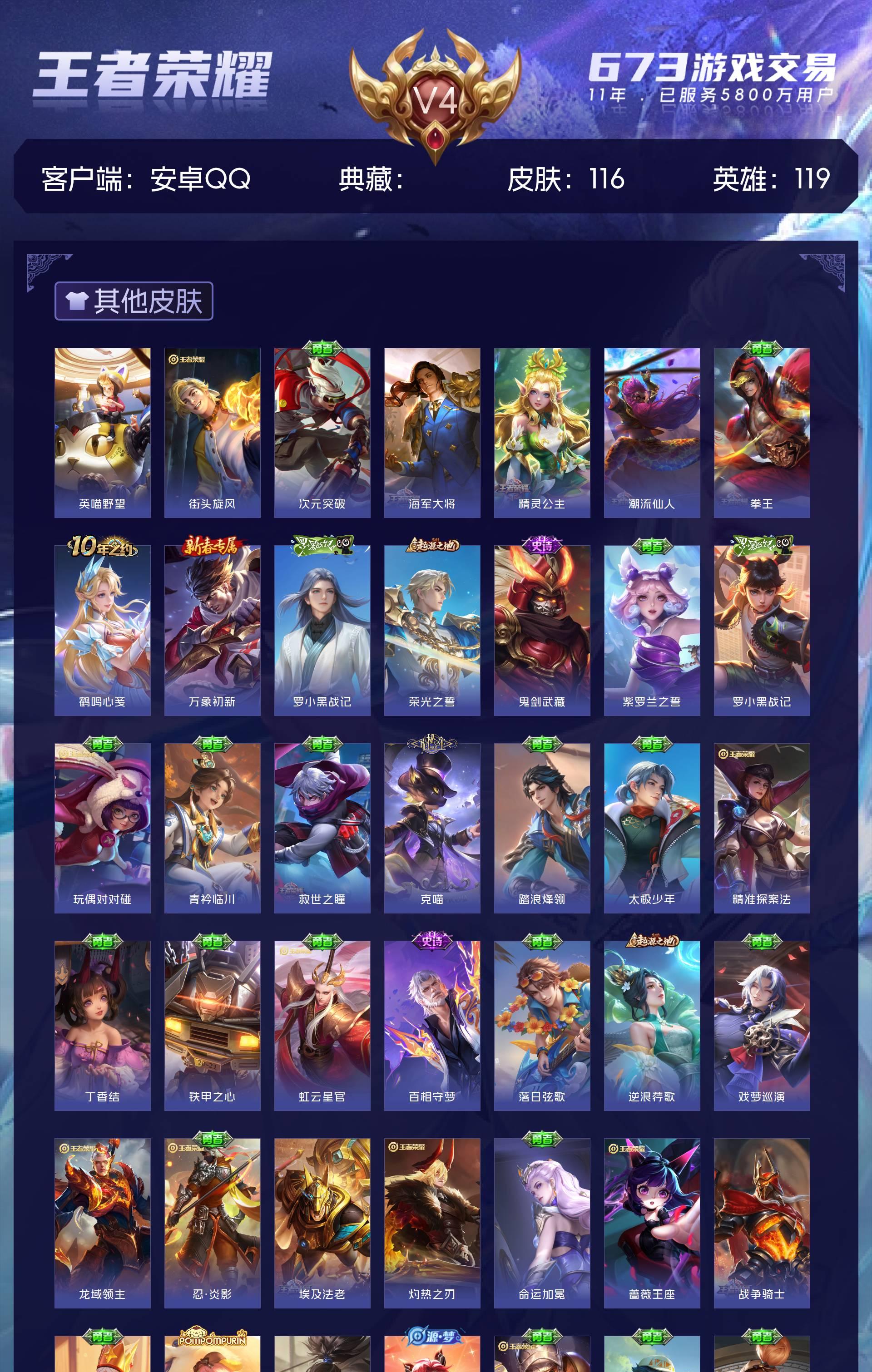 V4 皮肤116 英雄119 荣耀黄金 其他皮肤122
