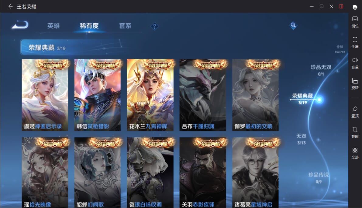 V9 皮肤357 英雄127 荣耀王者 荣耀典藏3 无双皮肤3 传说27 其他皮肤326