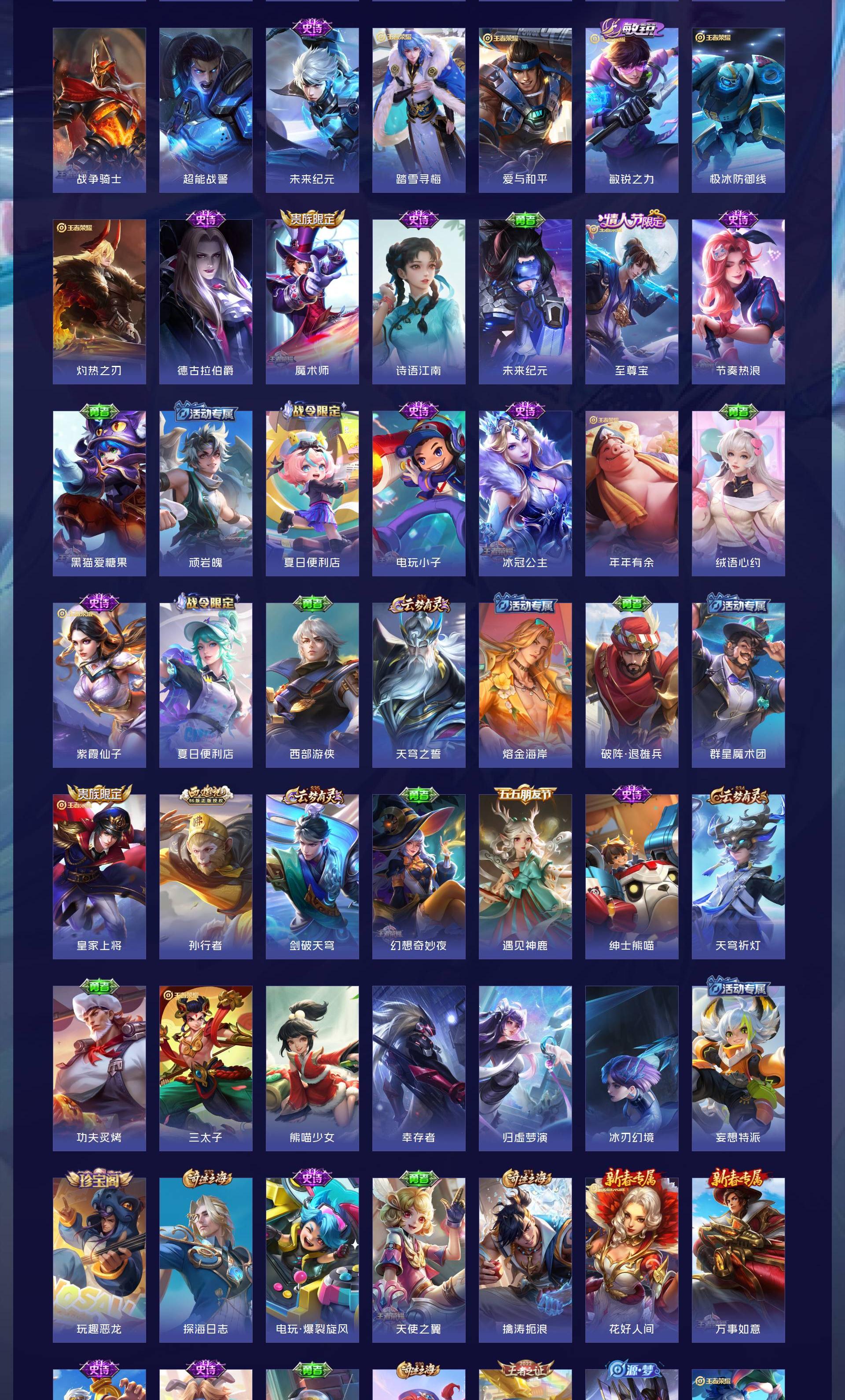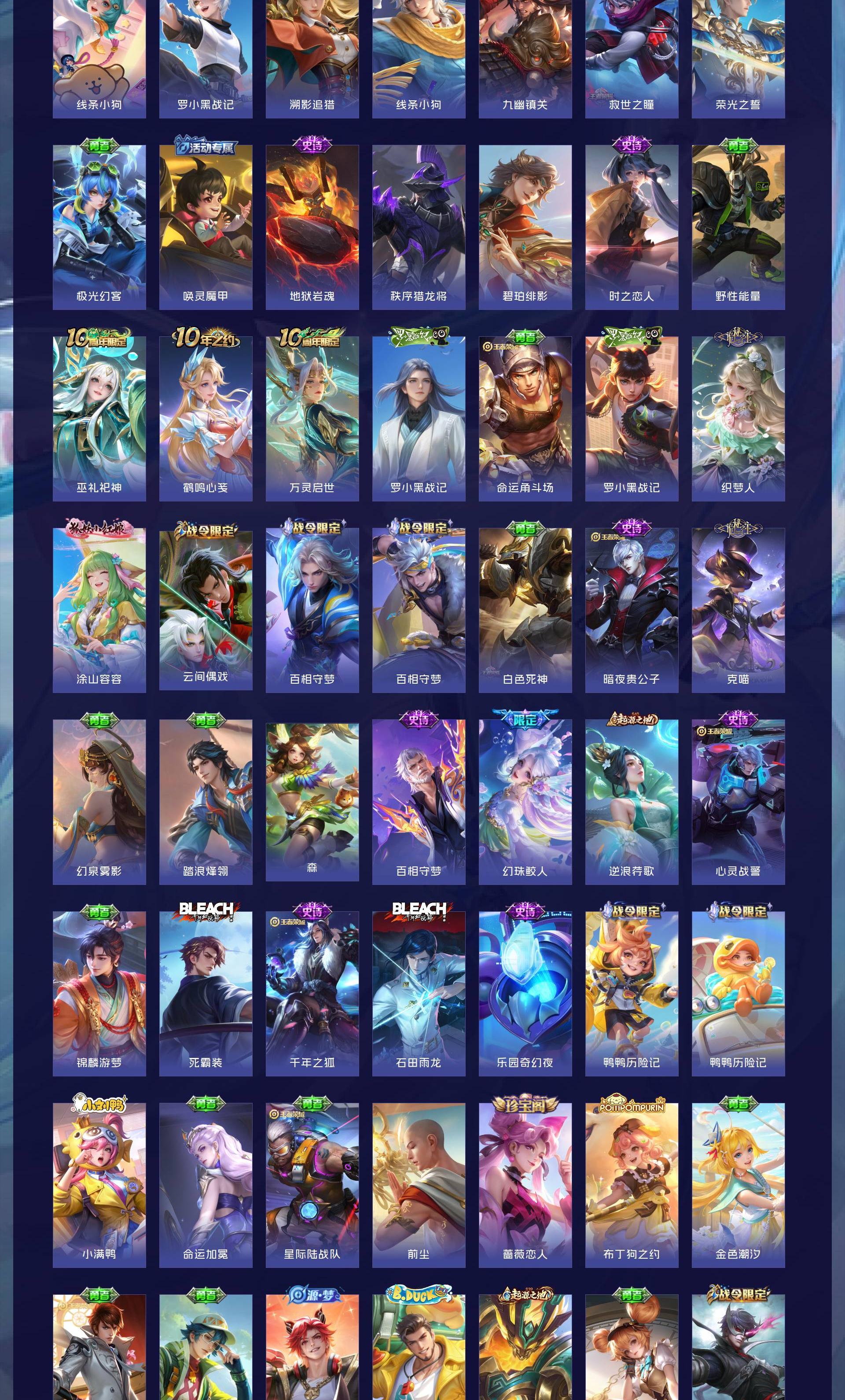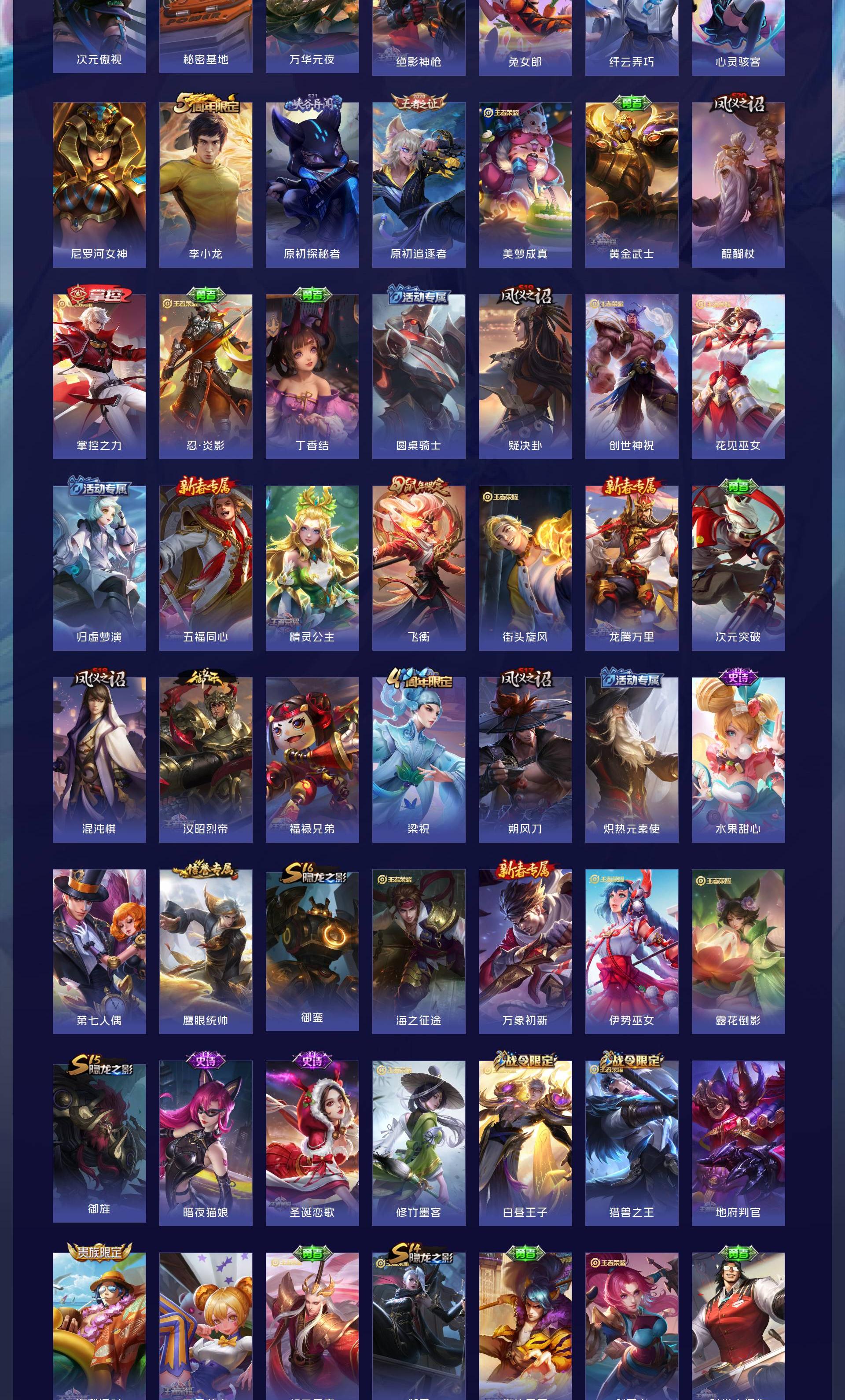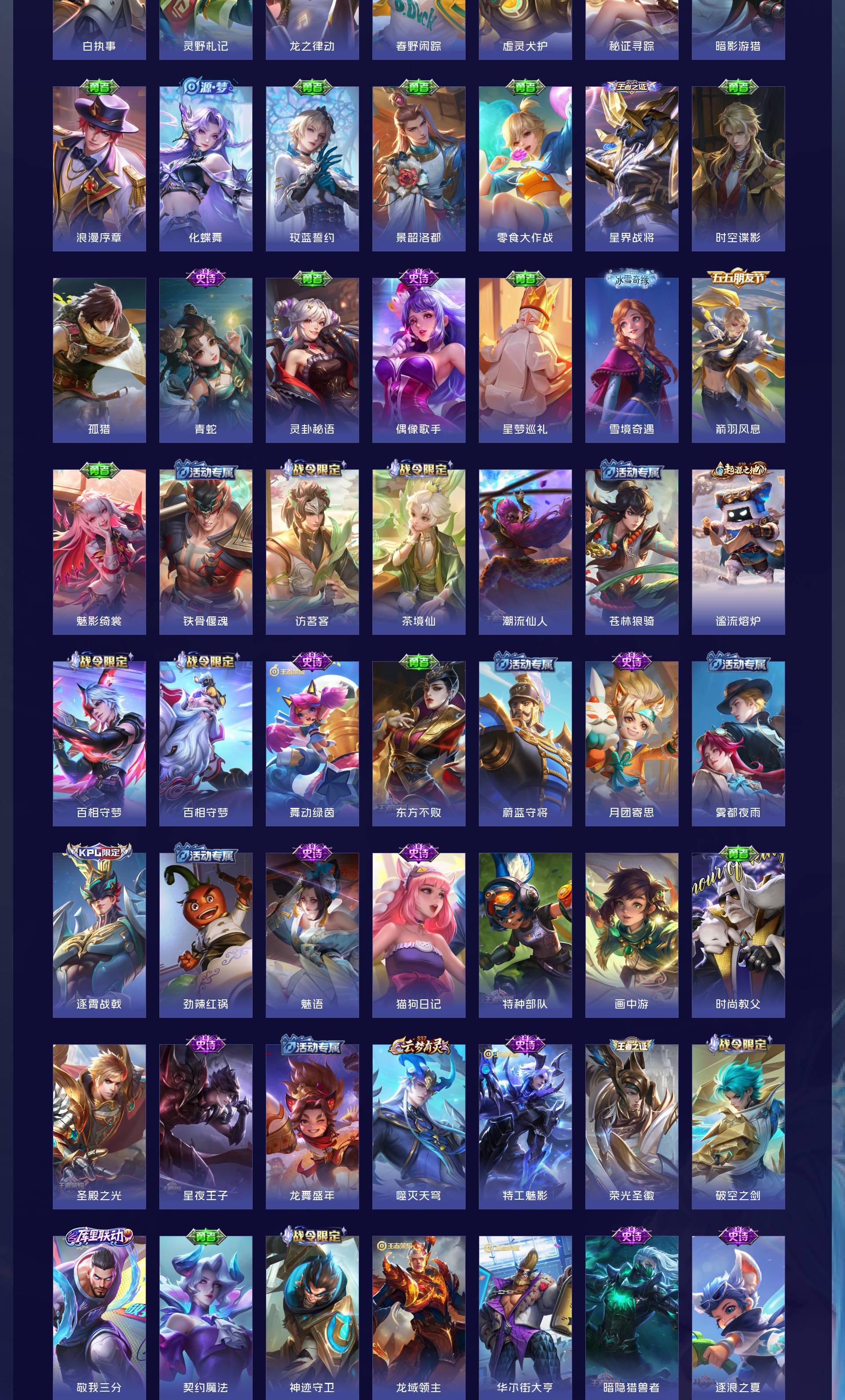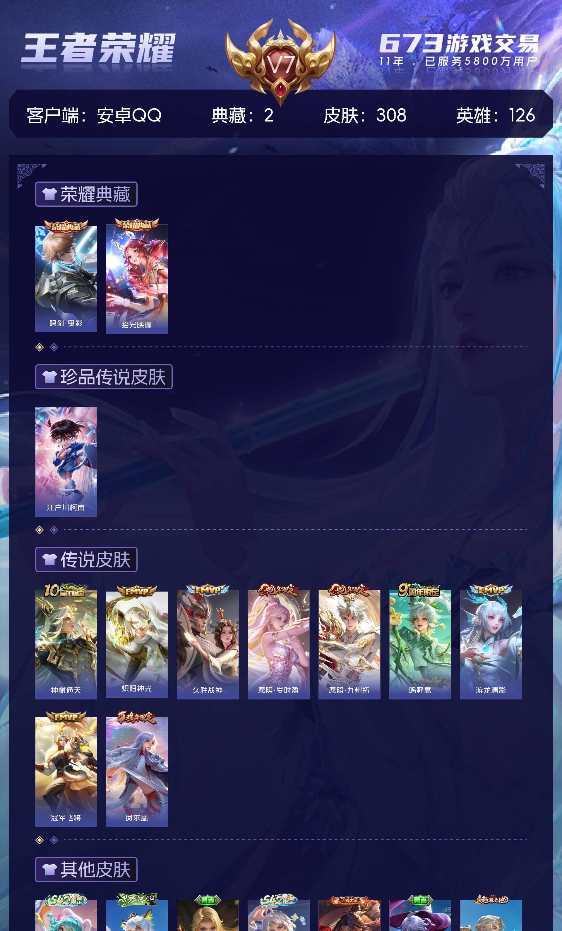V7 皮肤308 英雄126 永恒钻石 荣耀典藏2 珍品传说1 传说9 其他皮肤301