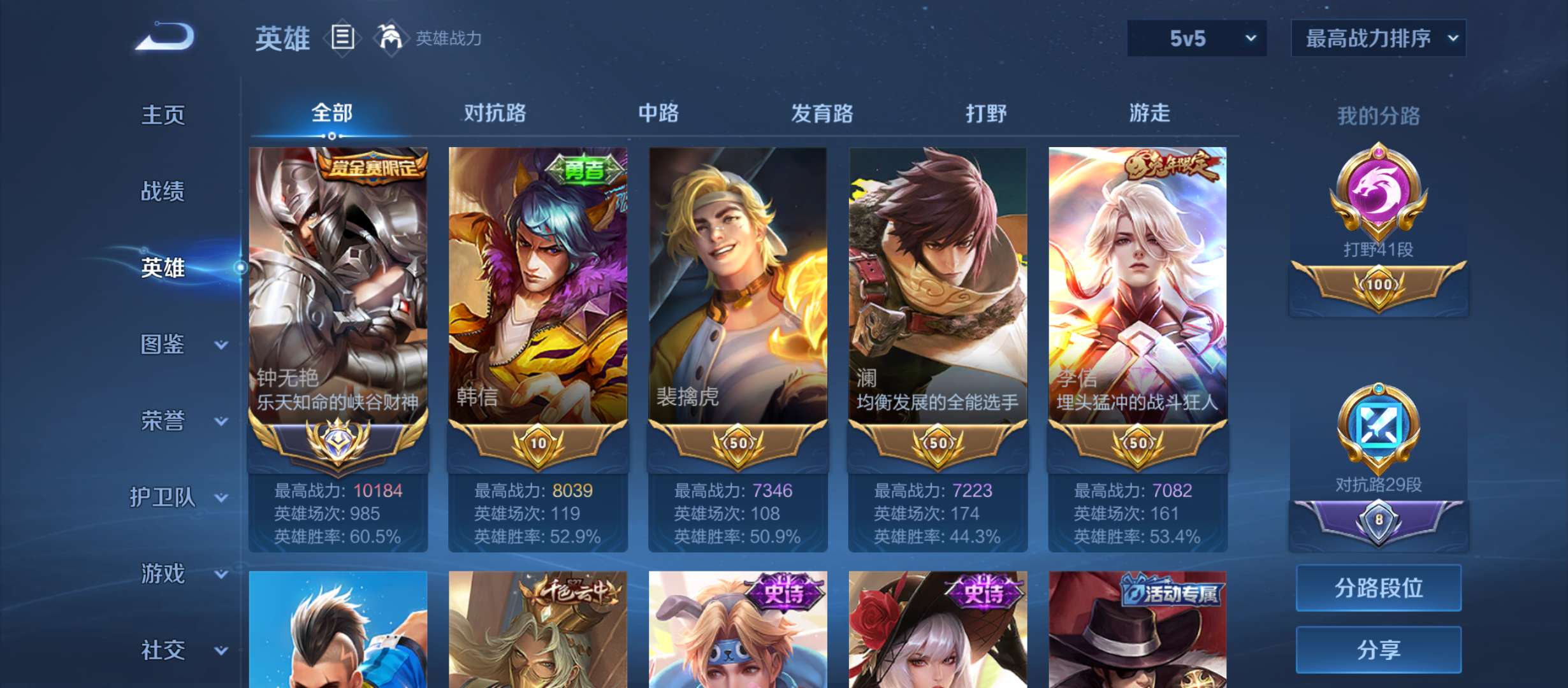 现在107个皮肤,可小刀,要的扣,大国标钟无艳🔥小国标孙策,26个省标🔥,打野41段🔥男神号
