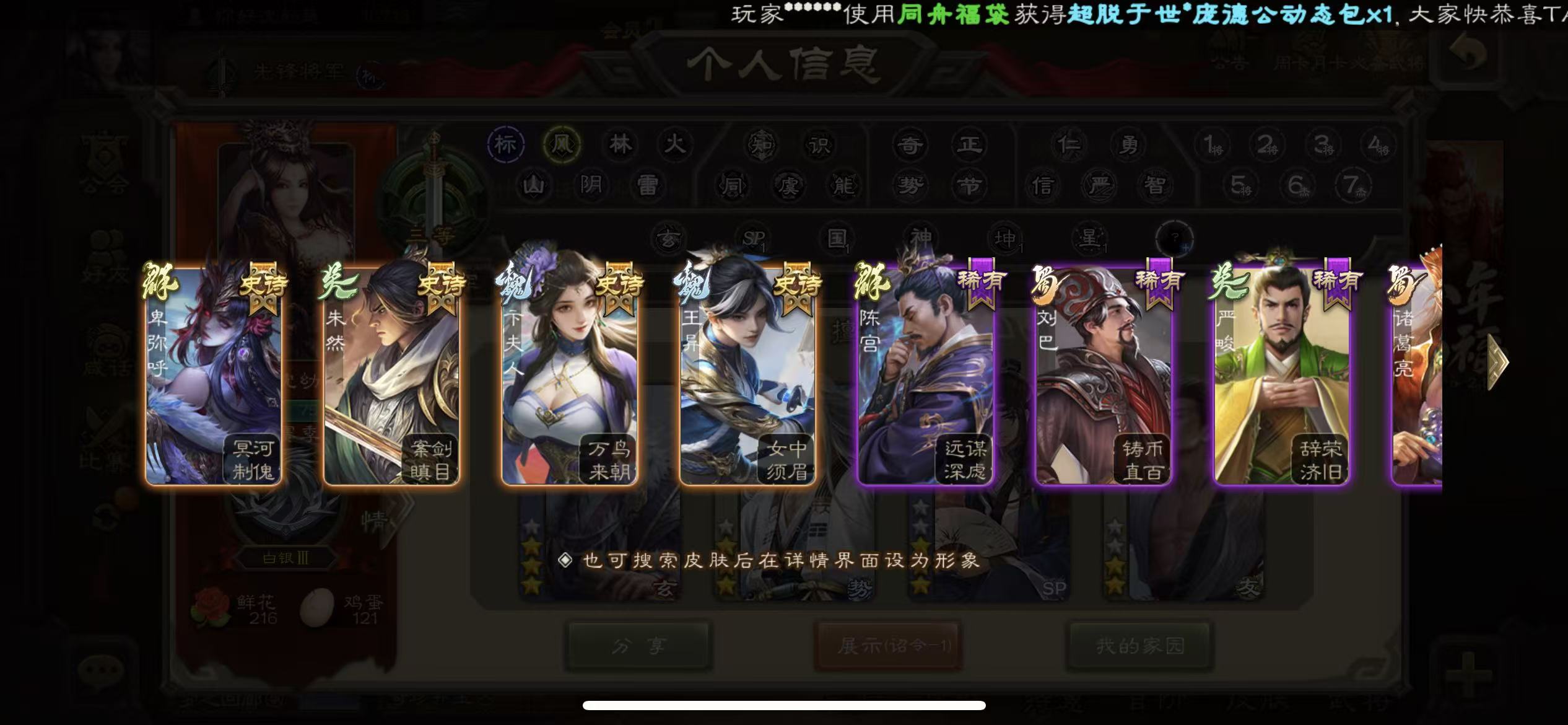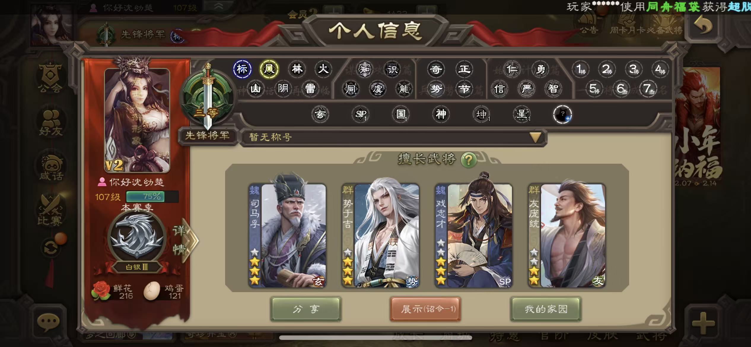 先锋司马孚+势于吉+戏志才+7万羽毛三卡
