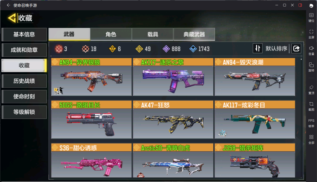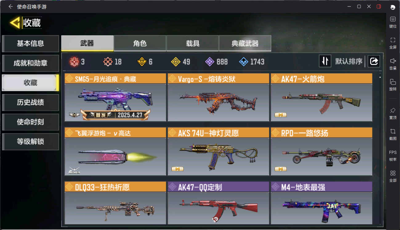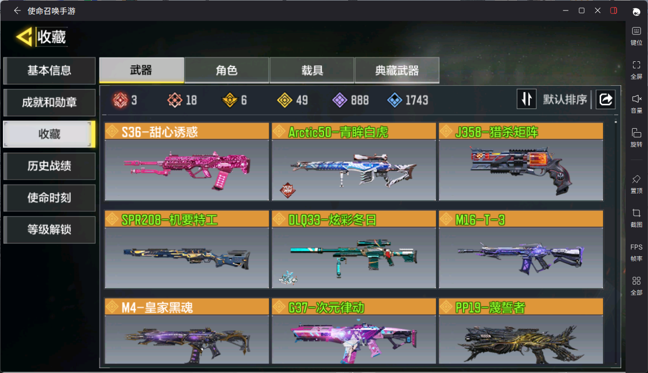 安卓QQ,实名状态:可改实名,段位:钻石,神话武器数量:18,传说武器数量:49,