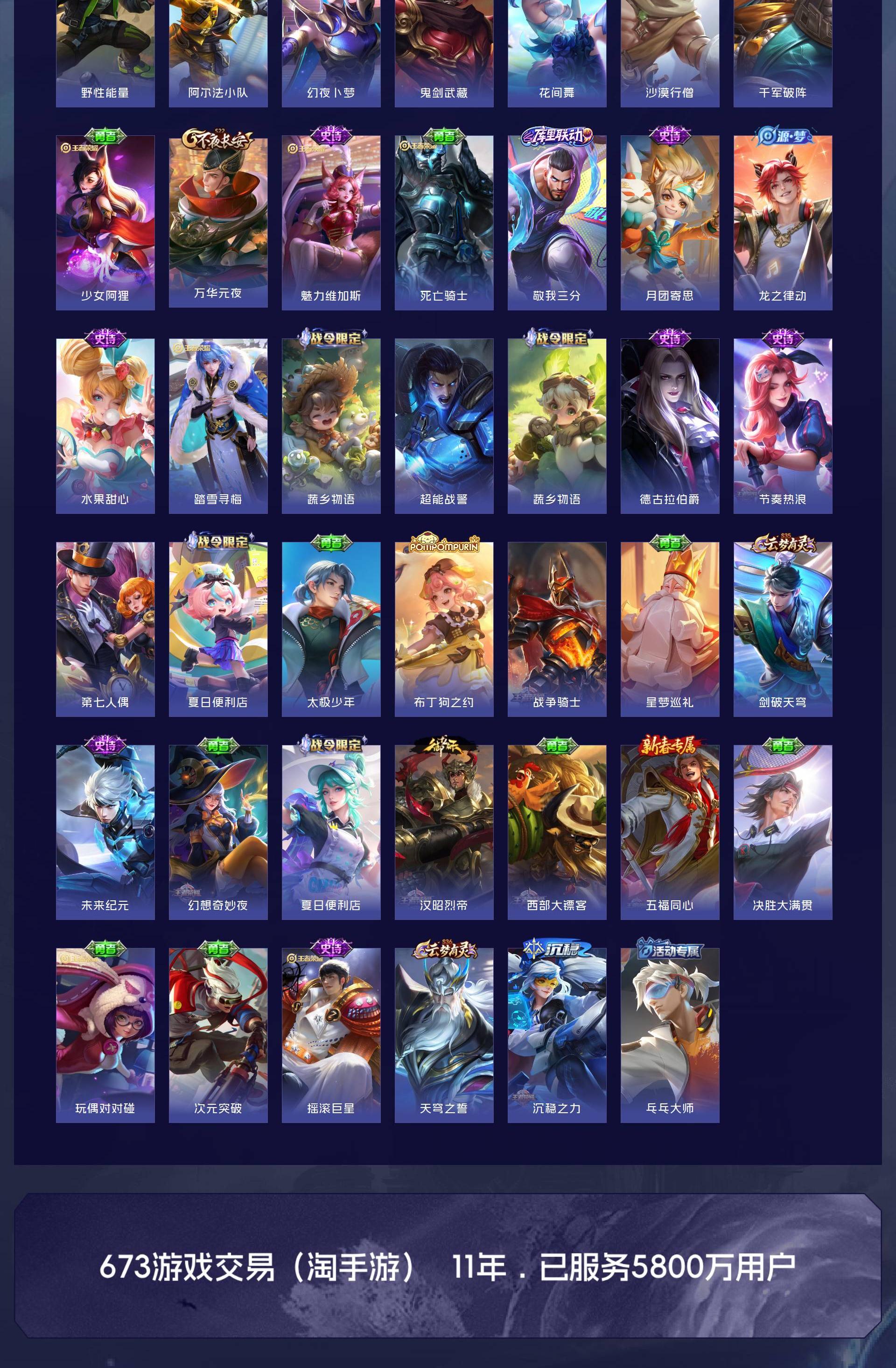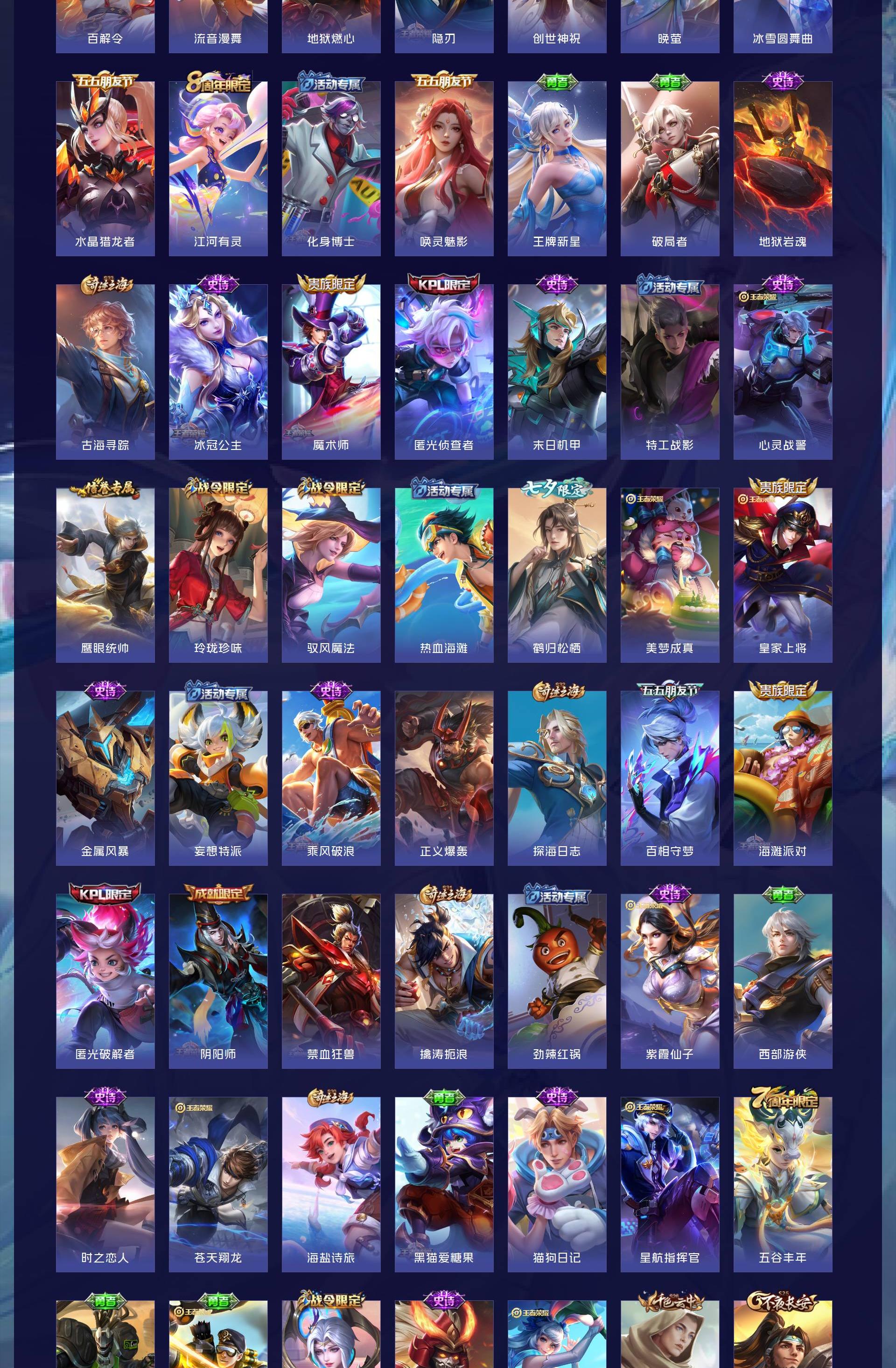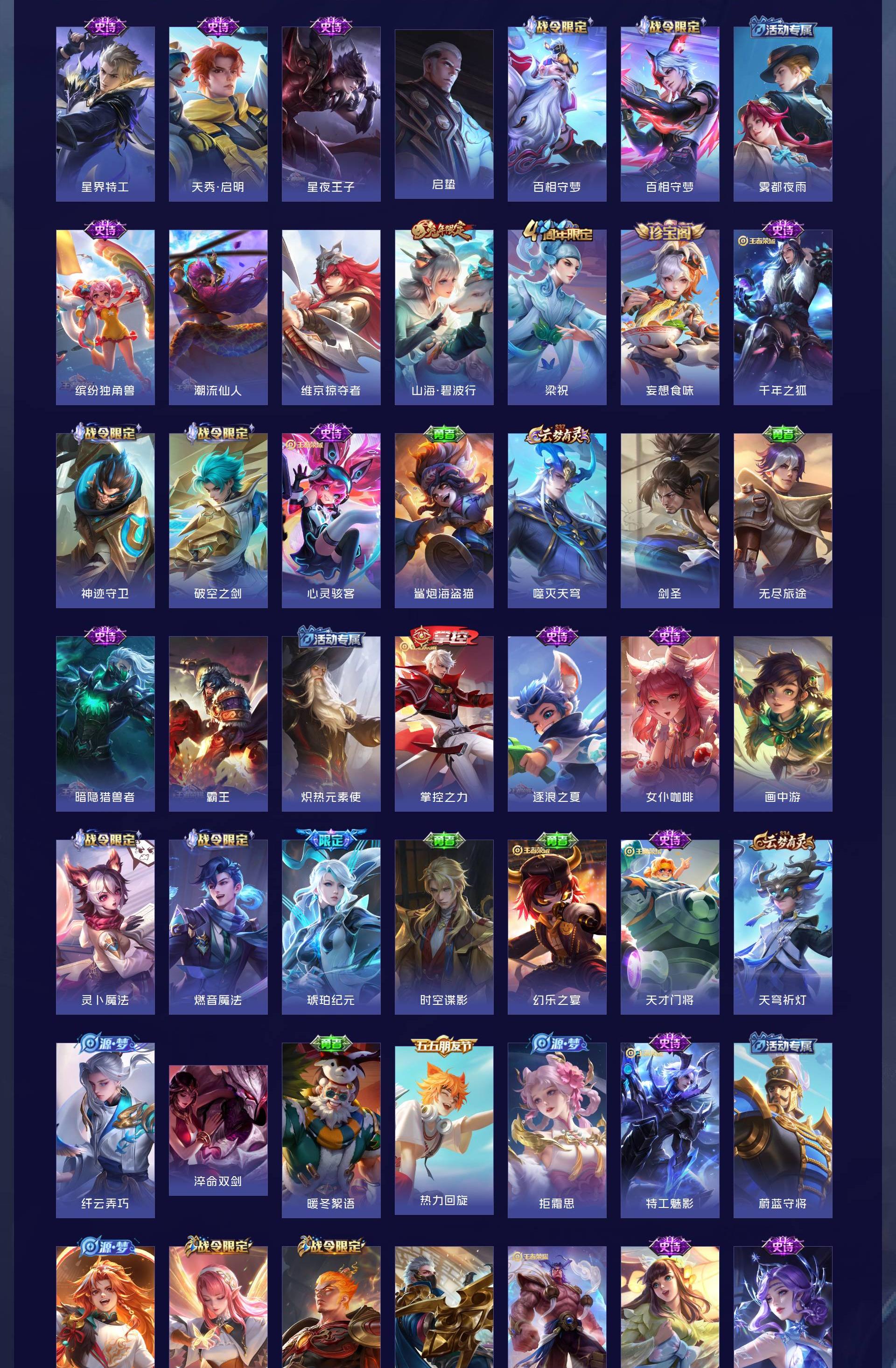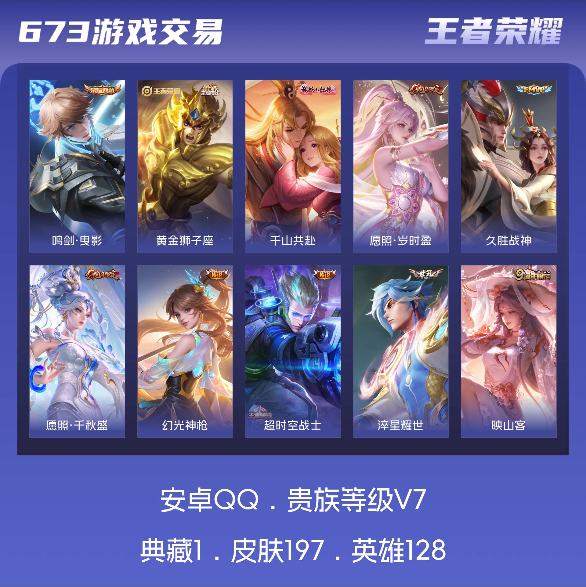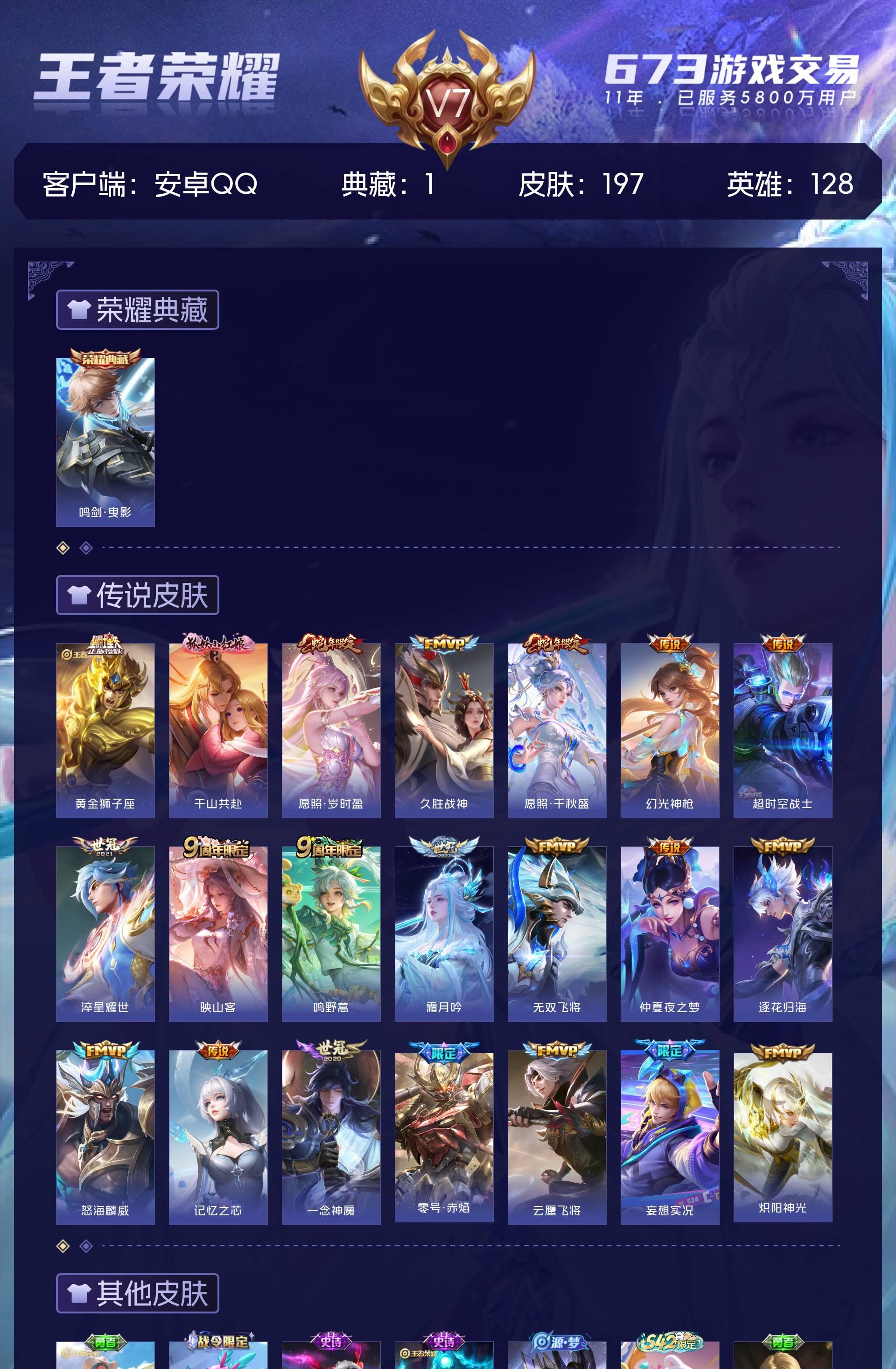 V7 皮肤197 英雄128 无双王者 荣耀典藏1 传说21 其他皮肤181