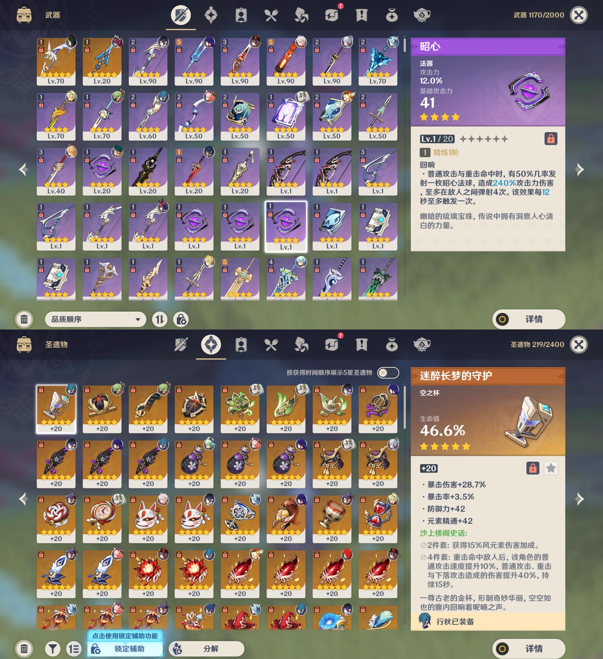 【YSX1659】56级/19黄/女主/14个五星角色/2个五星武器/神里绫华/枫原万叶/玛拉妮/胡桃/雷电将军/优菈/纳西妲/夜兰/莫娜/刻晴/可莉/3命迪卢克/迪希雅/提纳里/阿莫斯之弓/息灾