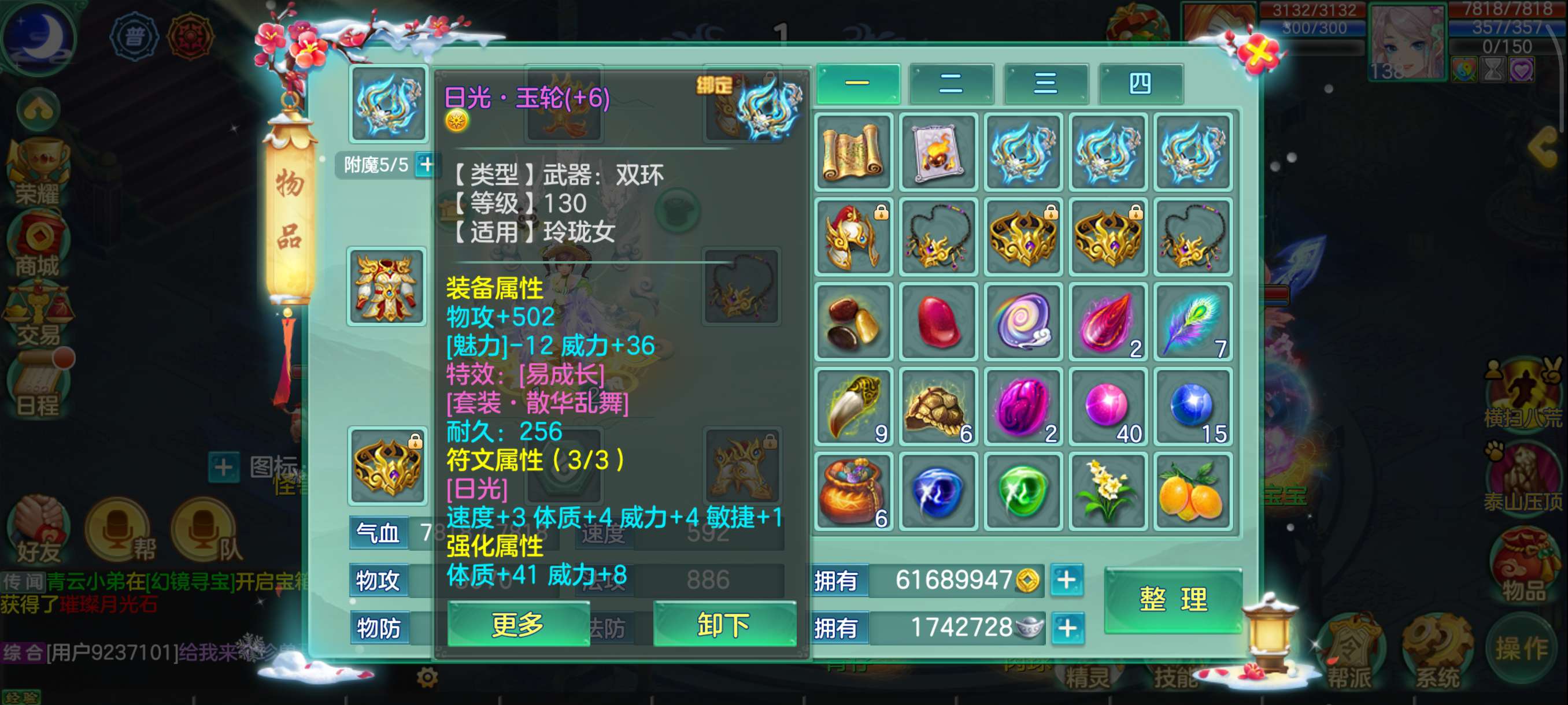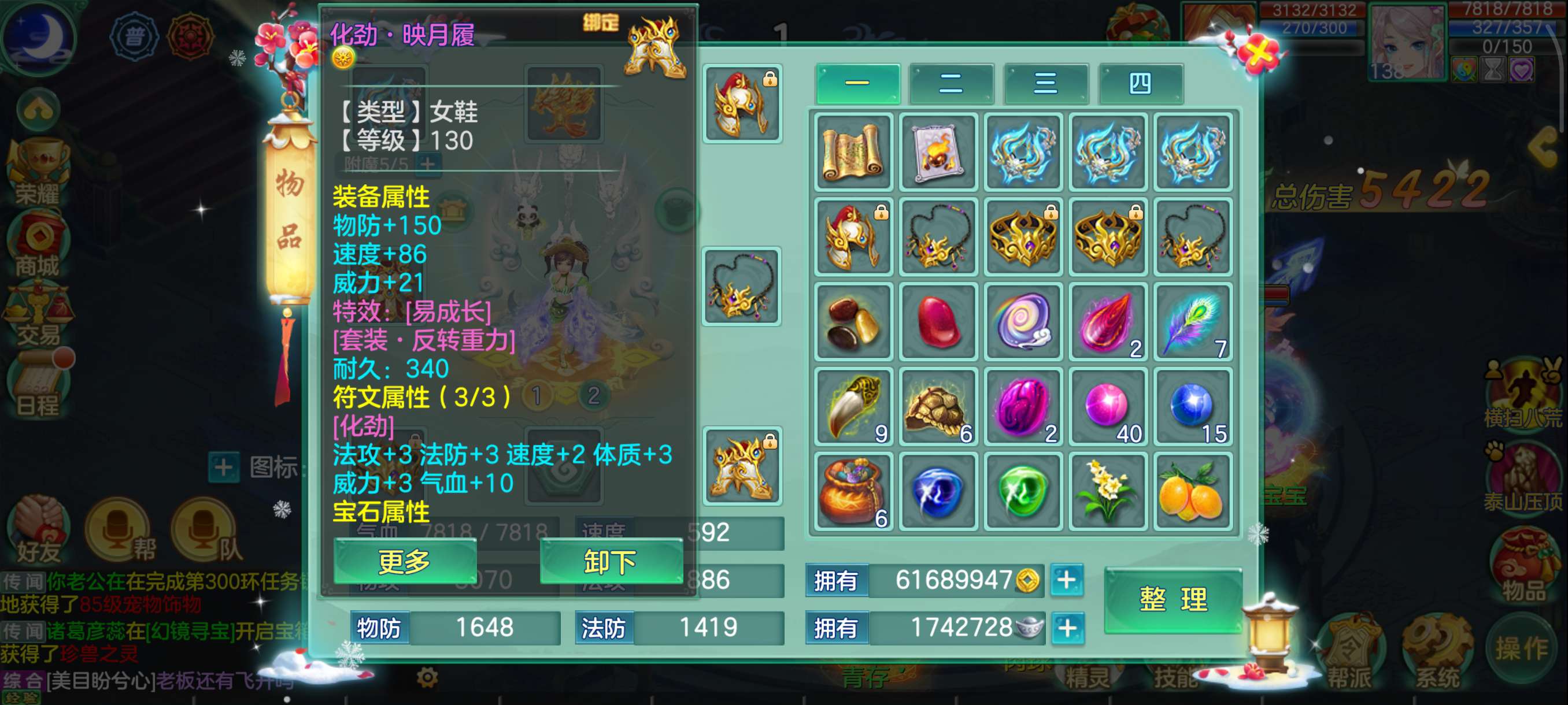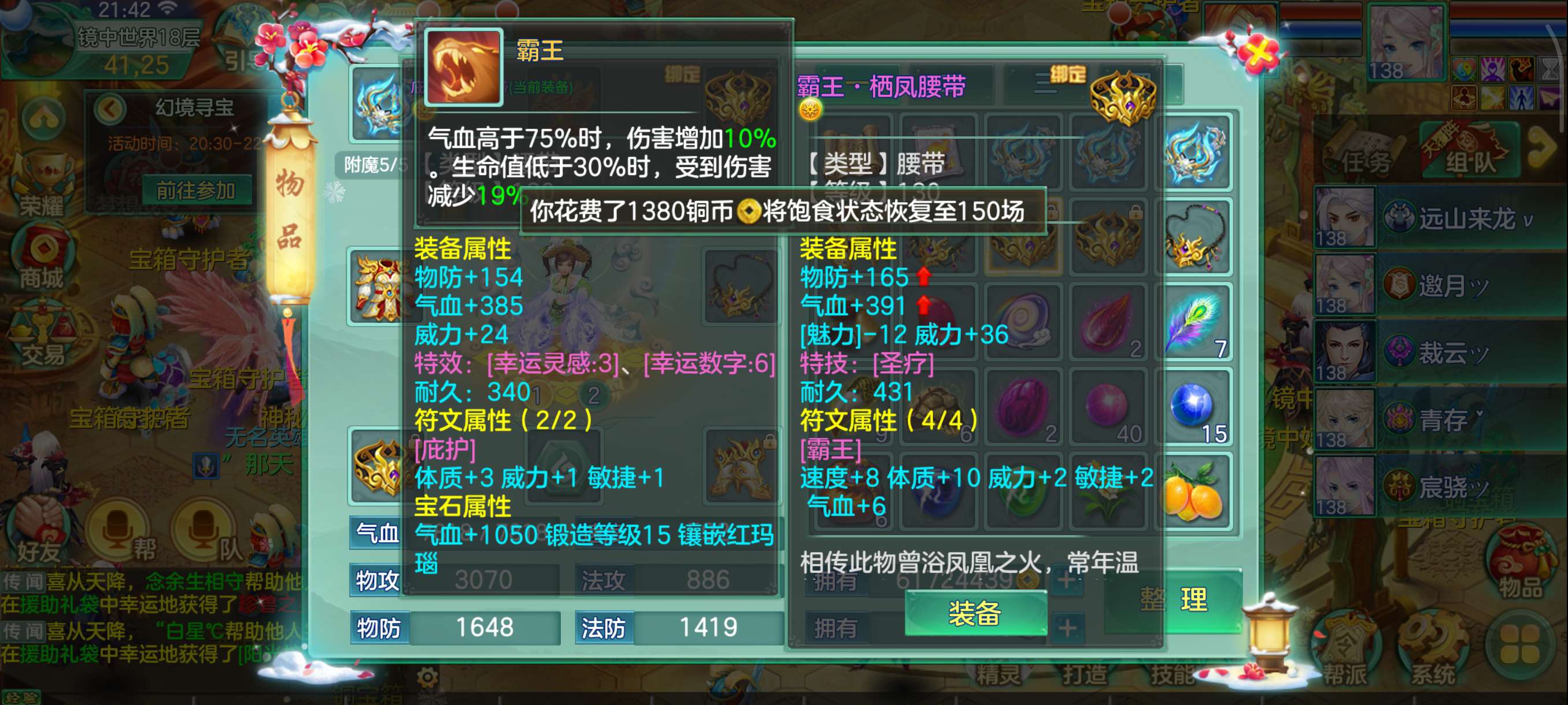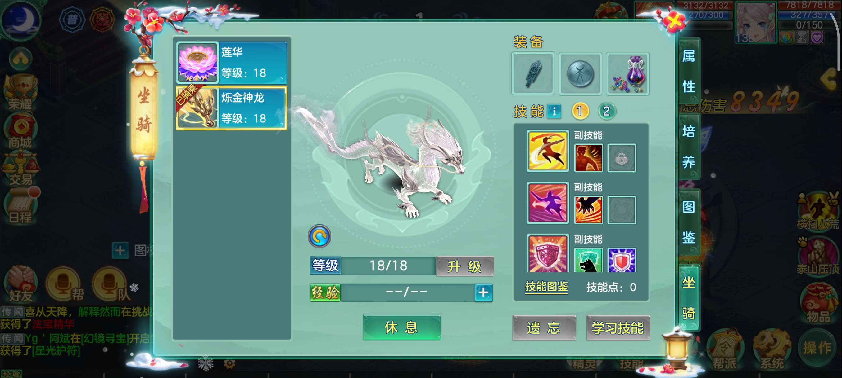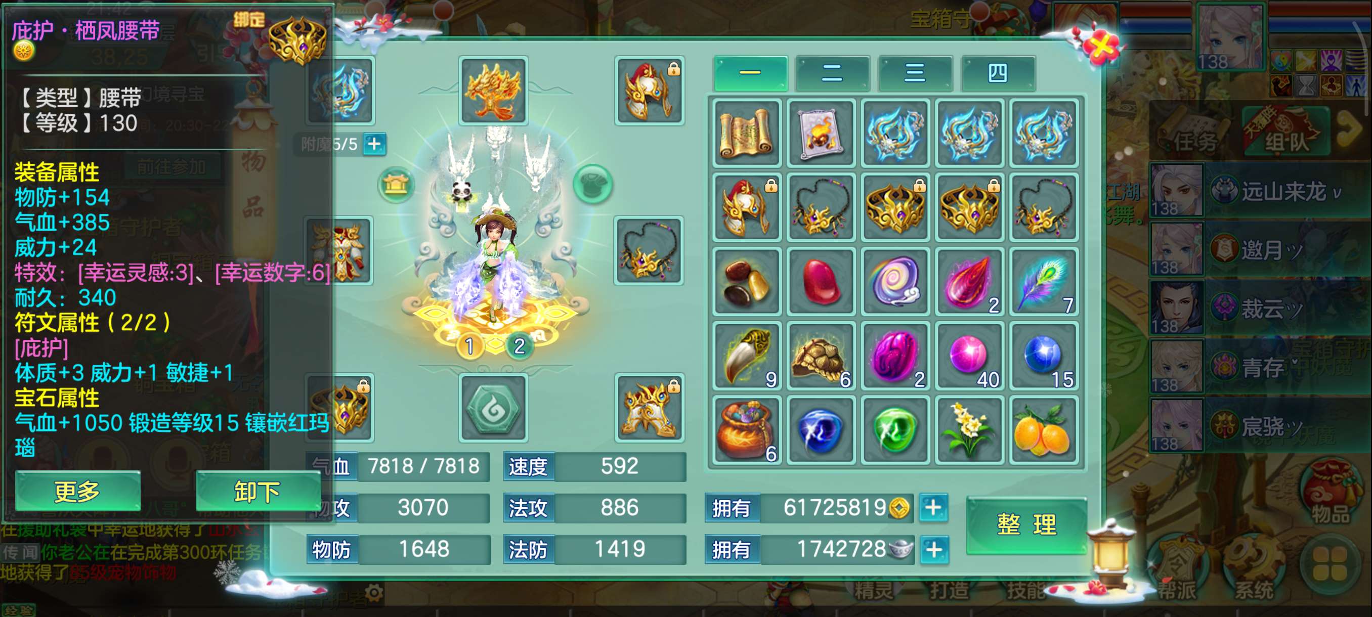 花好138兵家4仙3神,易满攻武器+满攻头,灵感13,日常超级舒服坐骑龙,永久时装头像反转2件带孔