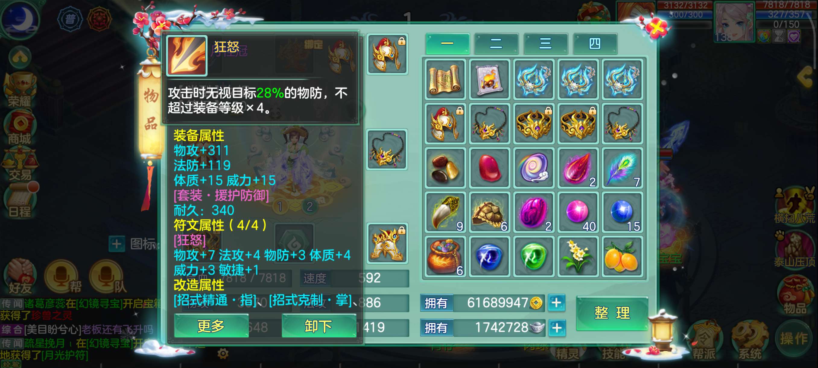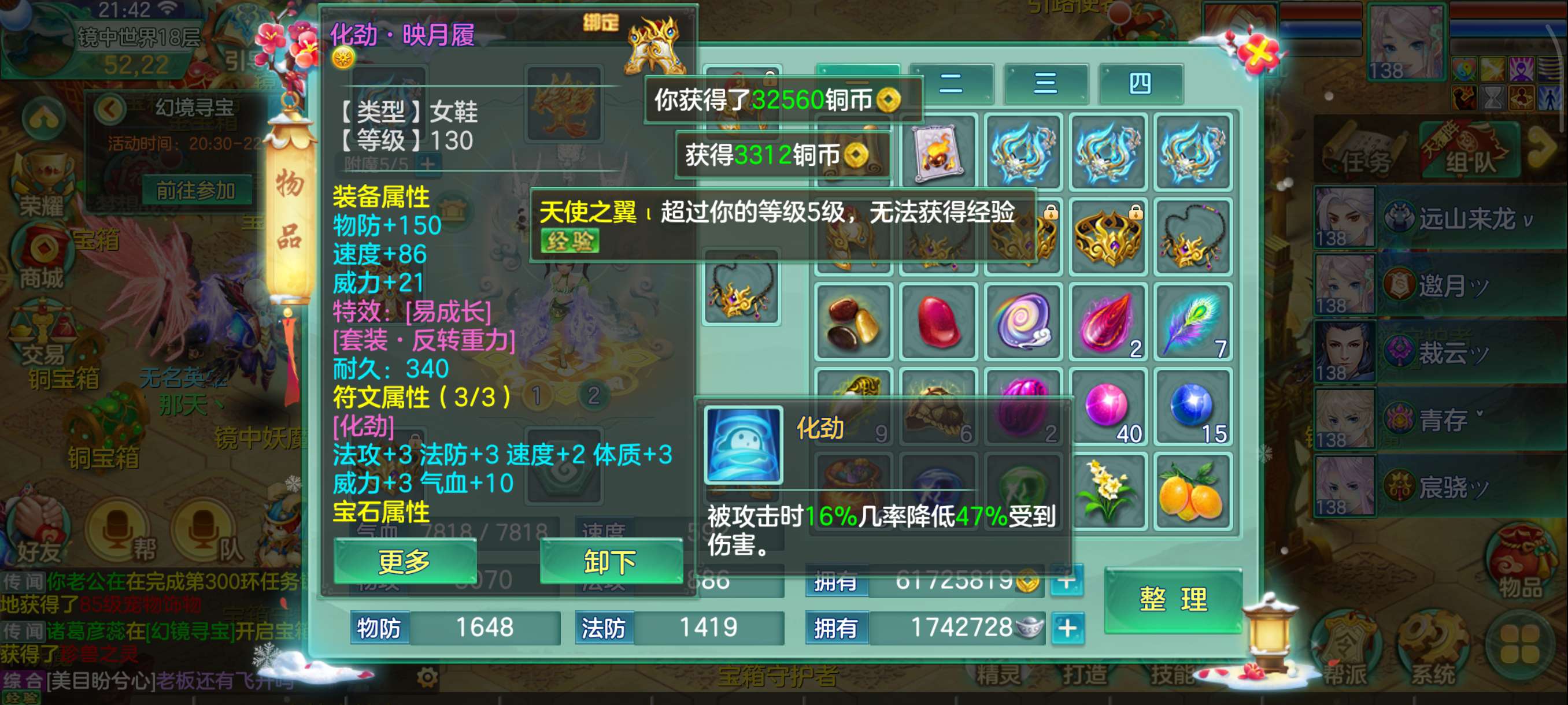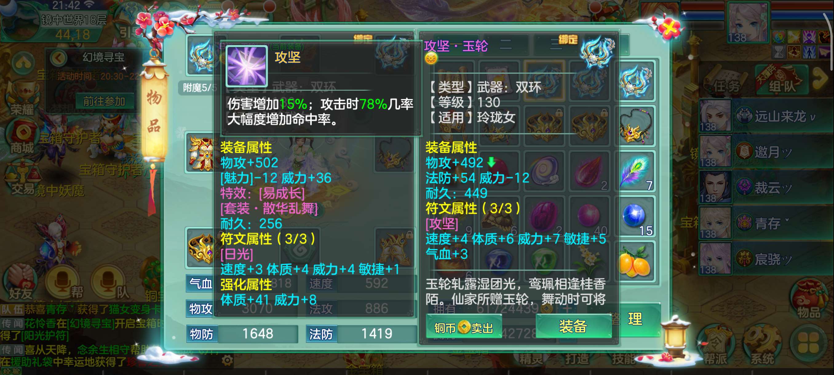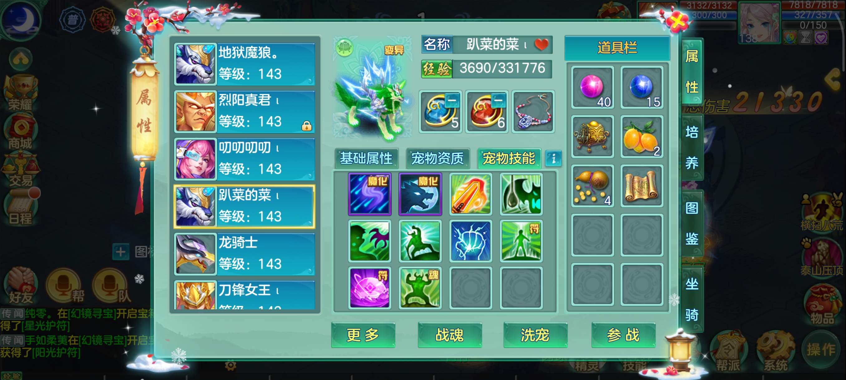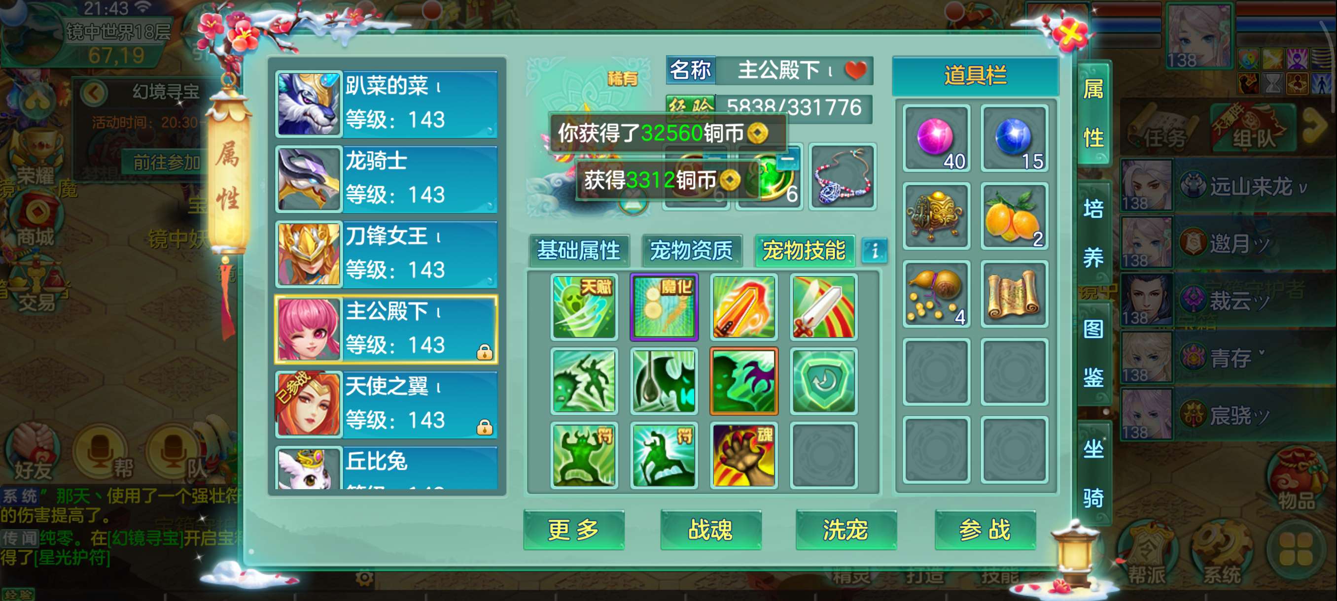 花好138兵家4仙3神,易满攻武器+满攻头,灵感13,日常超级舒服坐骑龙,永久时装头像反转2件带孔