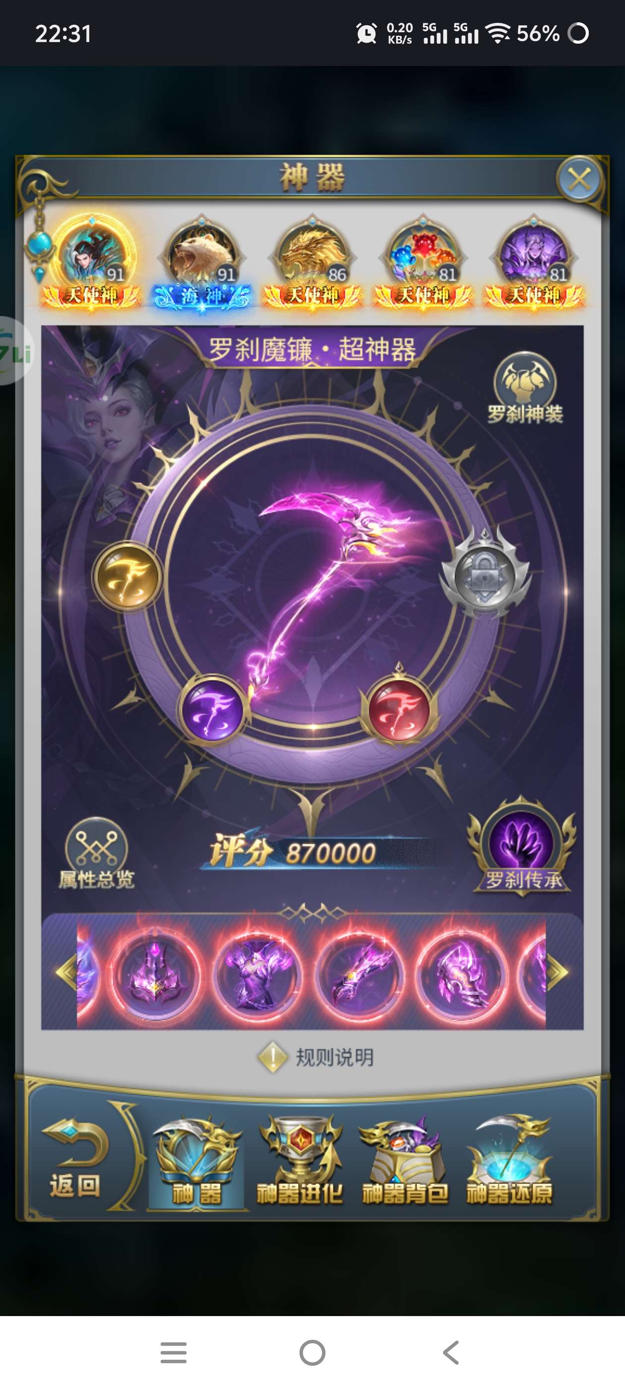 七里回归罗刹22可换绑,自助3,四套幻彩唐门三绝魂导器,24百万,19红凶兽,有永久月卡邪神虎